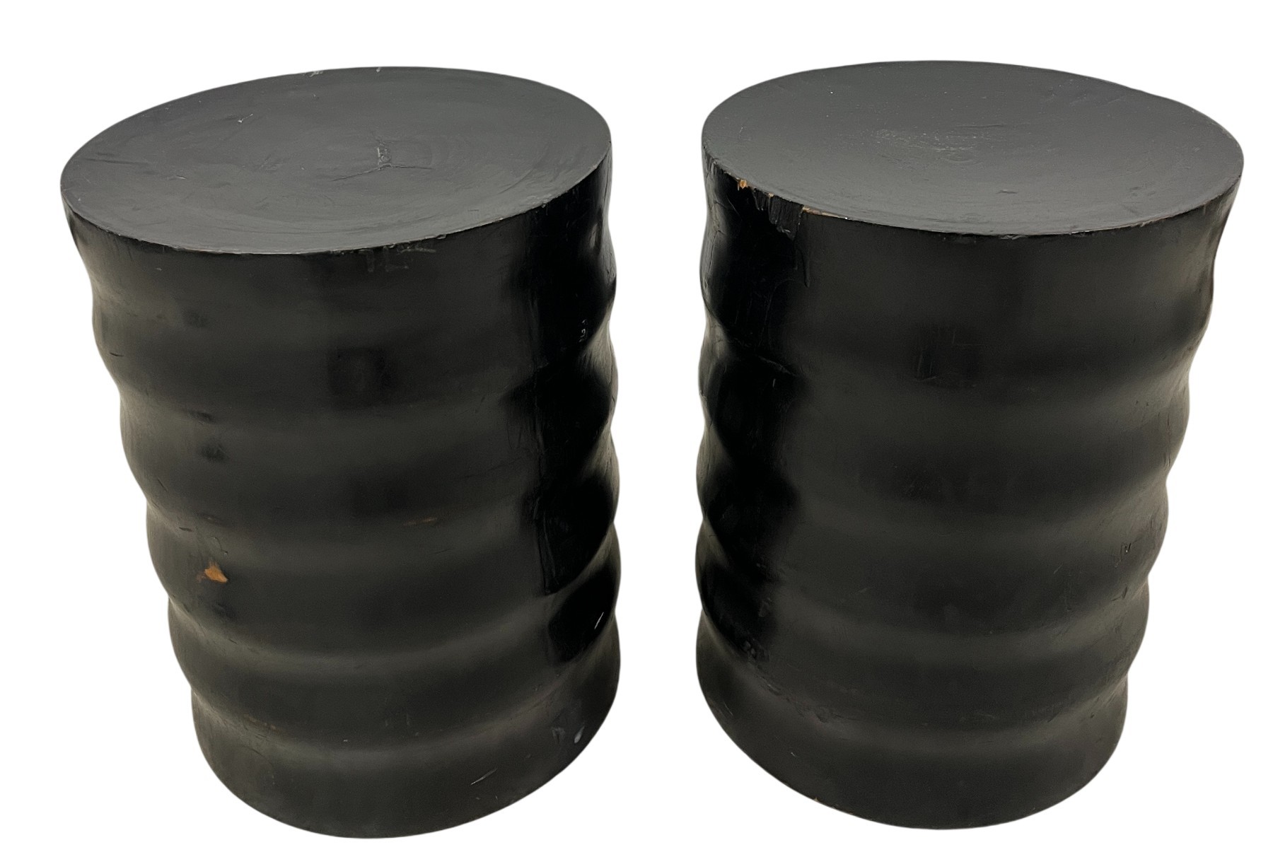 These cylindrical stools feature a unique, stacked rib design that provides both visual interest and a tactile quality. Often used as occasional seating or side tables, they are crafted from various high-quality materials to suit different aesthetic needs.