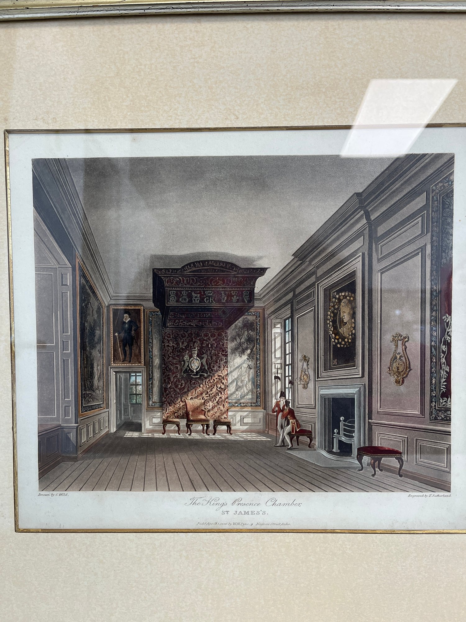 A set of four contemporary reproductions based on the 19th-century masterwork, The History of the Royal Residences, originally published by William Henry Pyne (1819). These decorative prints recreate the historic architectural studies of the most prestigious British royal interiors.