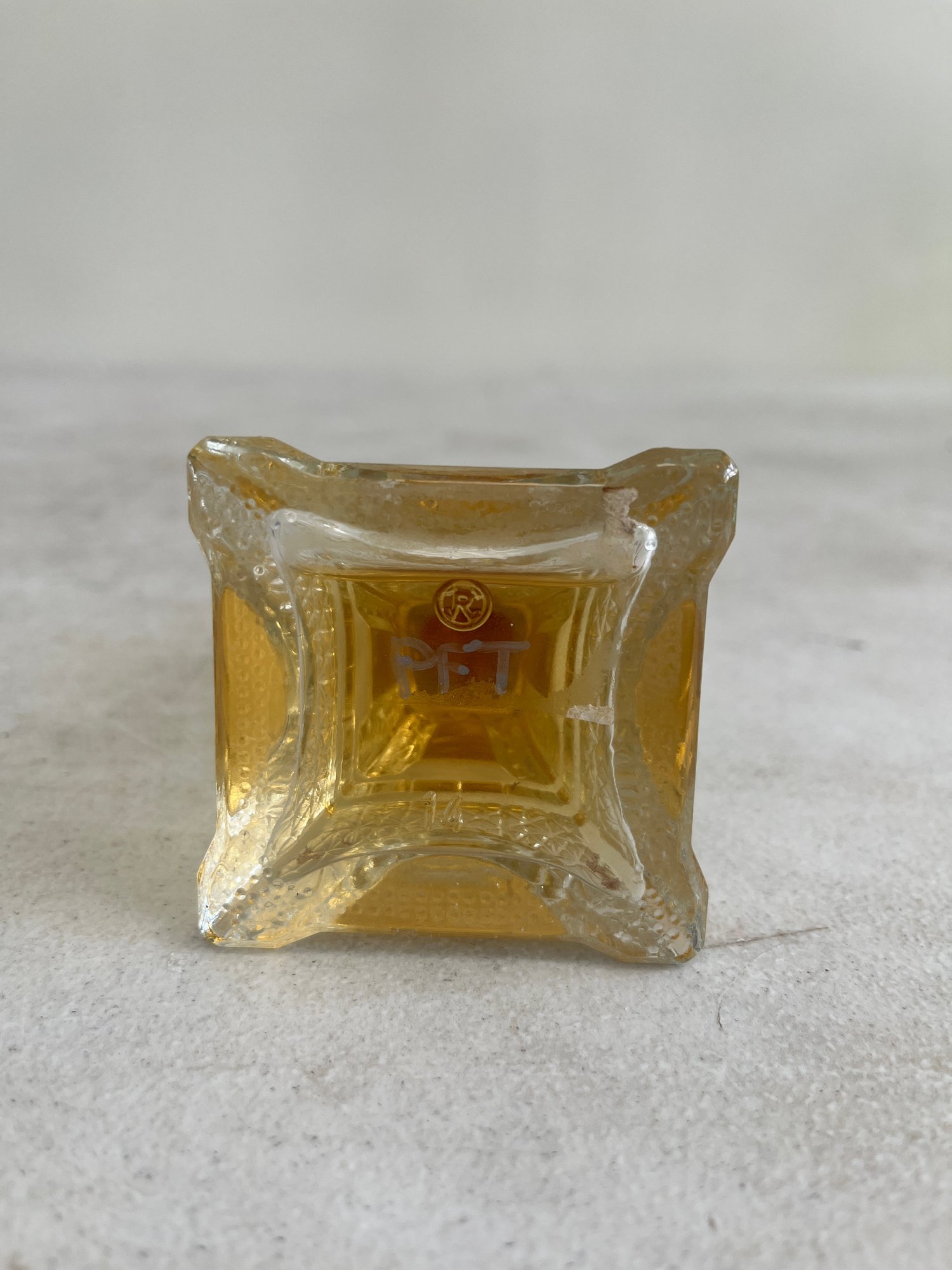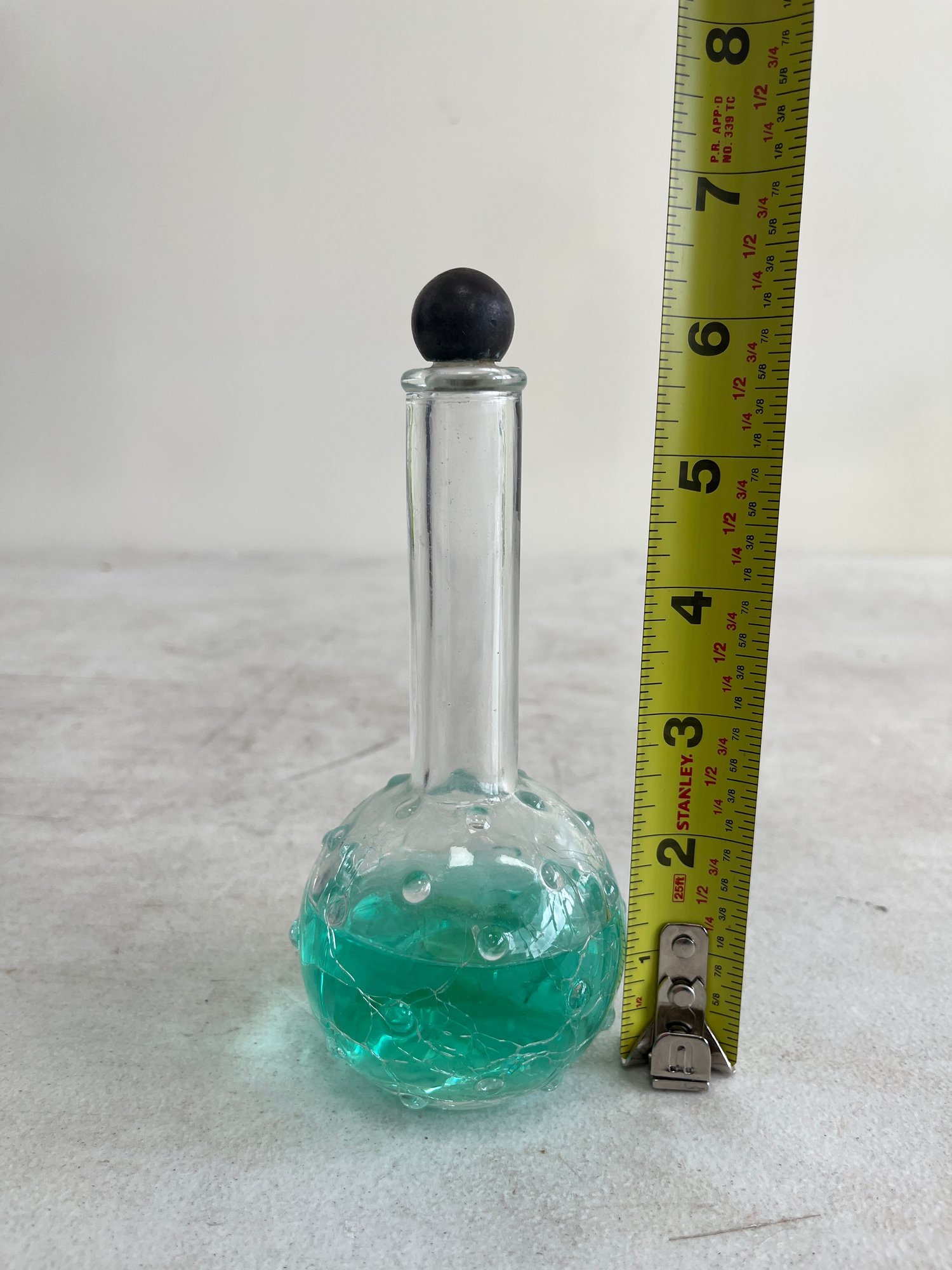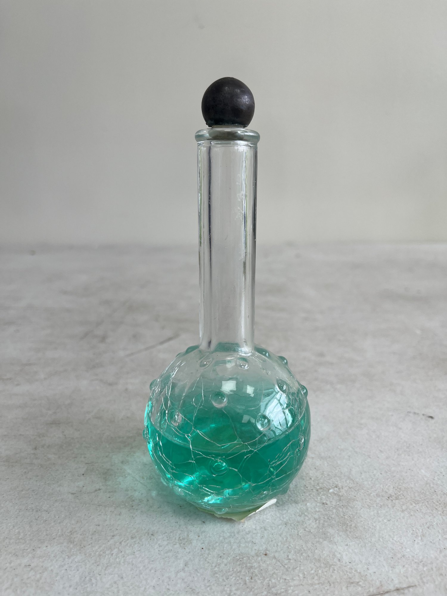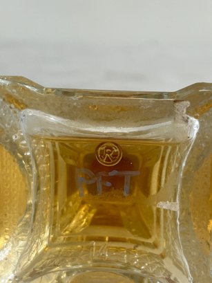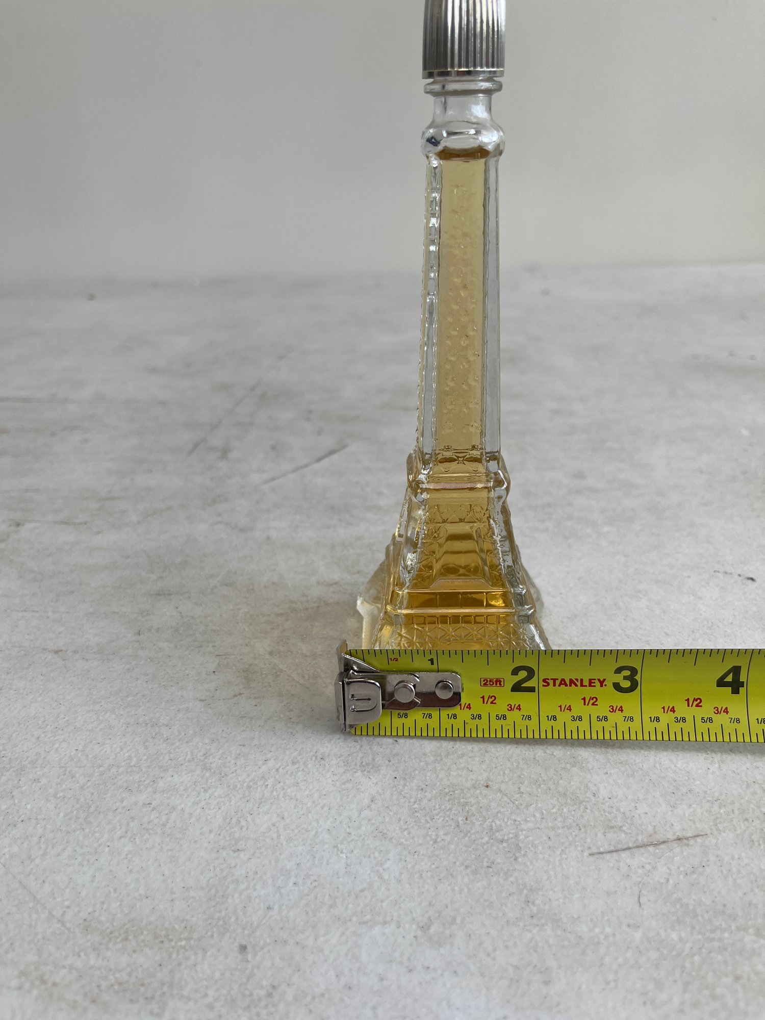 This curated set features a figural bottle that is designed in the shape of the iconic Eiffel Tower, a classic piece of mid-20th-century vanity ware. Additionally, this lot includes a beautiful example of mid-century art glass, repurposed as an elegant perfume decanter.