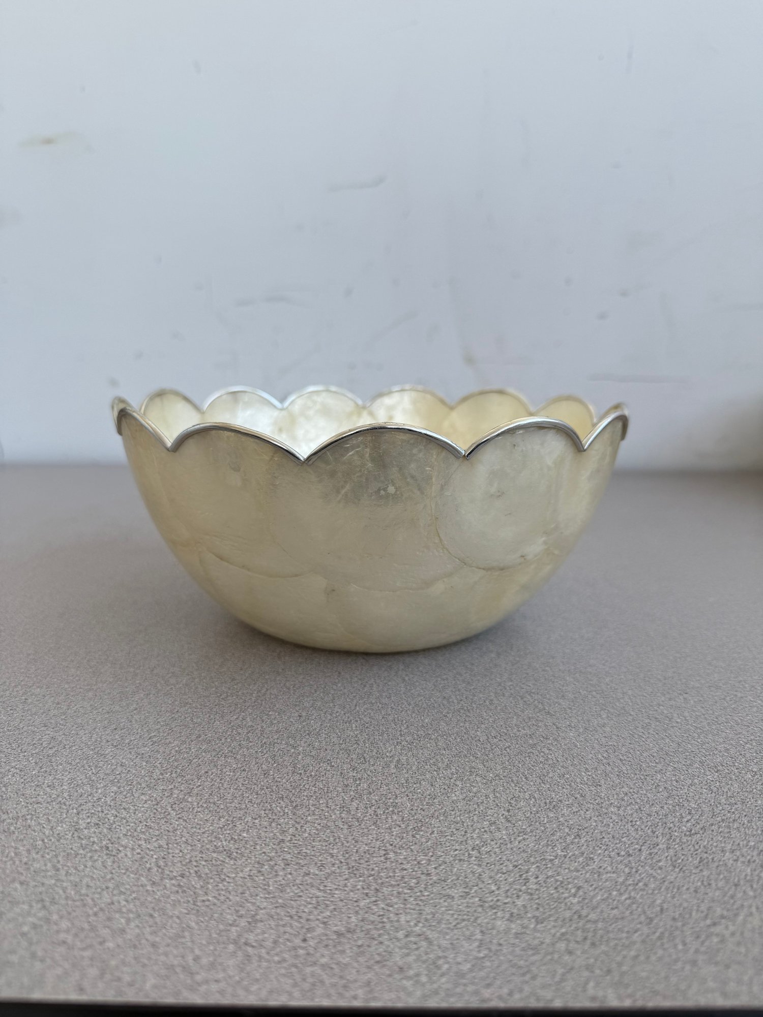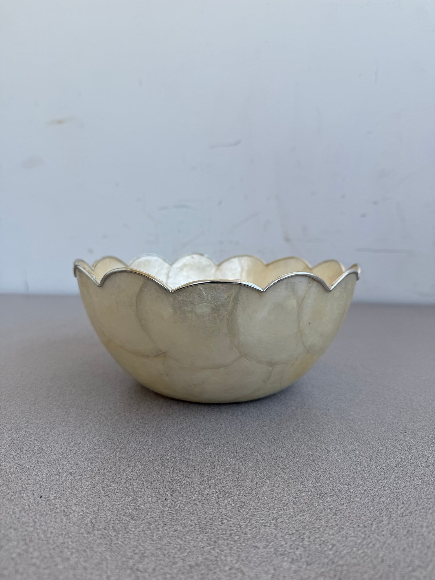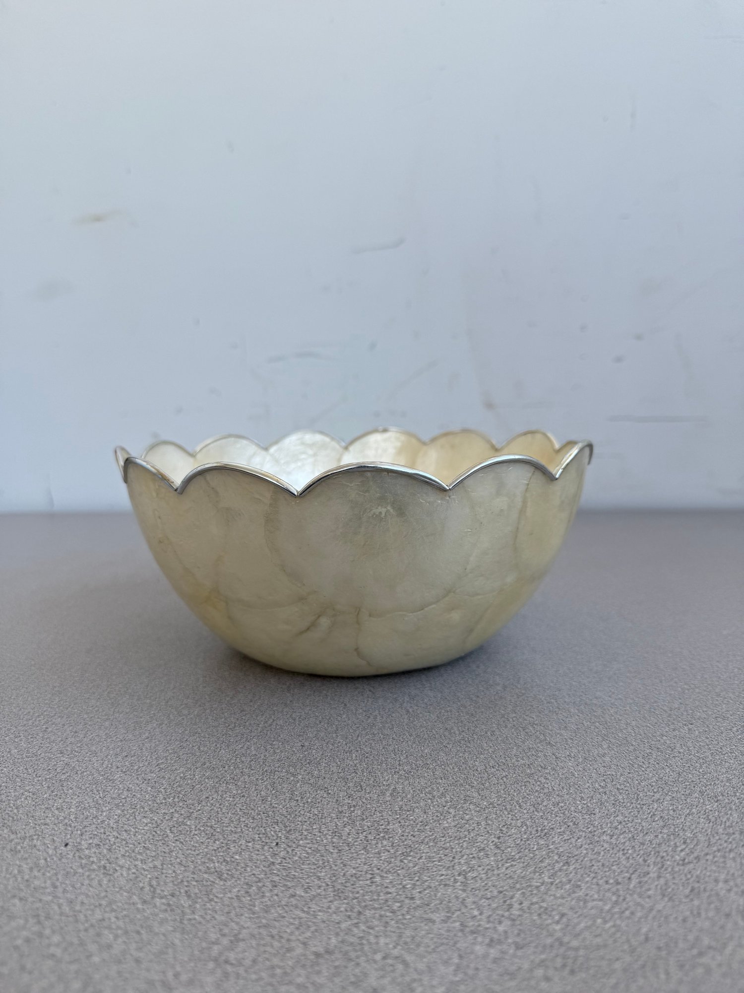 A pair of exquisite scalloped shell bowls, designed to add a touch of coastal elegance to any decor. These items are perfect for those seeking a unique blend of natural texture and refined style.
