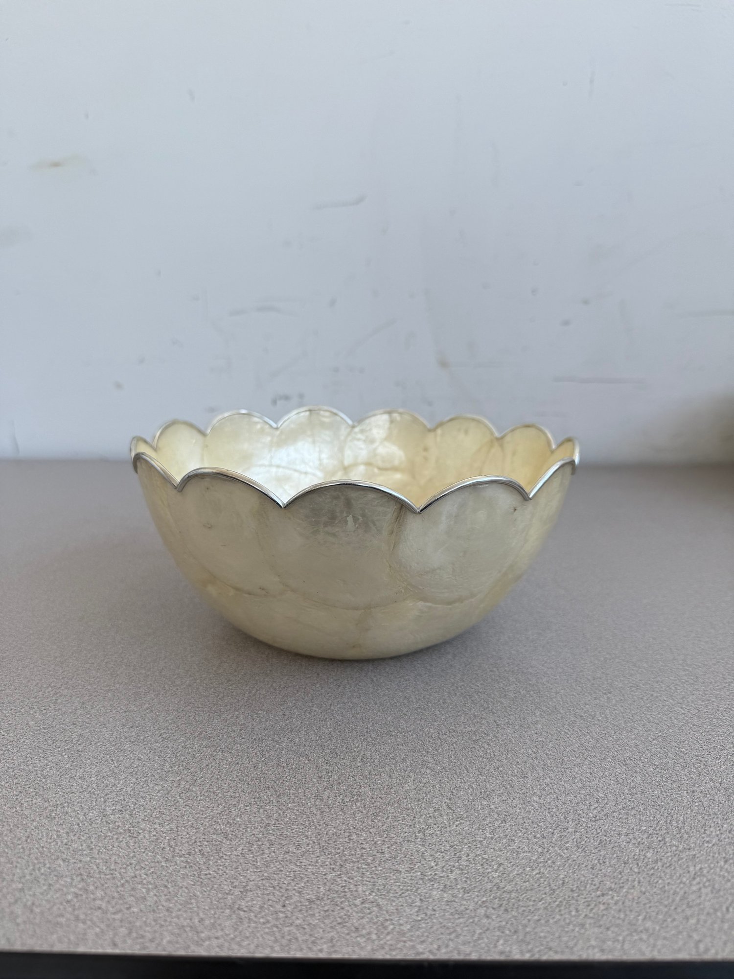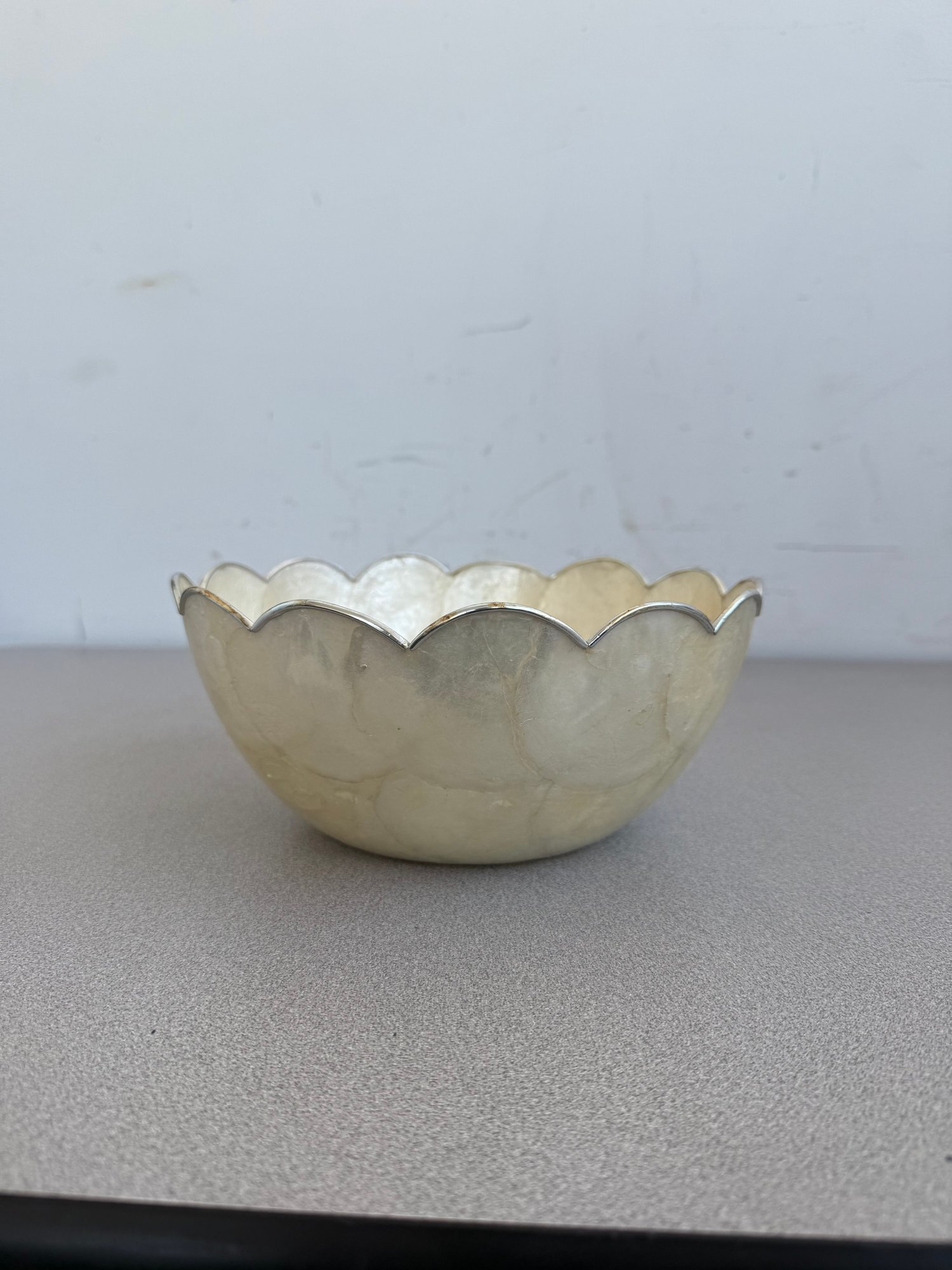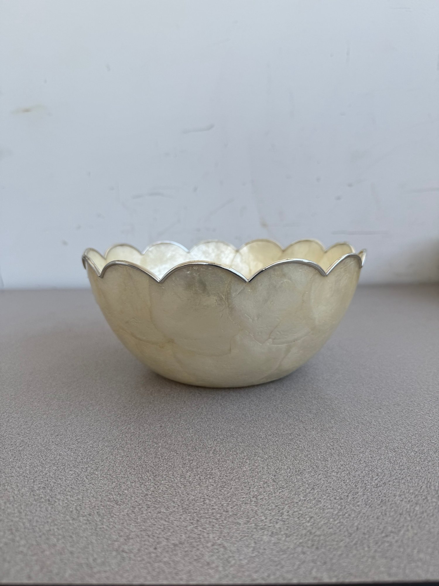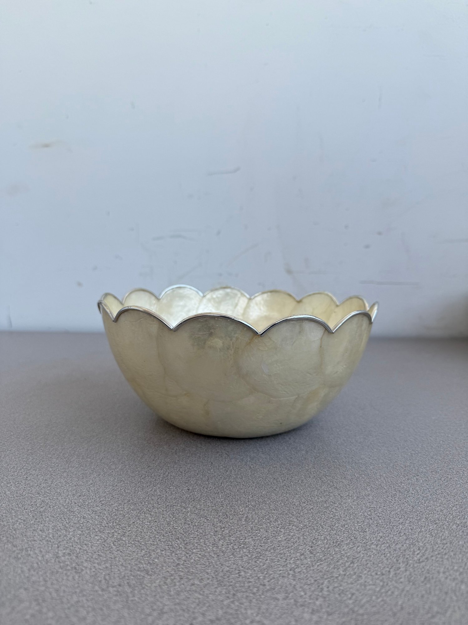 A pair of exquisite scalloped shell bowls, designed to add a touch of coastal elegance to any decor. These items are perfect for those seeking a unique blend of natural texture and refined style.