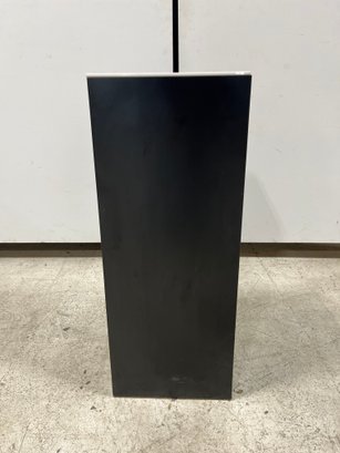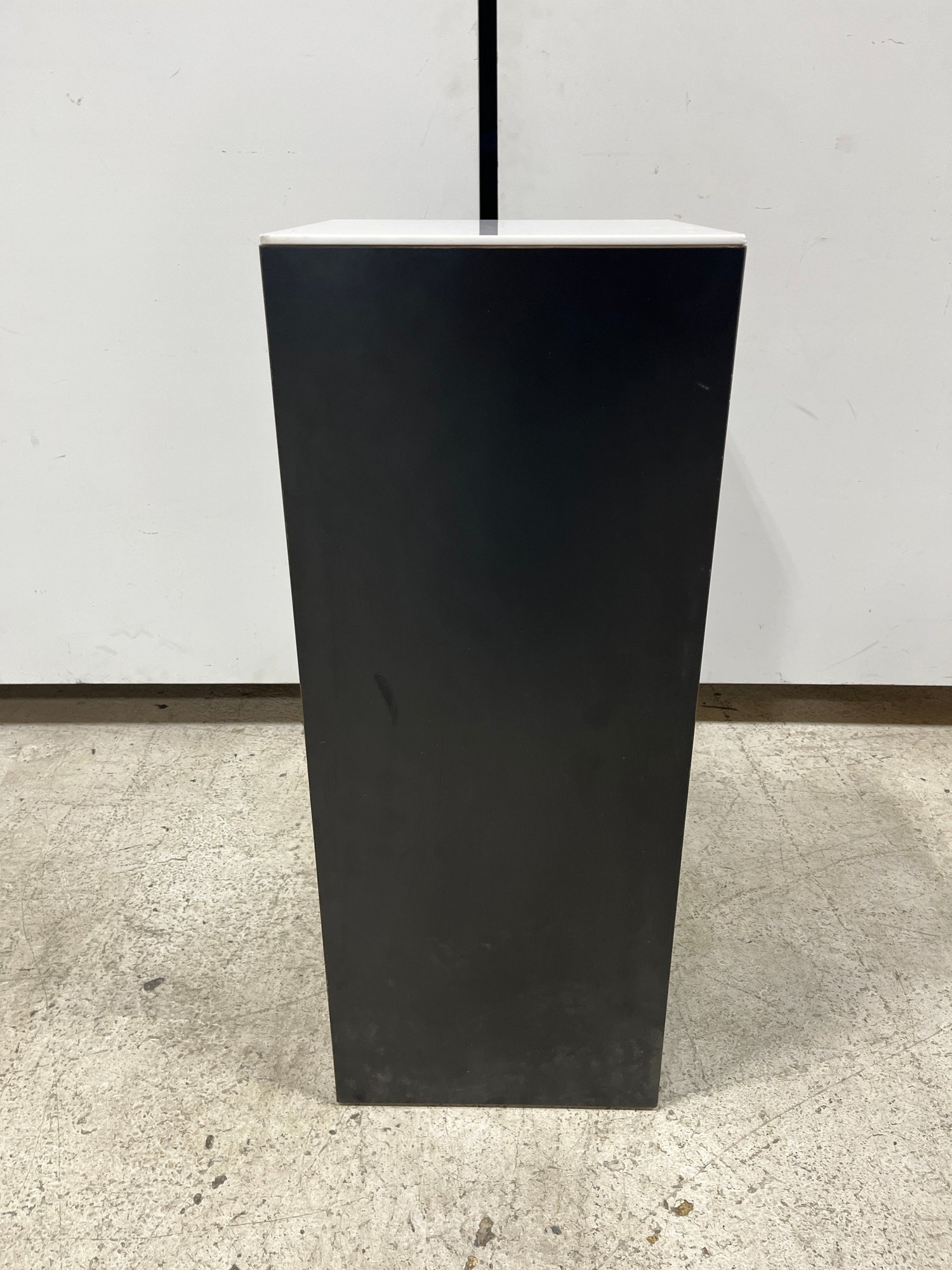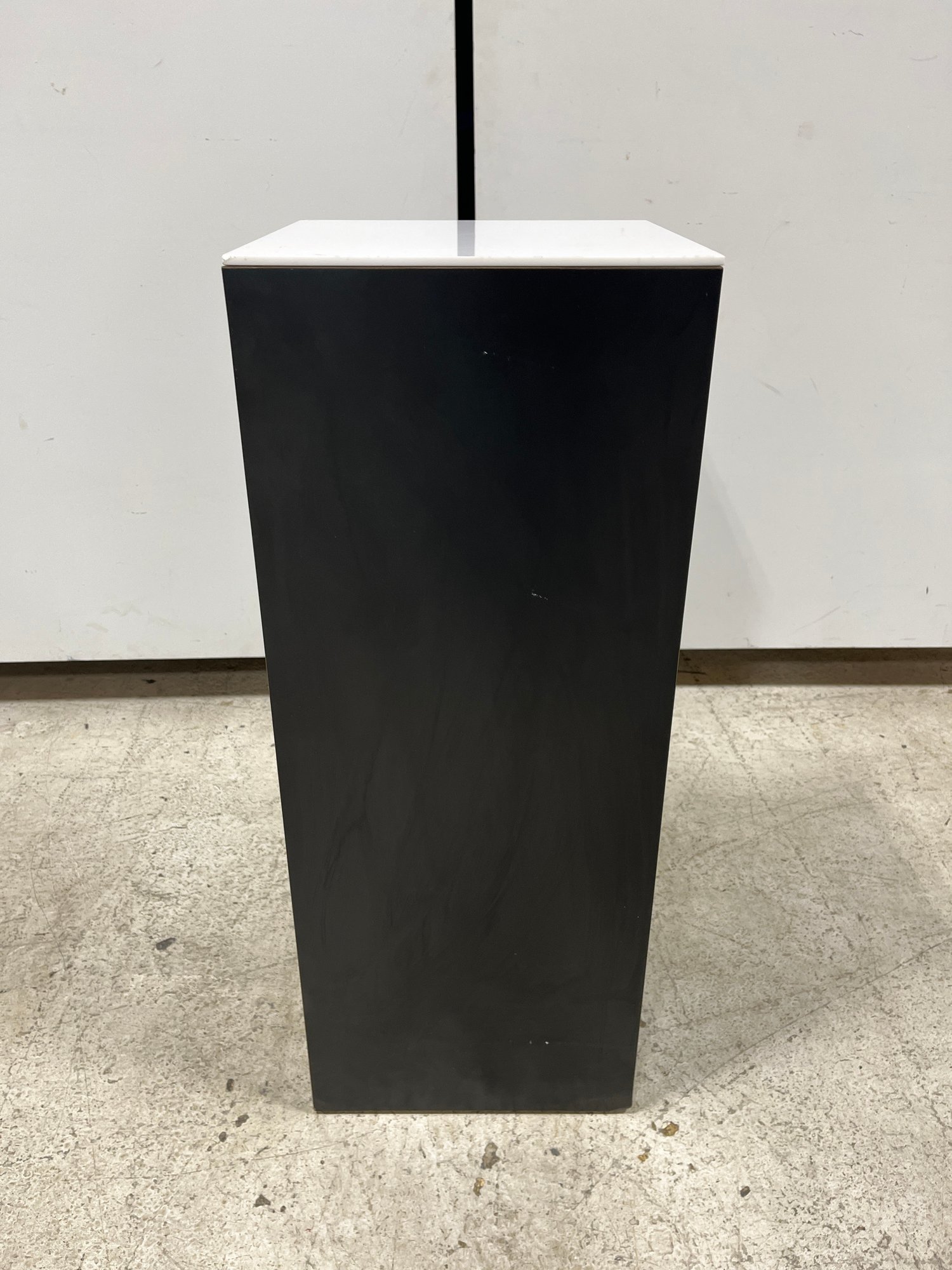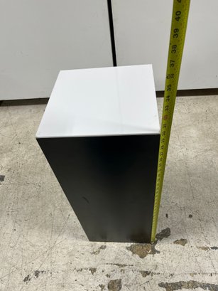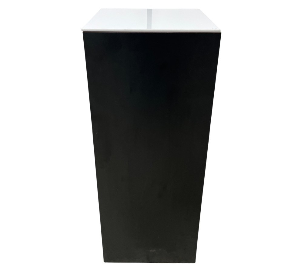 A clean, modern display pedestal designed to highlight high-value items such as artwork, electronics, or floral arrangements. Its minimalist shape provides a sophisticated backdrop that integrates seamlessly into professional photography, retail showrooms, or exhibitions.