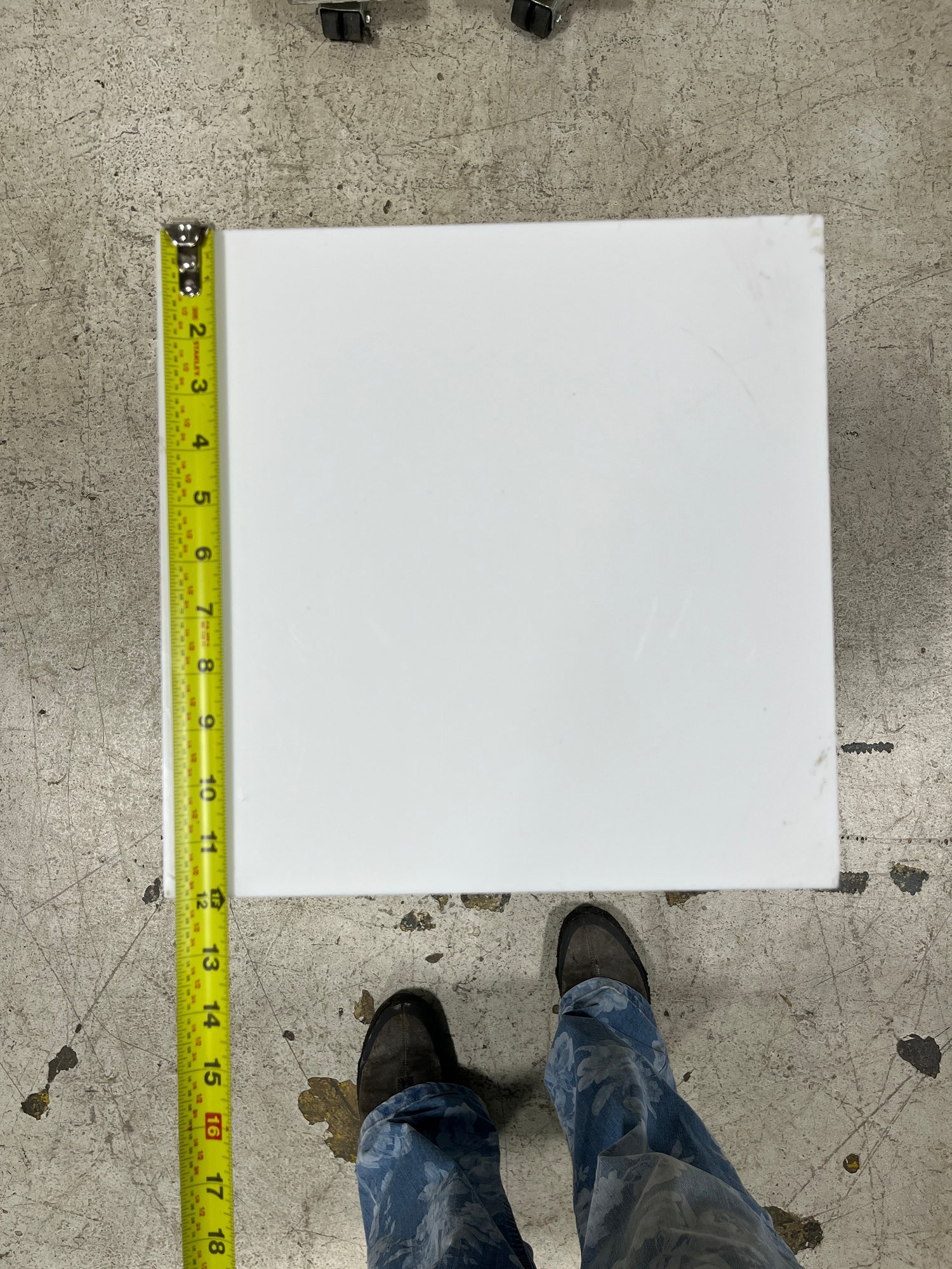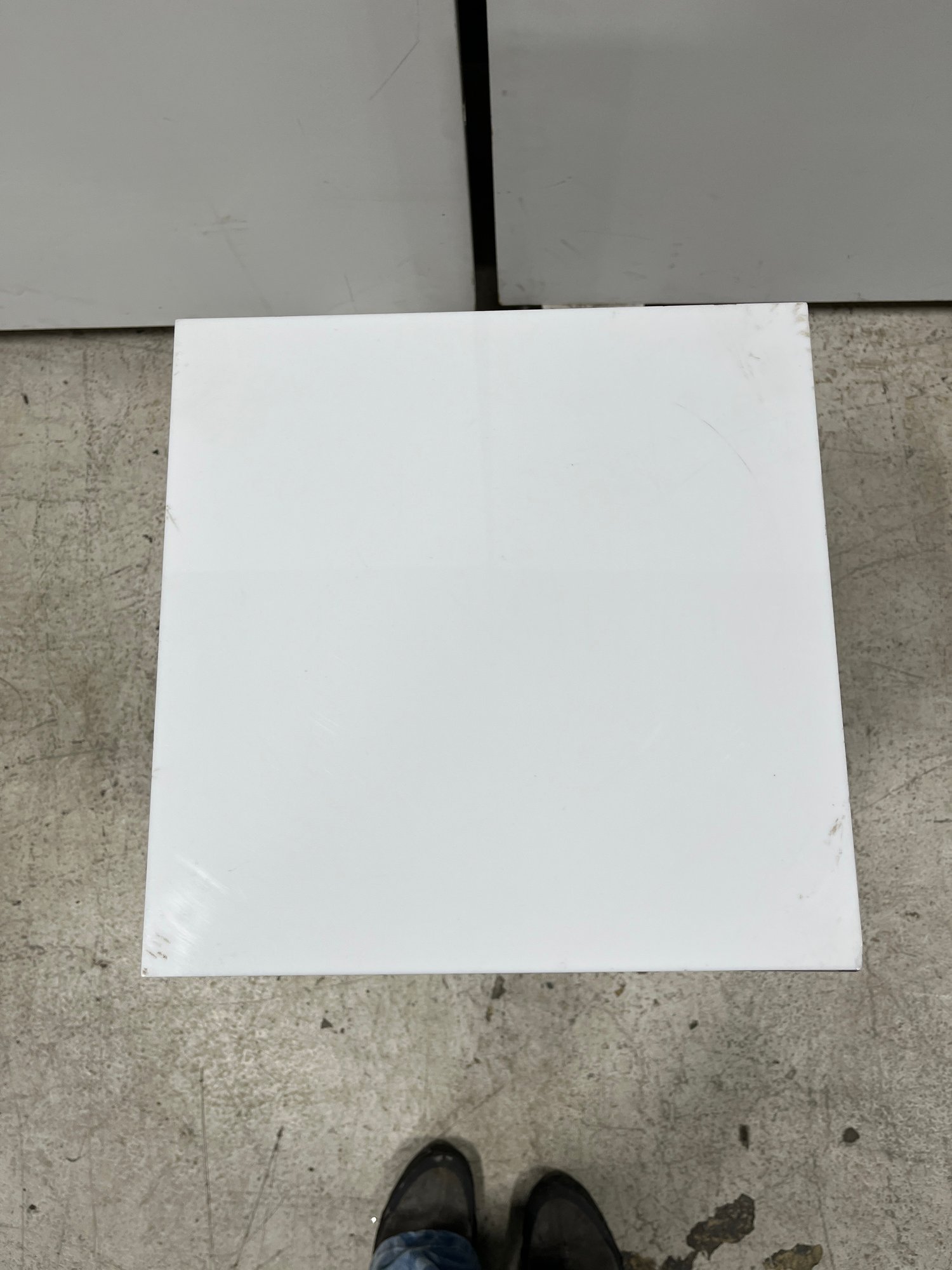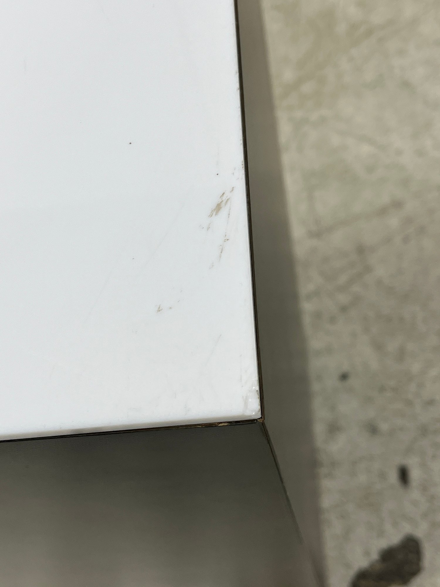 Please note, the white acrylic top is removable and is not fixed on the top of the item. There is some tape residue underneath the acrylic top.