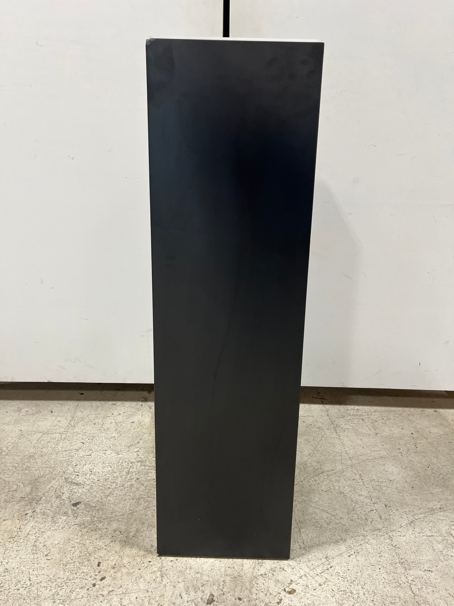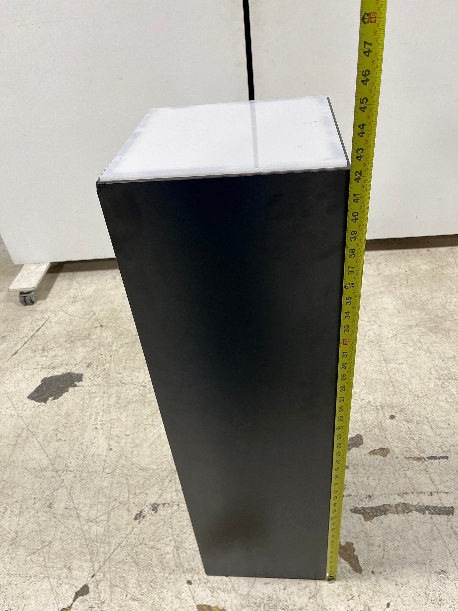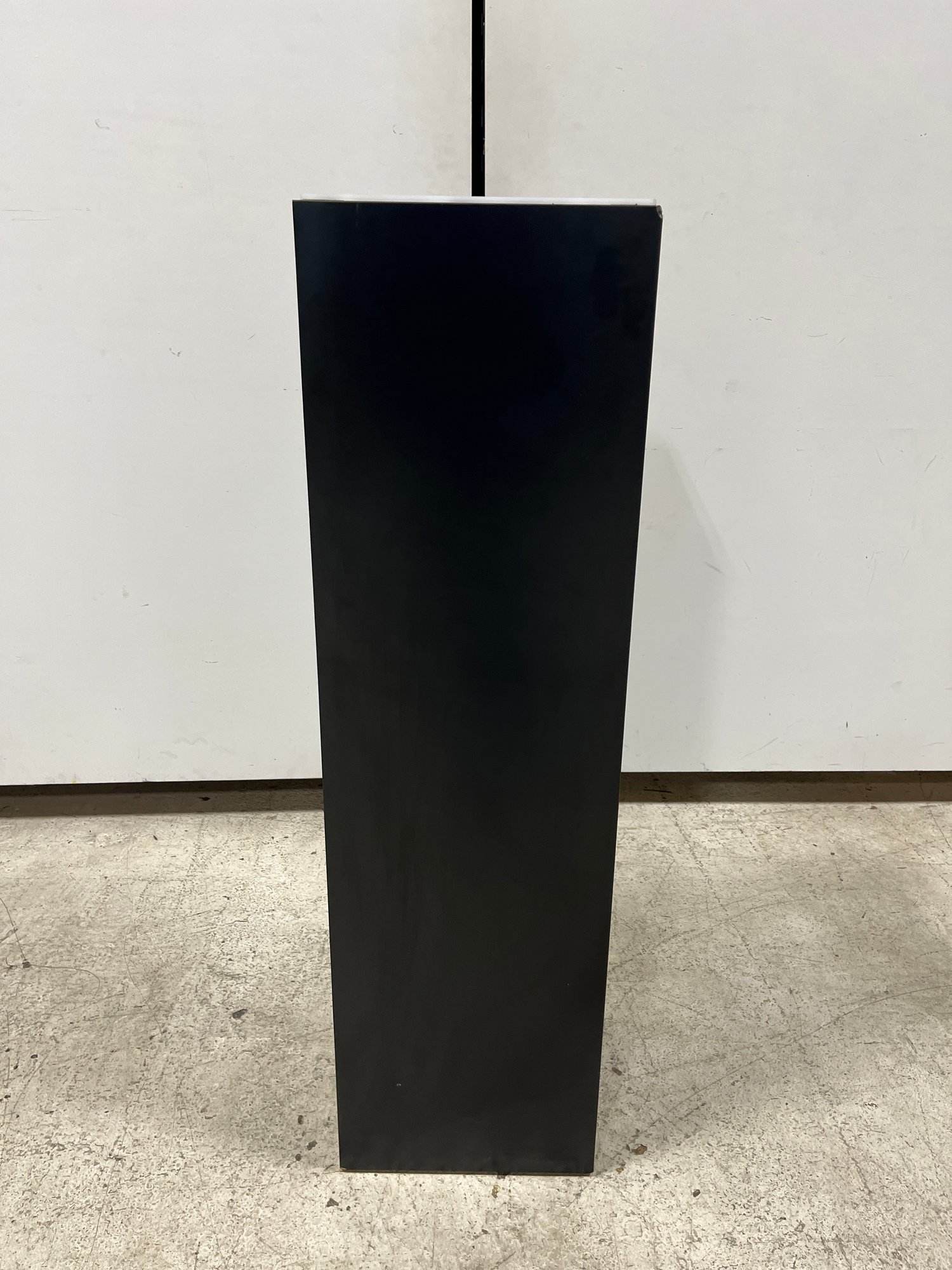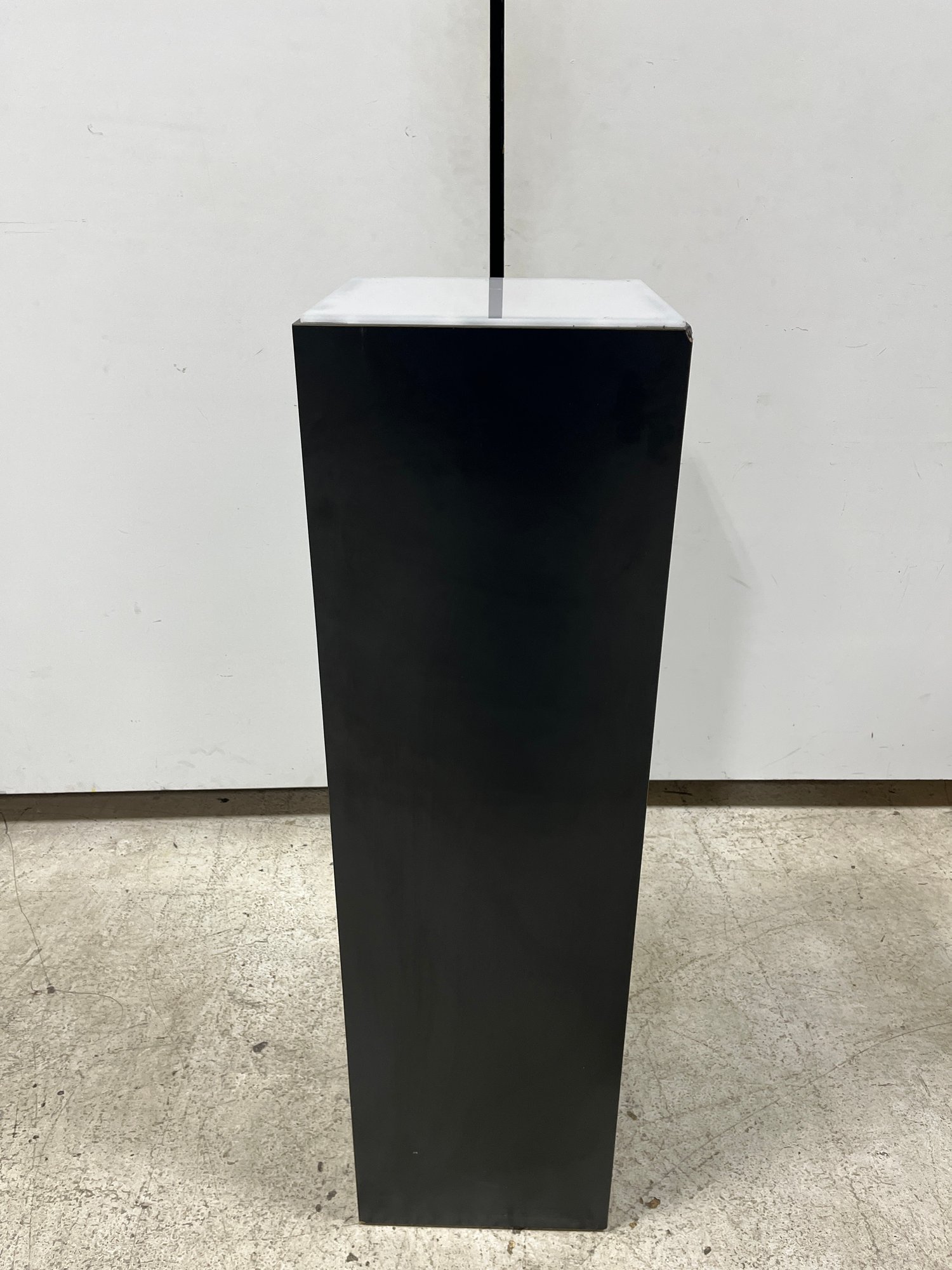 A clean, modern display pedestal designed to highlight high-value items such as artwork, electronics, or floral arrangements. Its minimalist shape provides a sophisticated backdrop that integrates seamlessly into professional photography, retail showrooms, or exhibitions.
