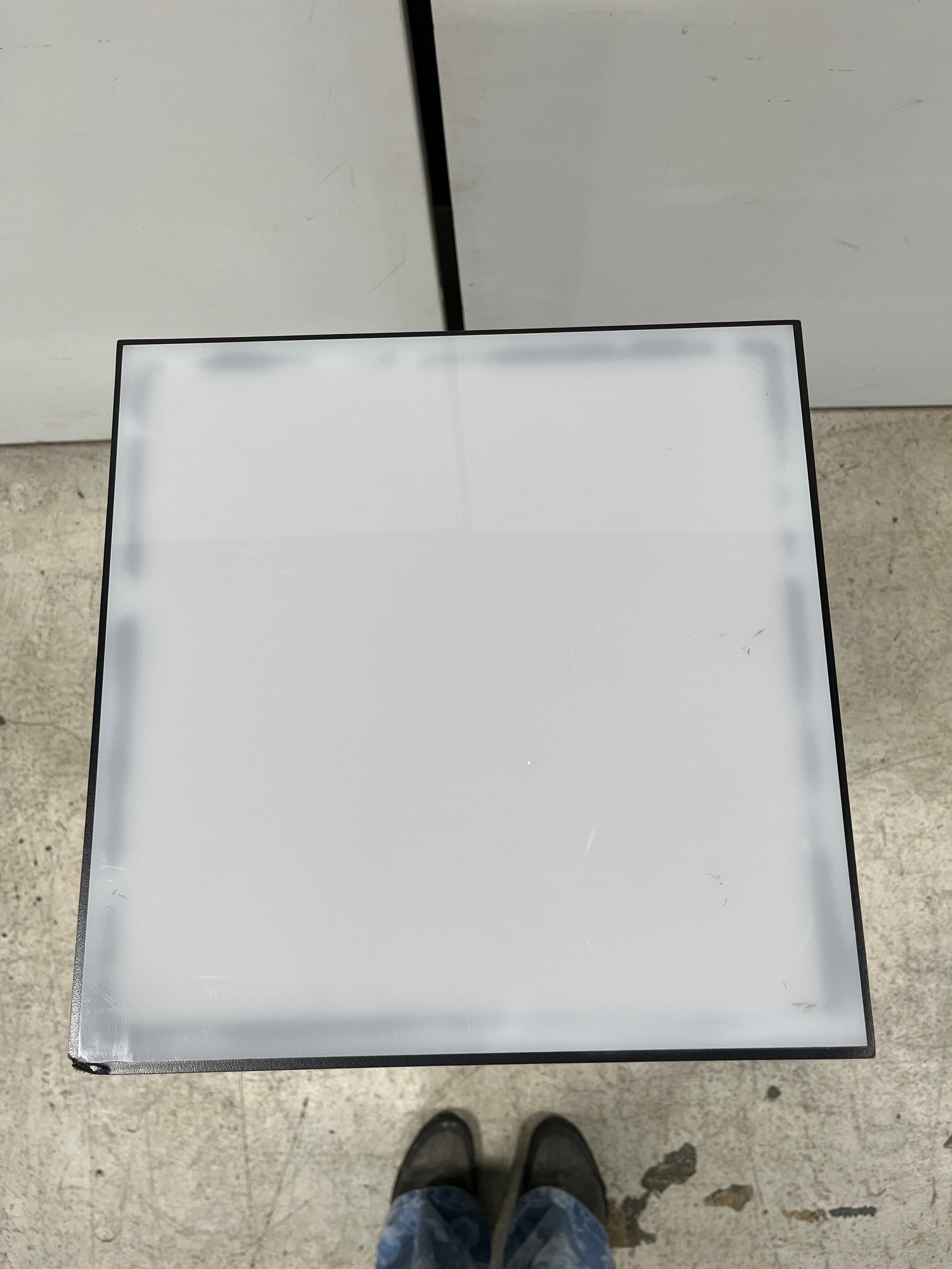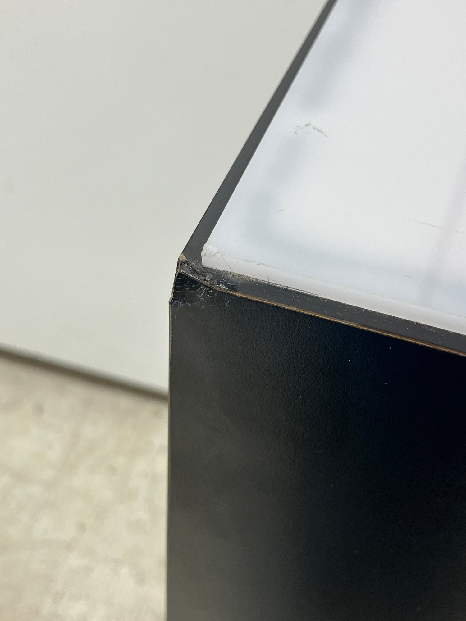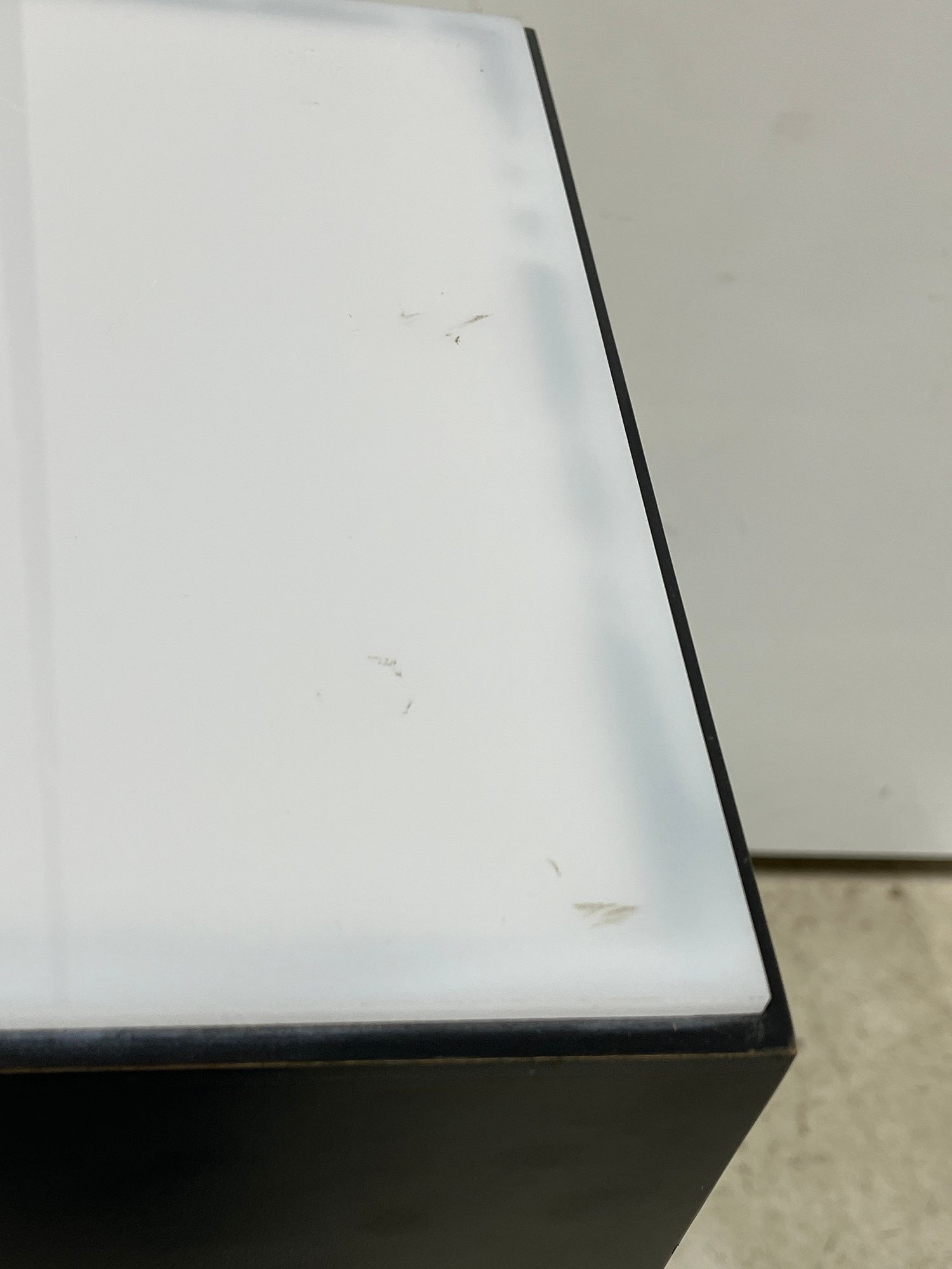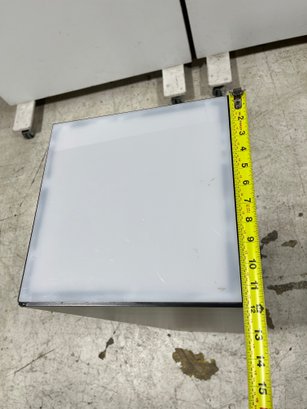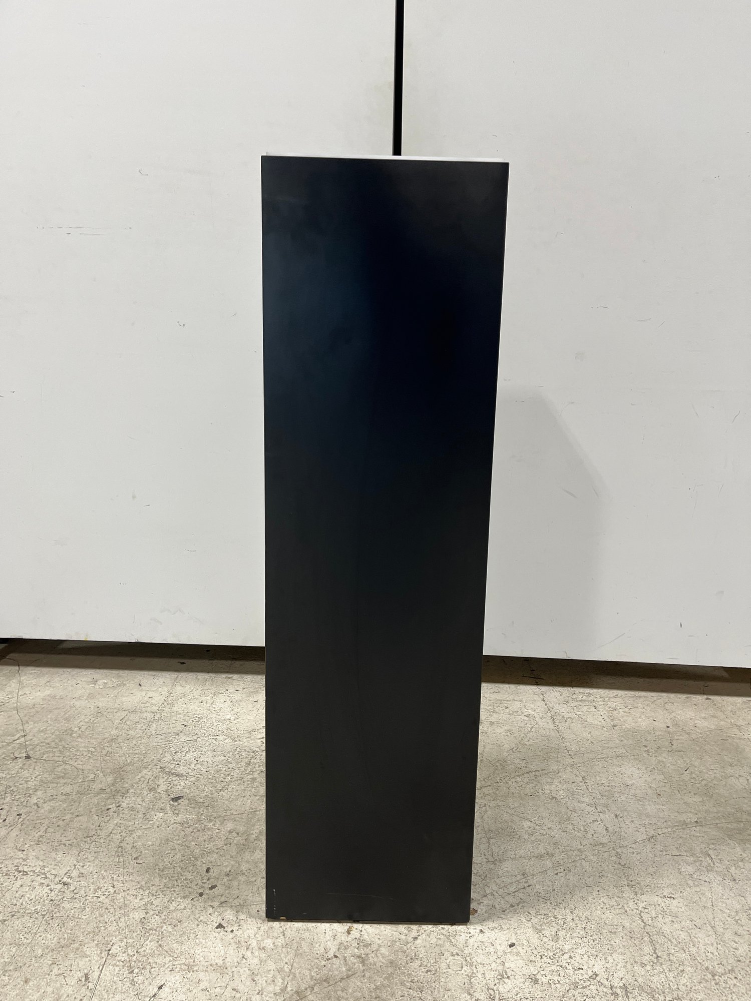A clean, modern display pedestal designed to highlight high-value items such as artwork, electronics, or floral arrangements. Its minimalist shape provides a sophisticated backdrop that integrates seamlessly into professional photography, retail showrooms, or exhibitions.