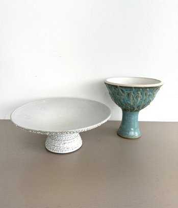 Textured Ceramic Ivory Cake Stand & Turquoise Chalice (2-piece Set)