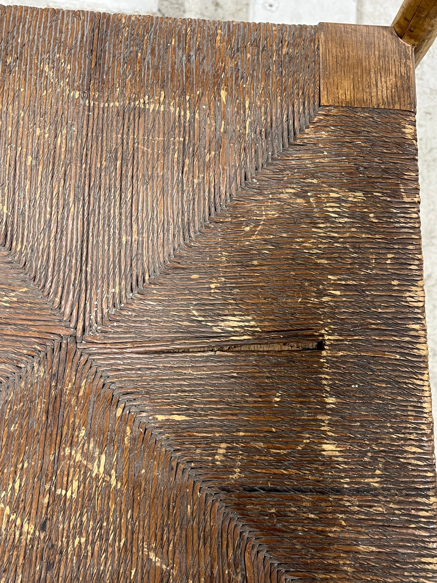 Please note, there are portions of this piece where the wood is separating from the frame causing the chair to wobble.