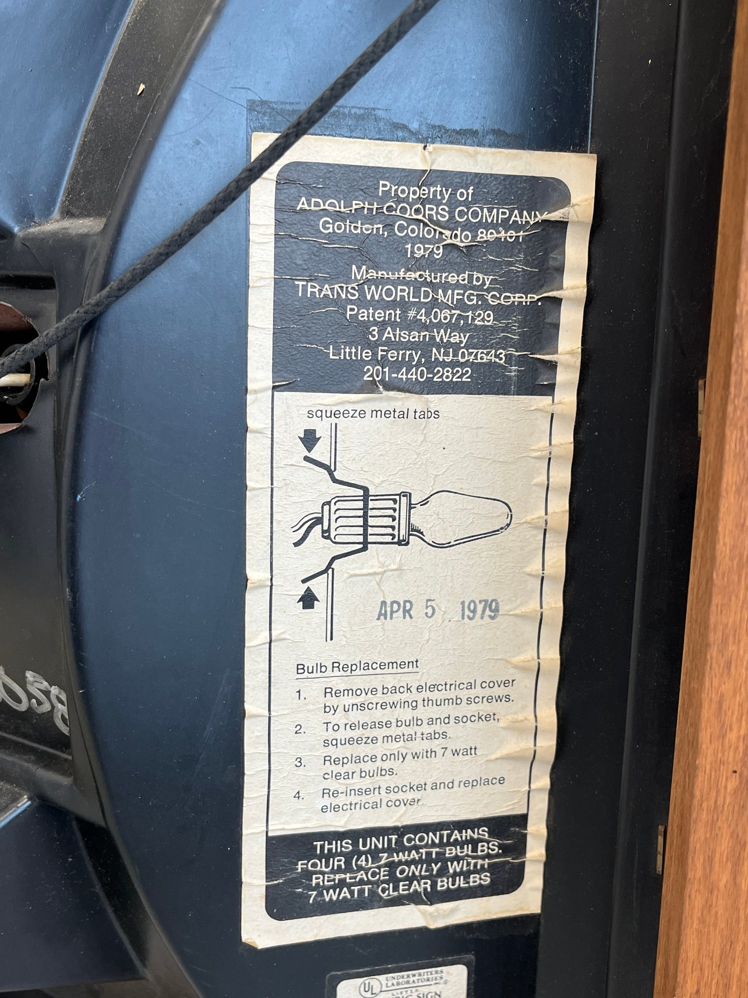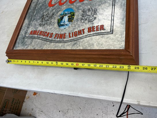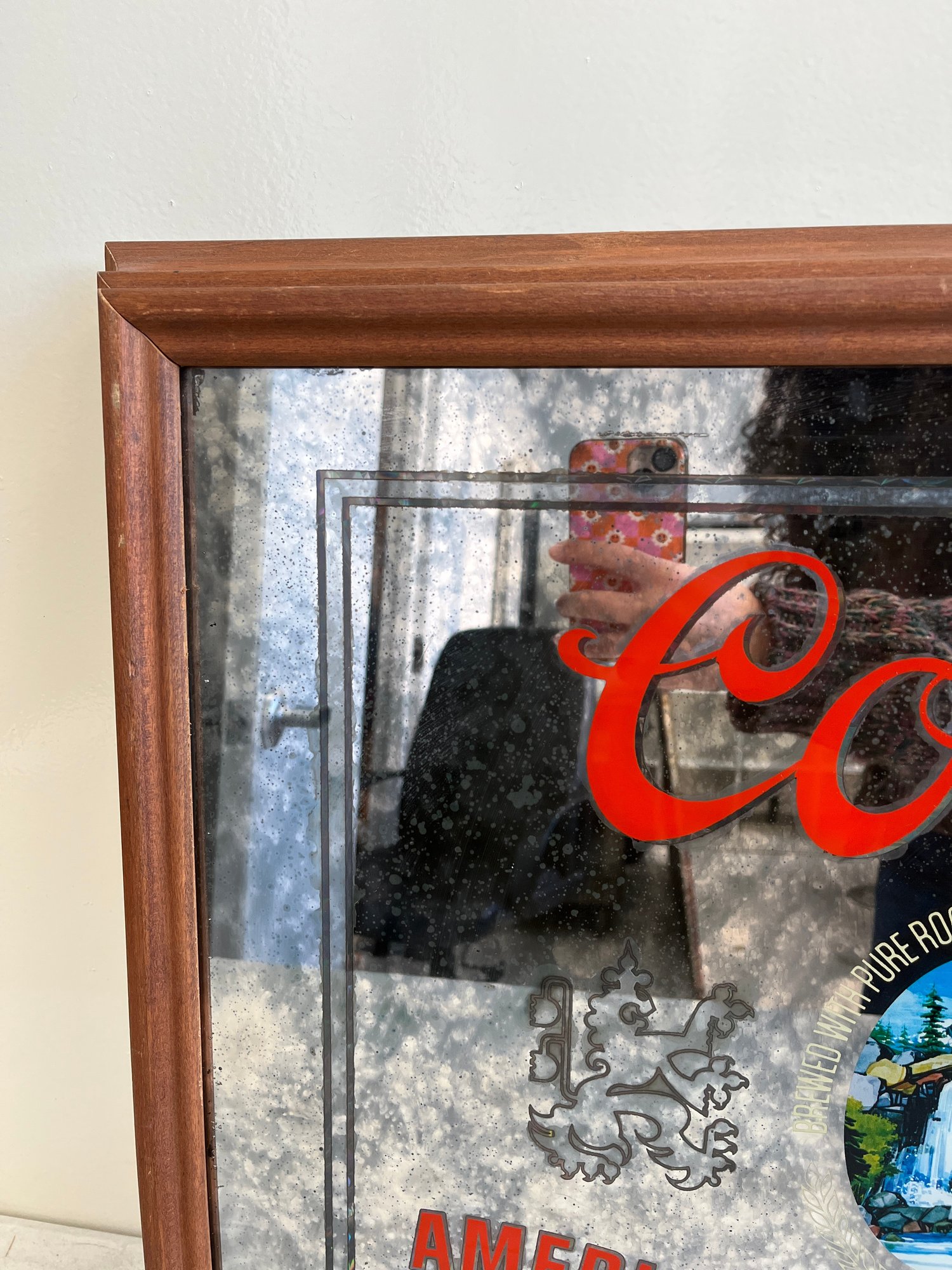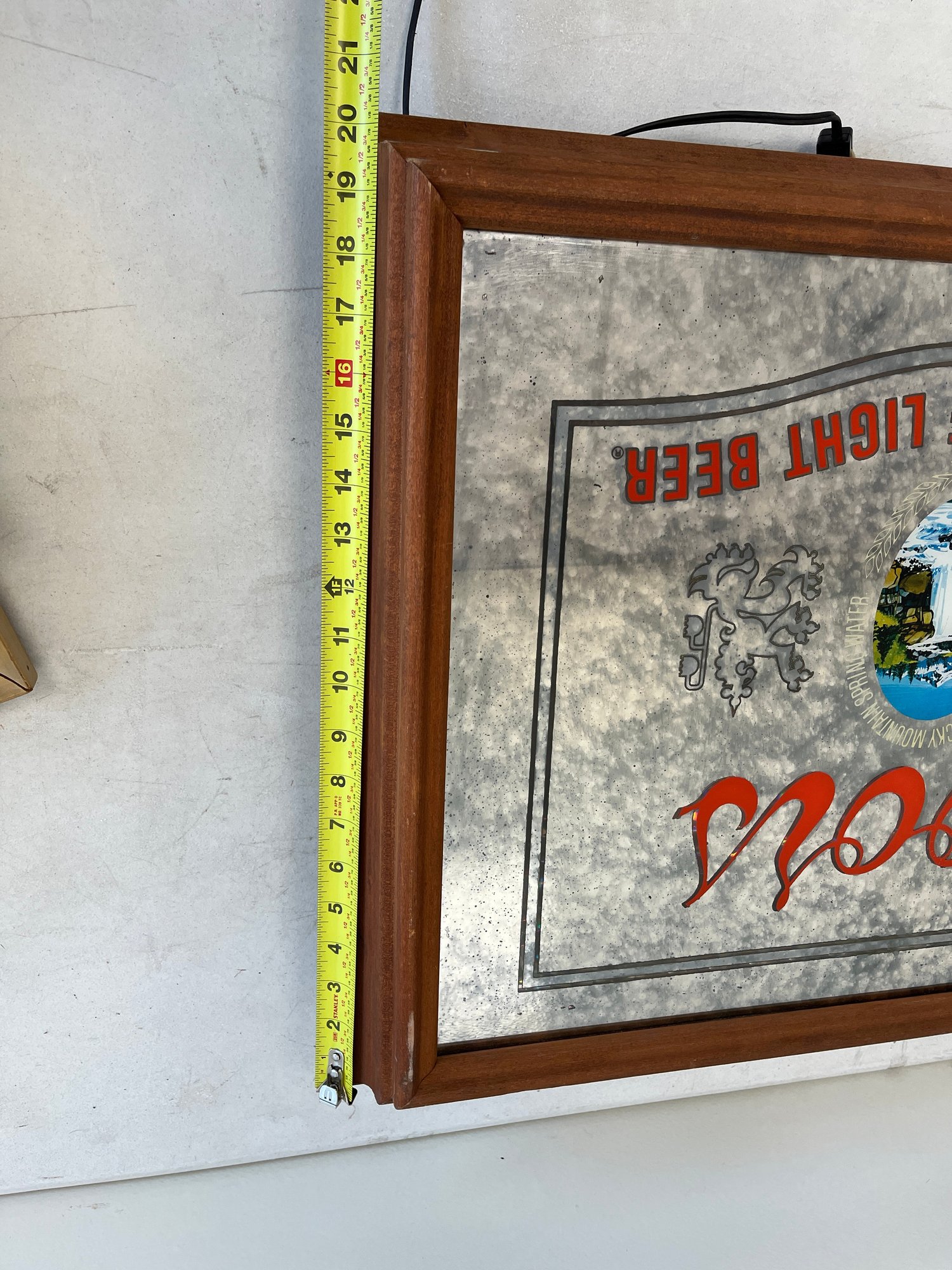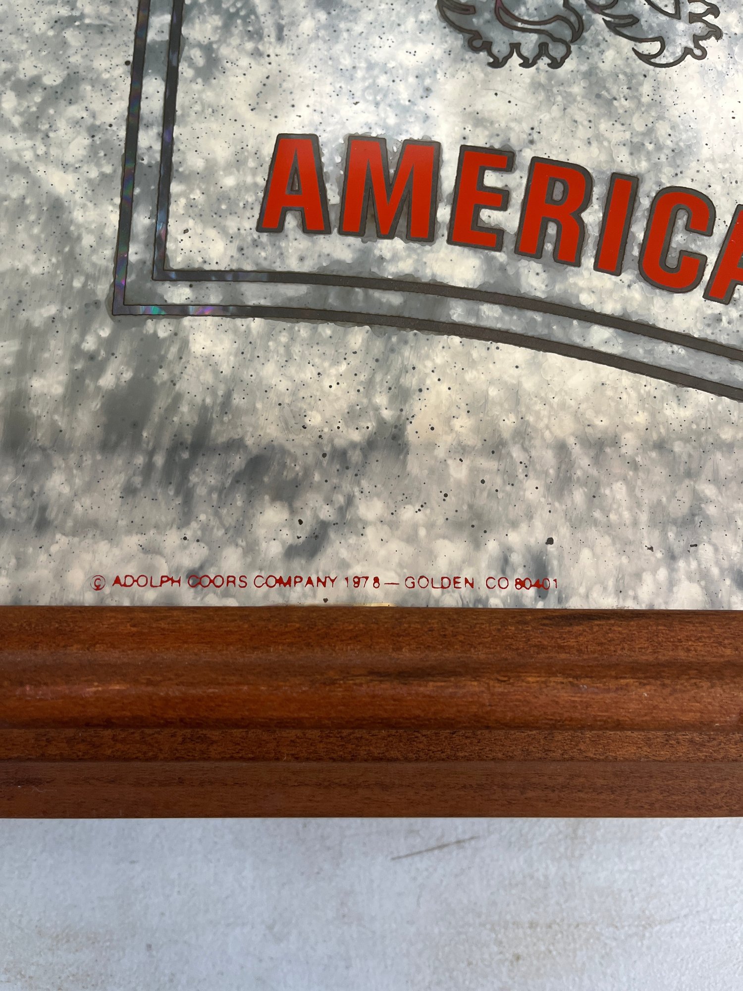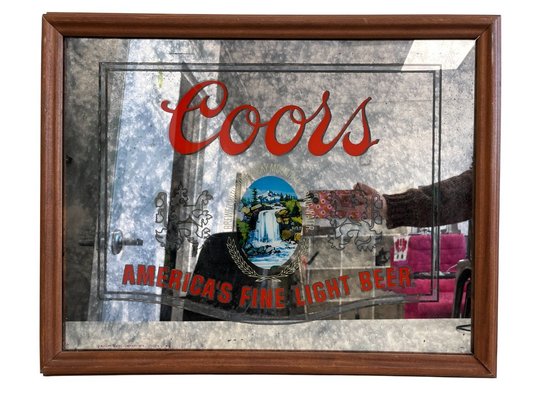 A quintessential piece of late-20th-century breweriana, this backlit advertising mirror represents the classic Coors brand identity used during the late 1970s and early 1980s. Combining functional decor with iconic branding, it was designed to provide a warm, ambient glow in tavern settings or private bar rooms.