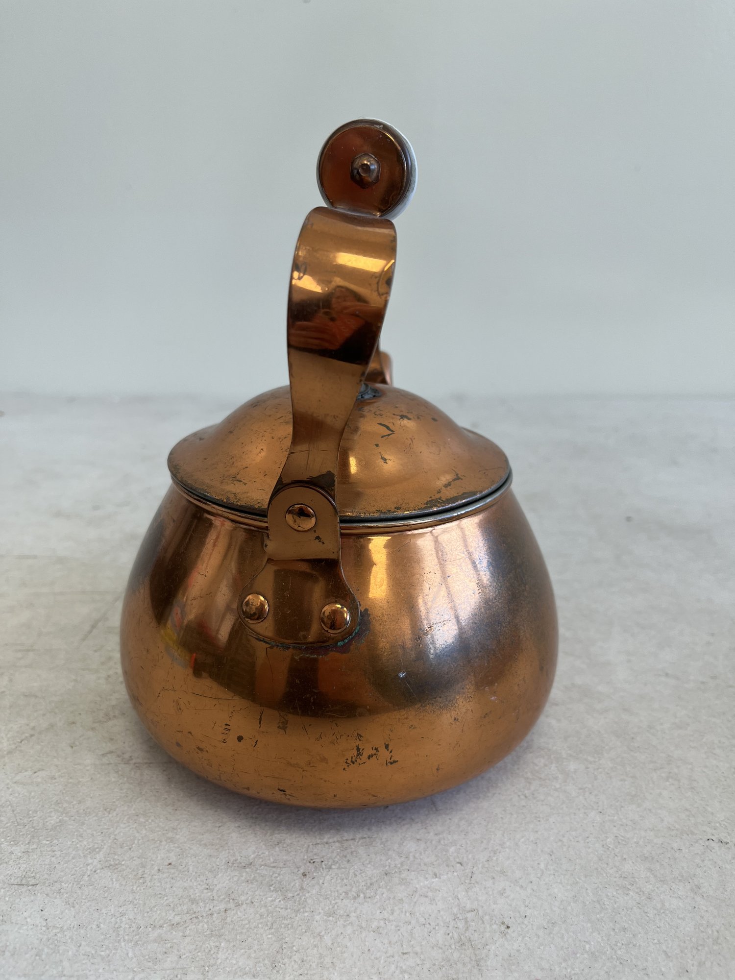 Discover a charming and timeless vintage copper tea set, a perfect blend of rustic elegance and practical design, ideal for the discerning collector or as a distinctive farmhouse decor accent.