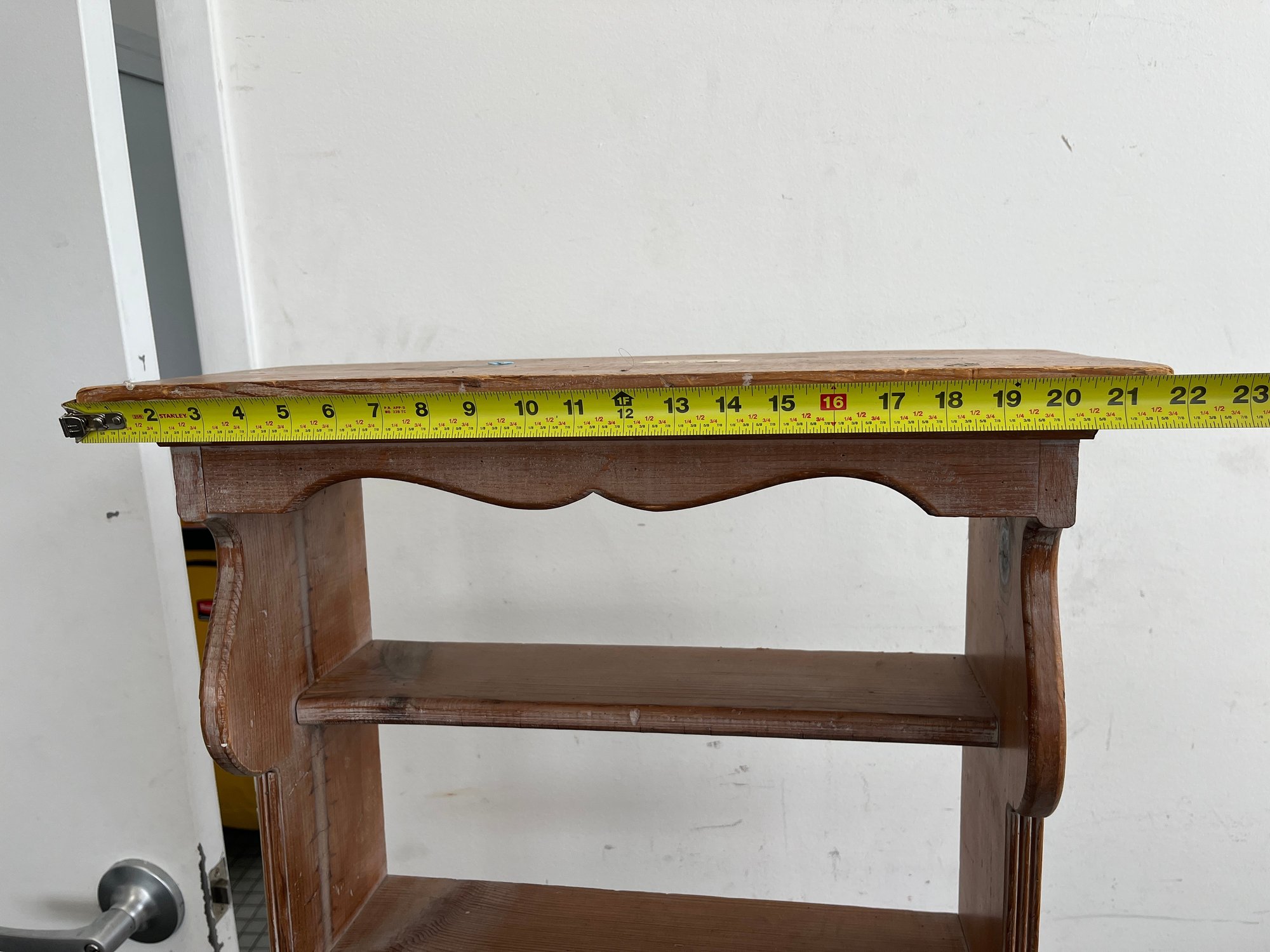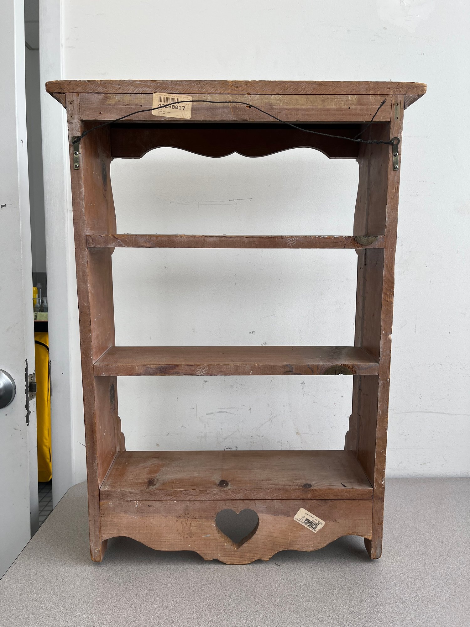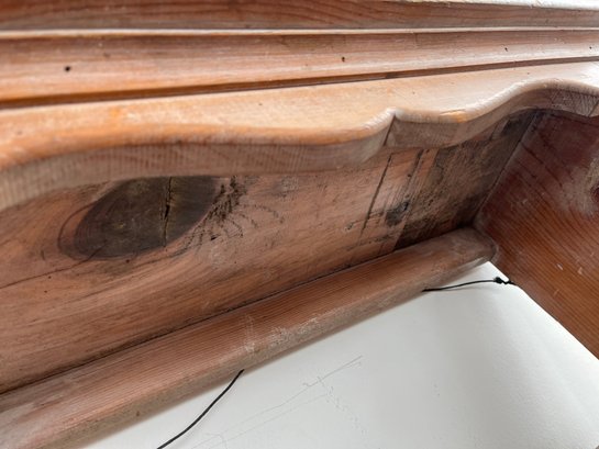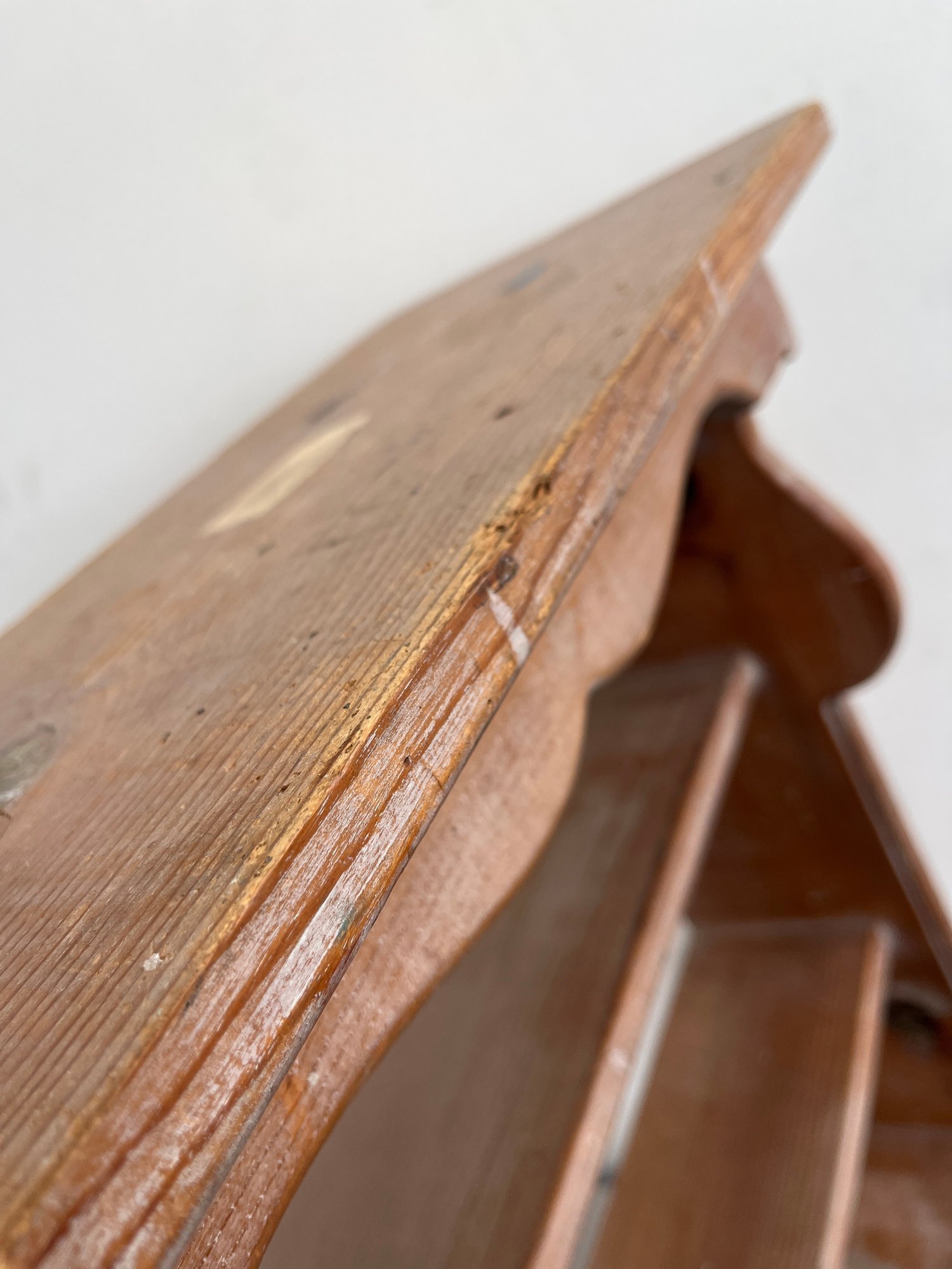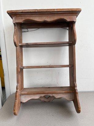 This charming three-tier wall shelf is a quintessential example of mid-20th-century folk-style cabinetry and combines rustic utility with decorative flair making it an ideal accent for farmhouse, cottagecore, or French Country interiors.