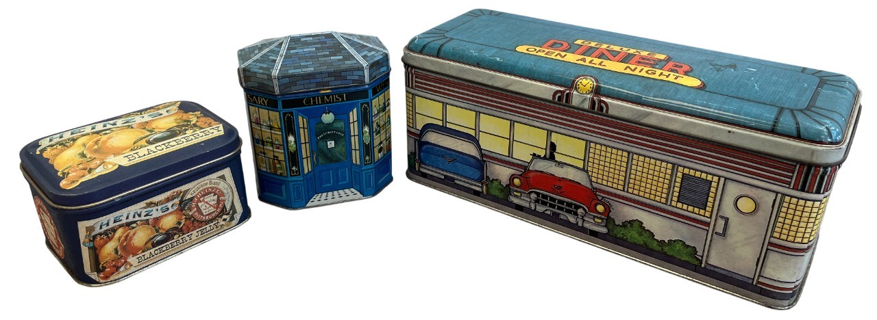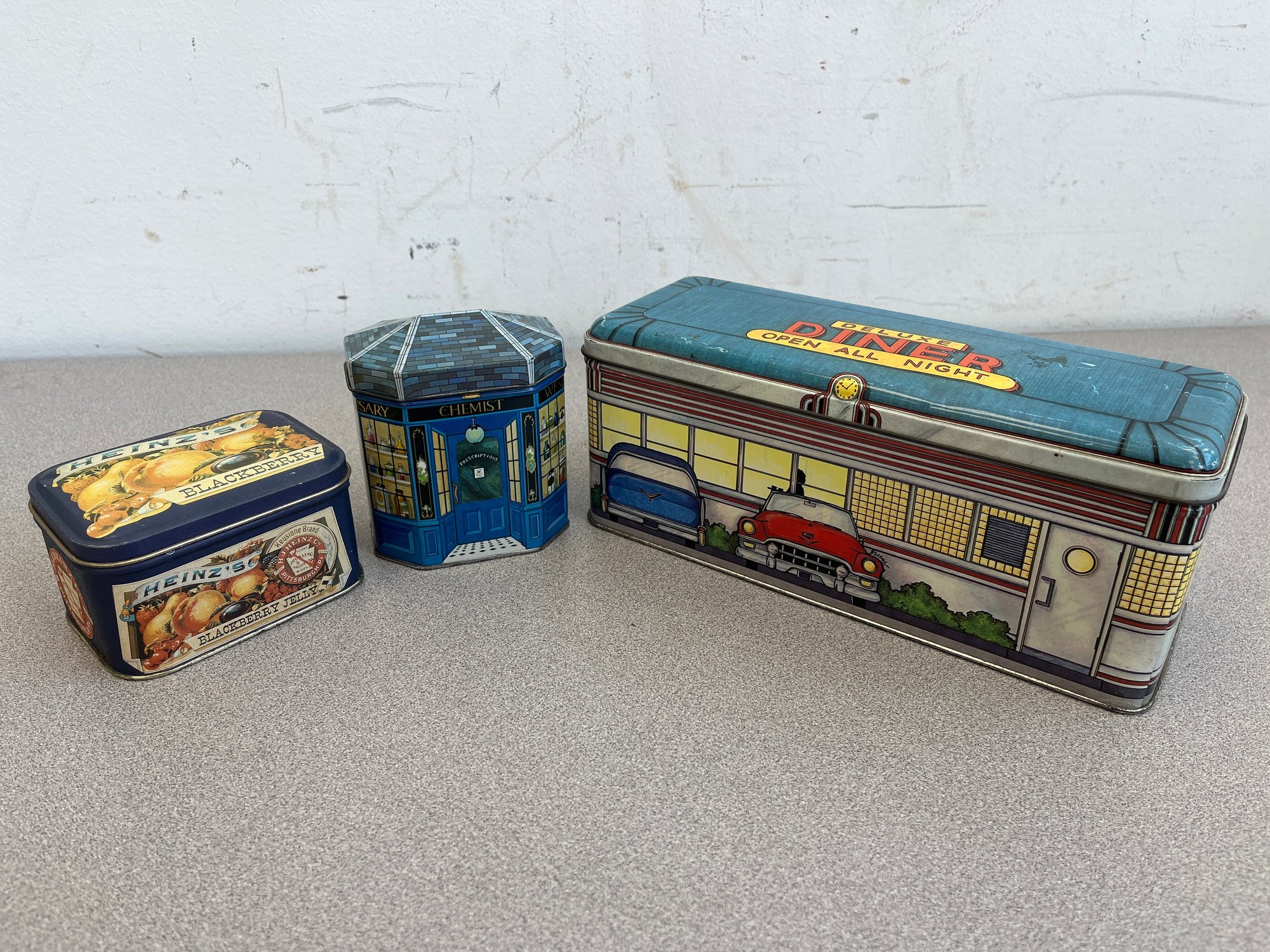 This curated trio of vintage-style tins features iconic mid-century storefront and brand imagery, making it a perfect starter set for a collector or a charming addition to a retro-themed kitchen.