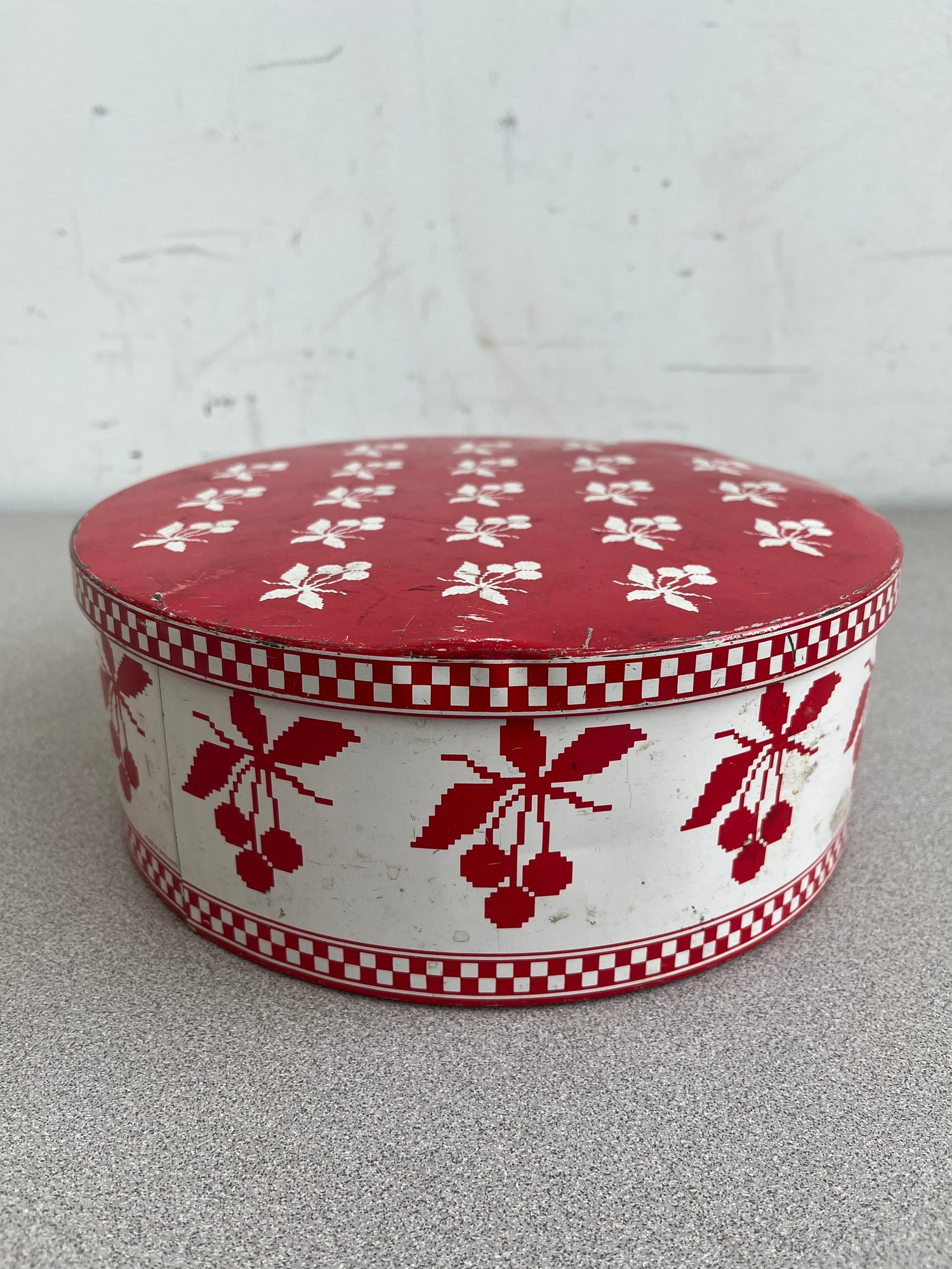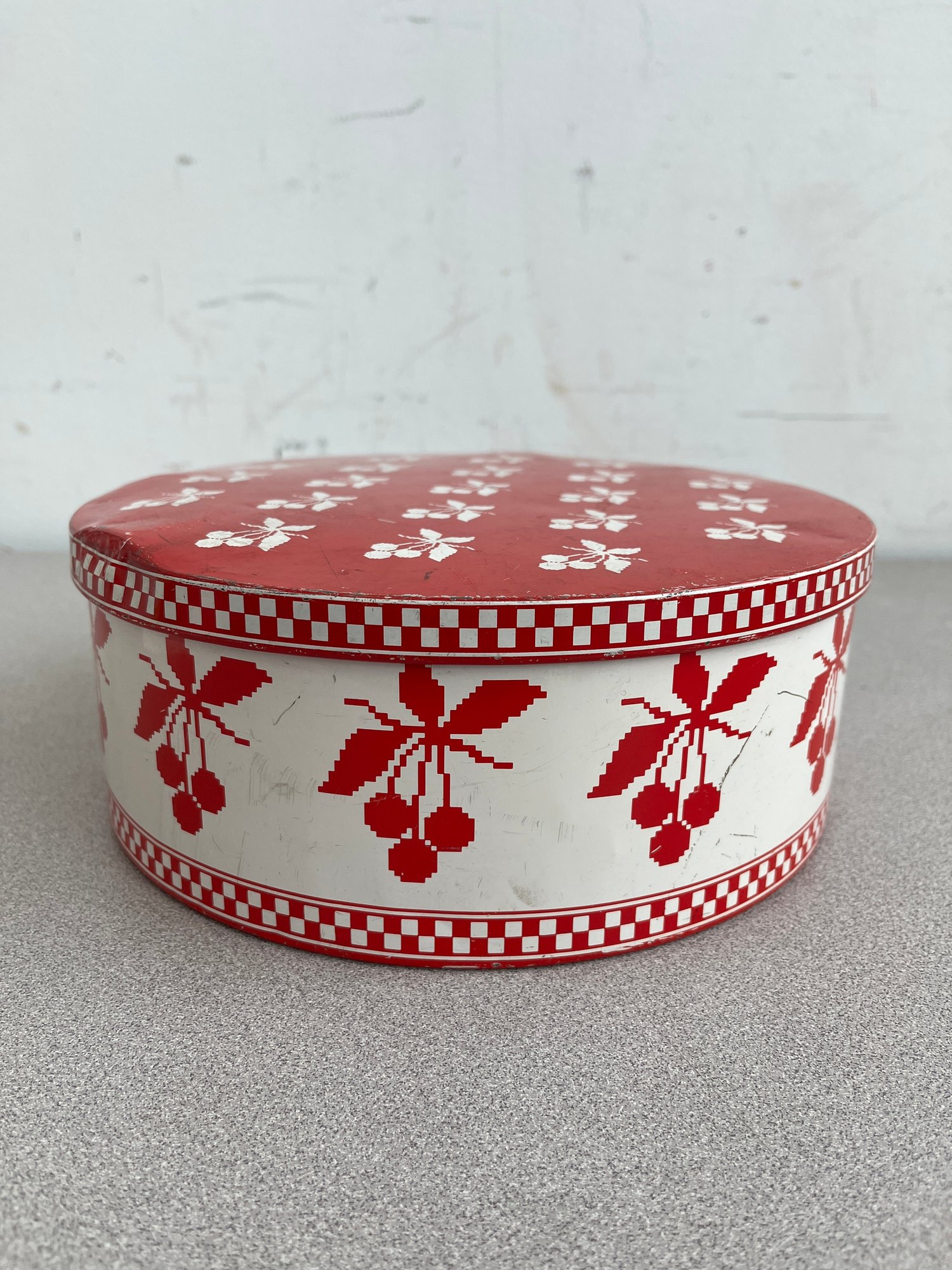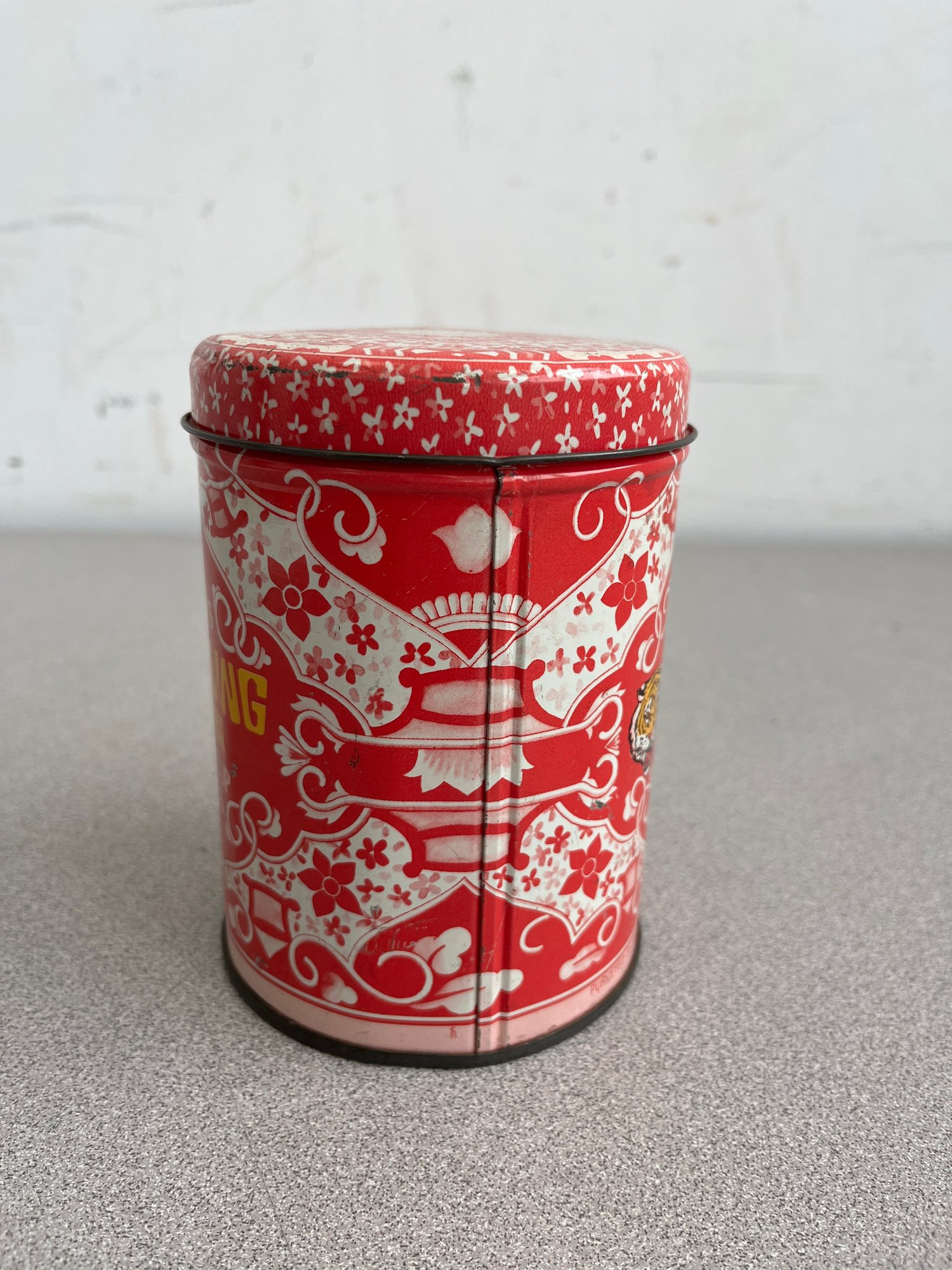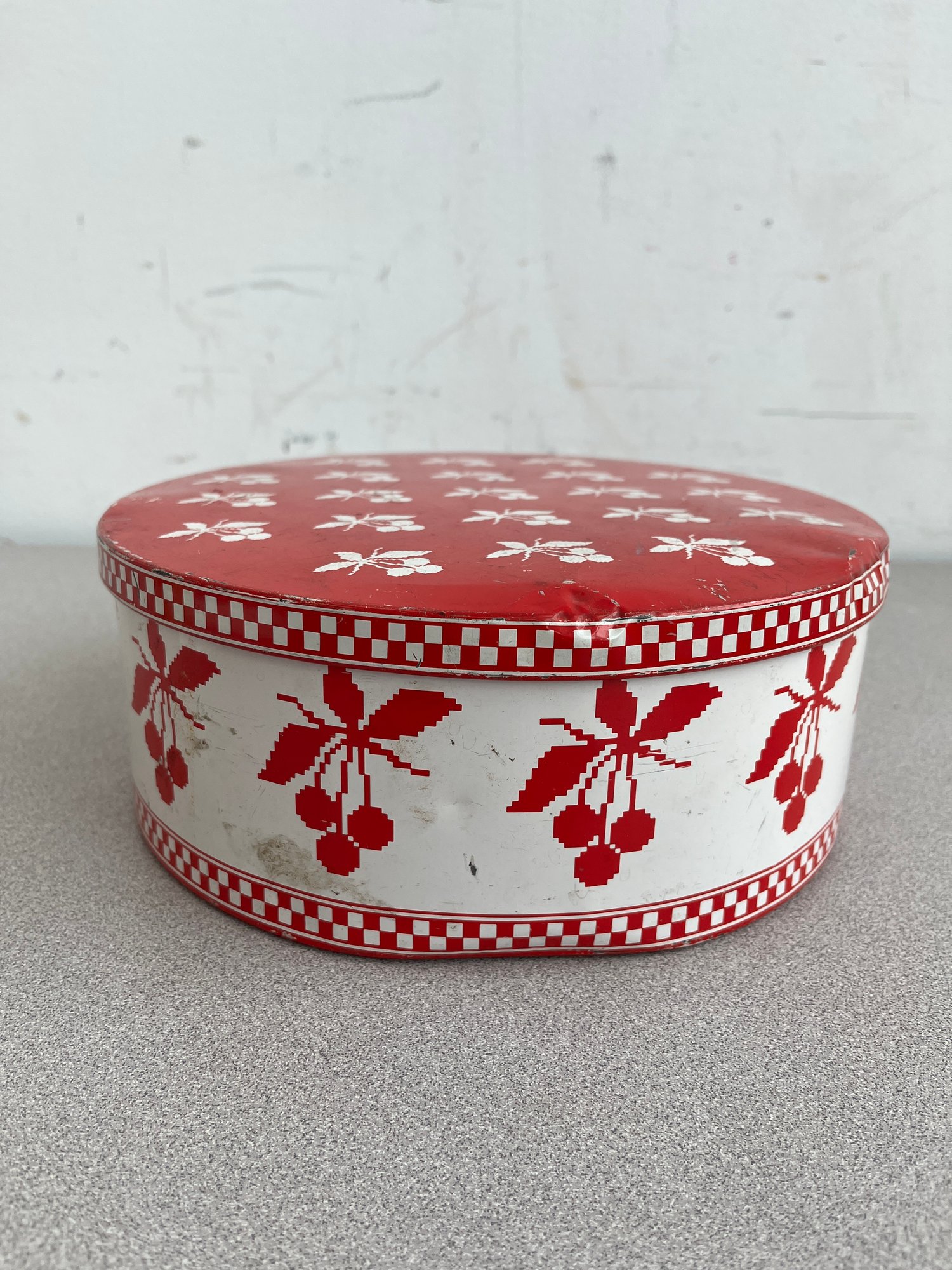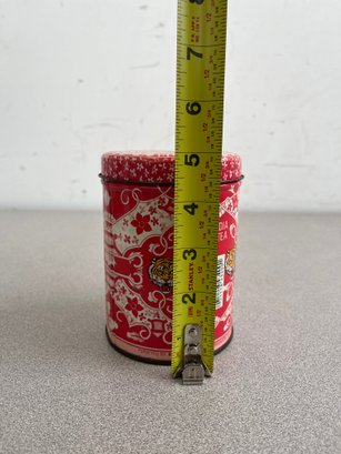 A vibrant three-piece assembly of mid-century lithographed metal tins, representing a cross-section of 1950s–1970s American kitchenware and "kitsch" branding. This lot features diverse geometries offering a cohesive yet varied display for collectors of vintage advertising or retro decor.