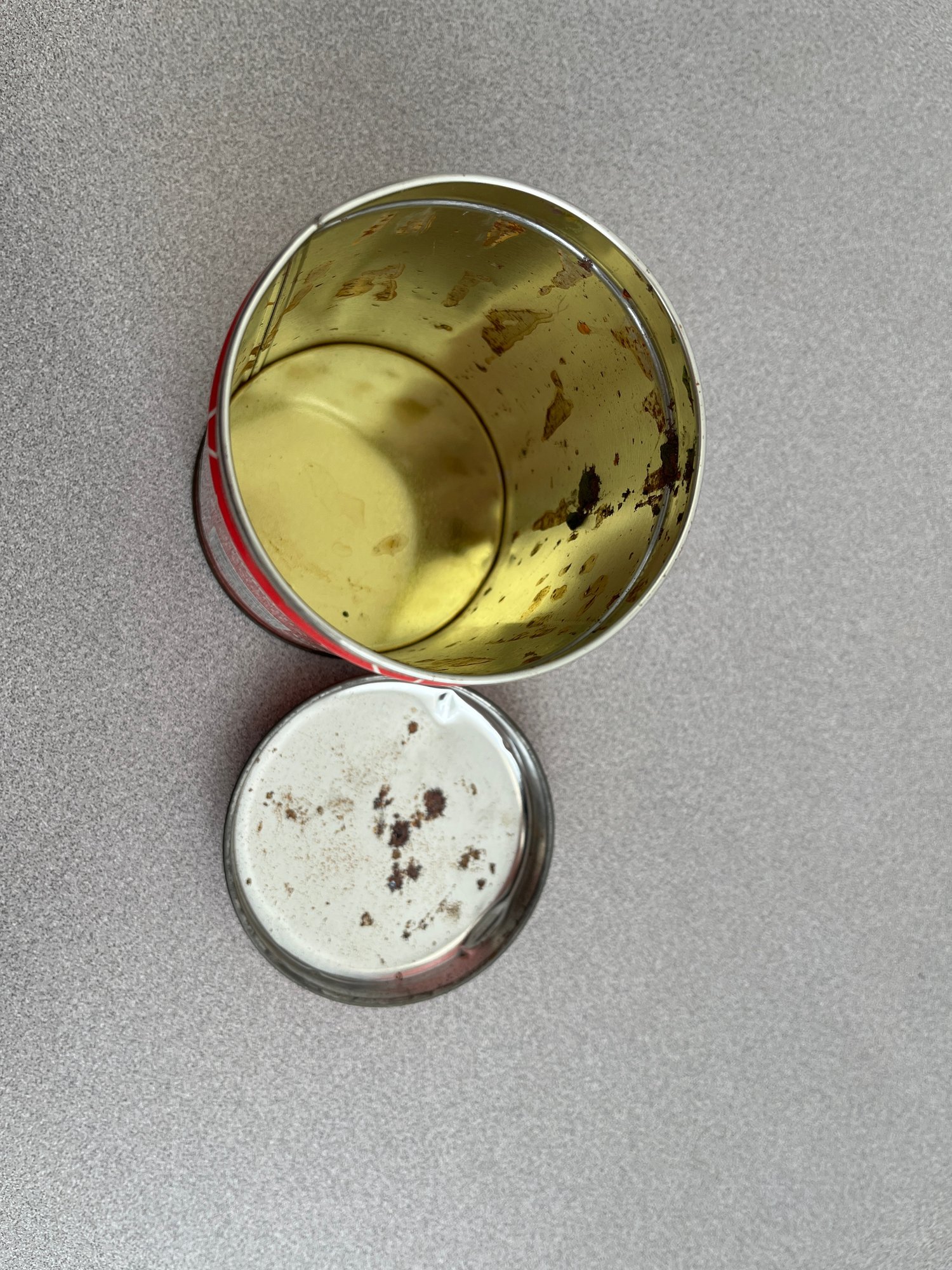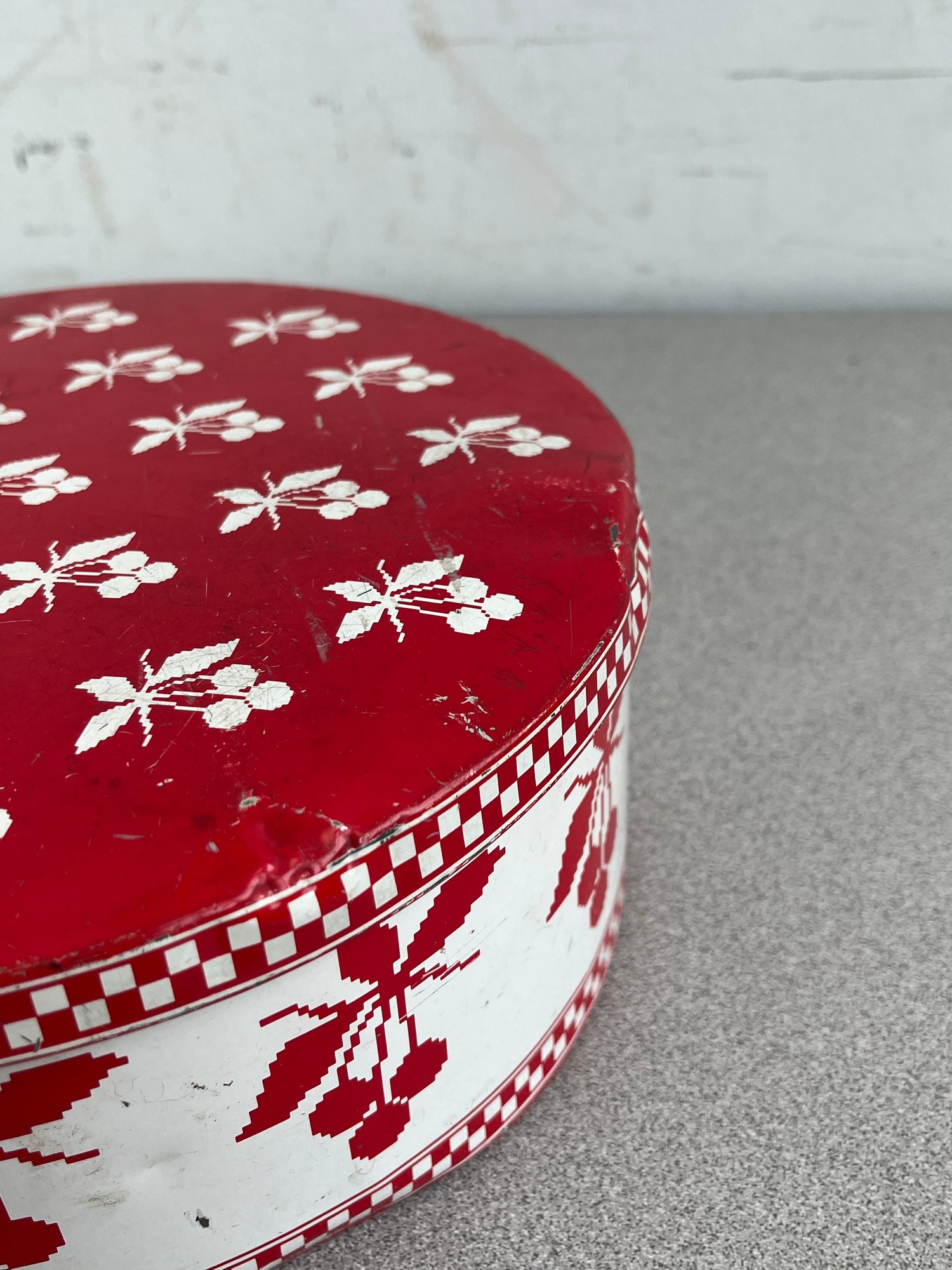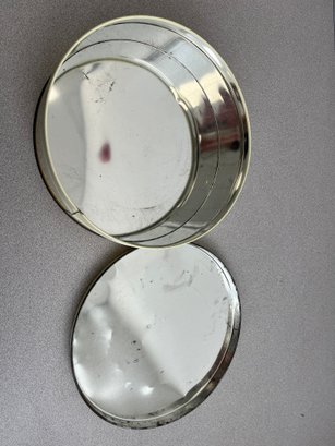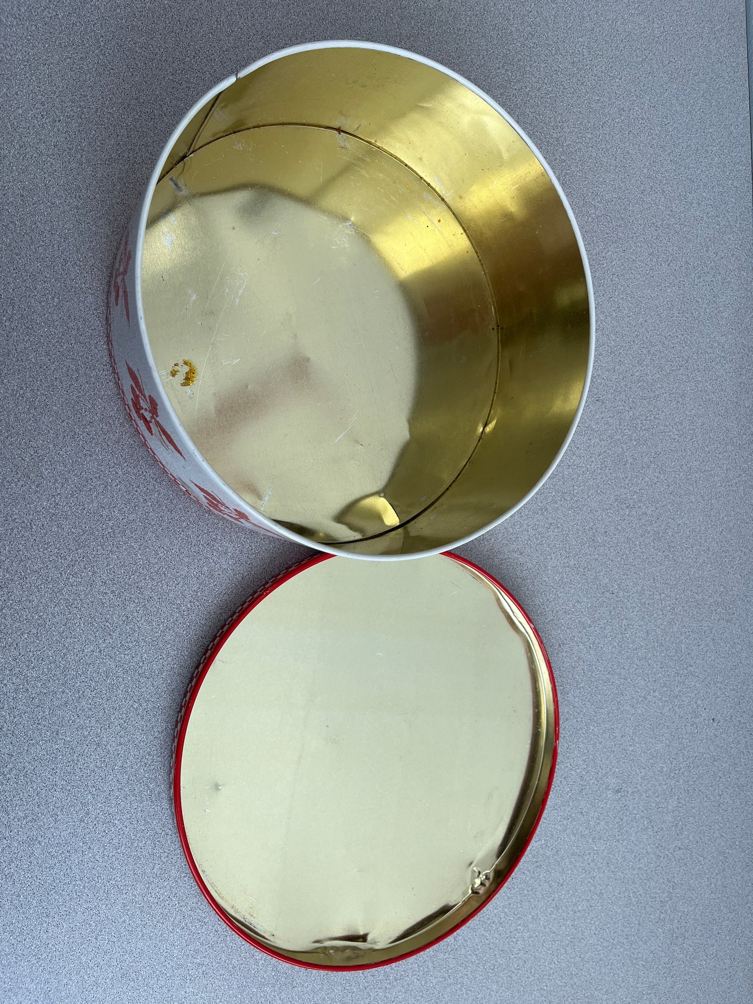 A vibrant three-piece assembly of mid-century lithographed metal tins, representing a cross-section of 1950s–1970s American kitchenware and "kitsch" branding. This lot features diverse geometries offering a cohesive yet varied display for collectors of vintage advertising or retro decor.