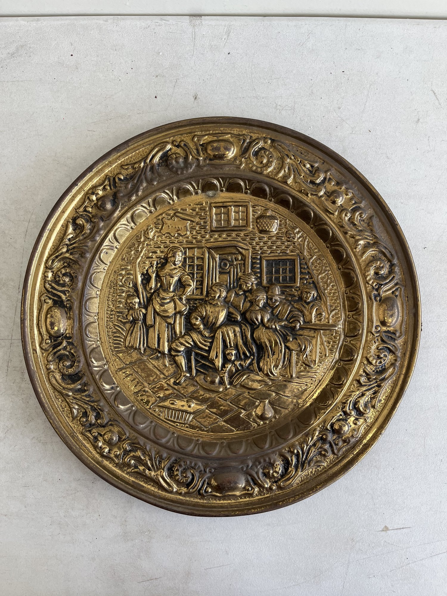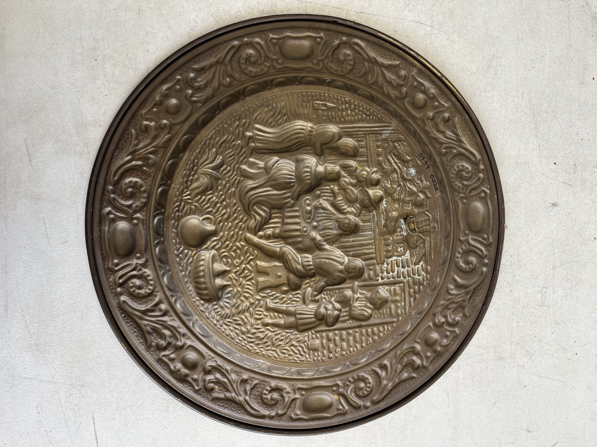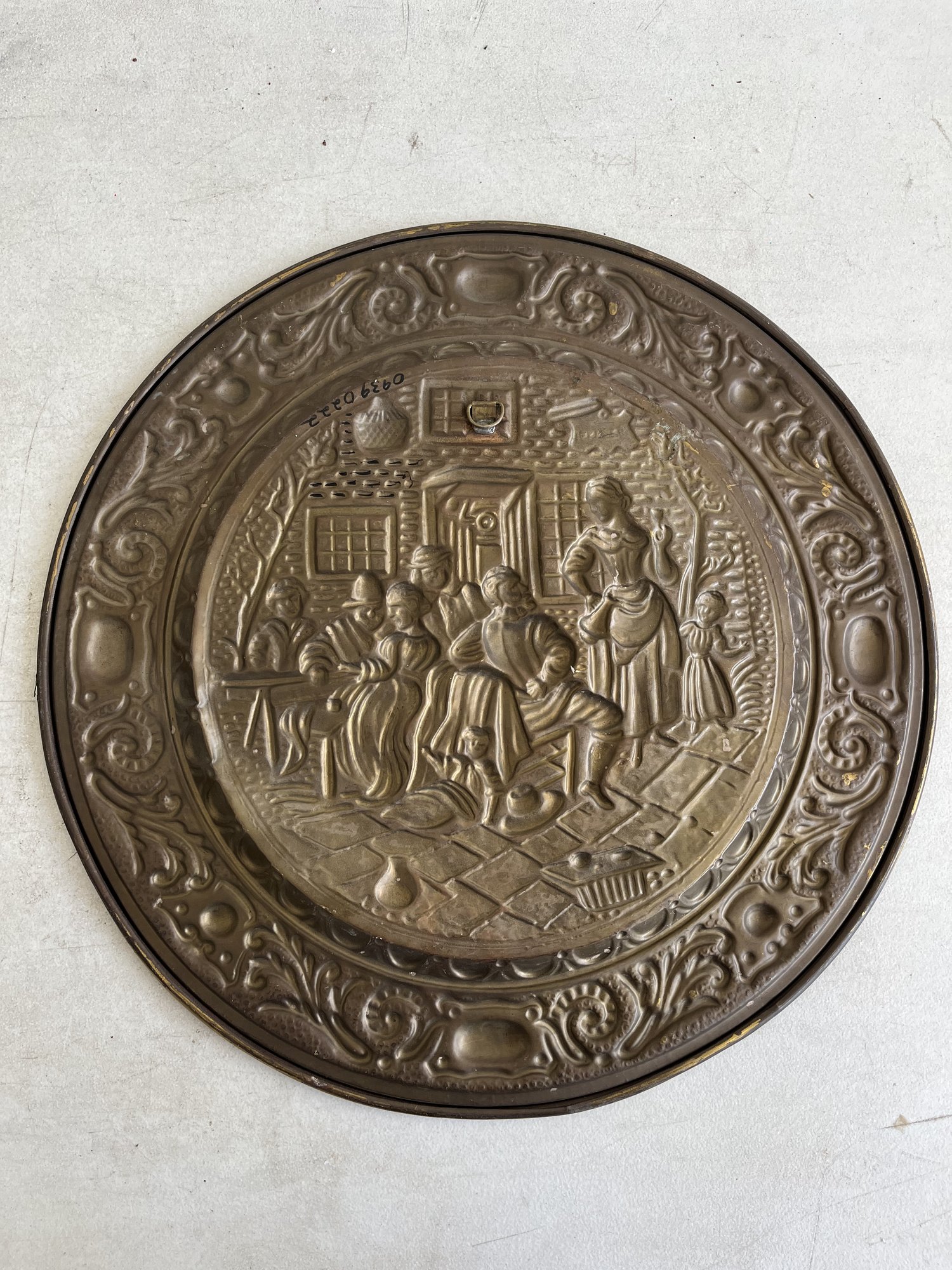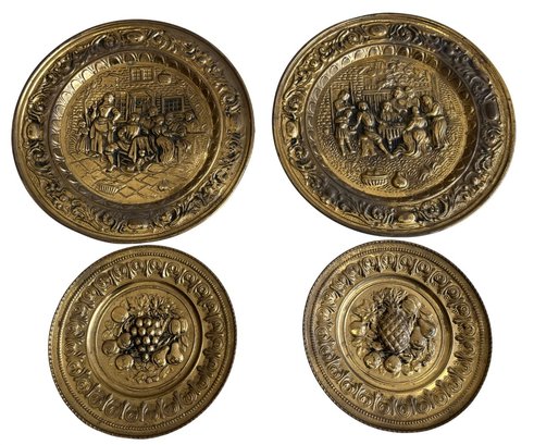 These plates are designed for wall display and come with integrated hangers on the back. They were a popular decorative item in the 1950s and 60s, ideal for adding a touch of classic English cottage, traditional, or Tudor-style décor to a kitchen, dining room, or bar area.