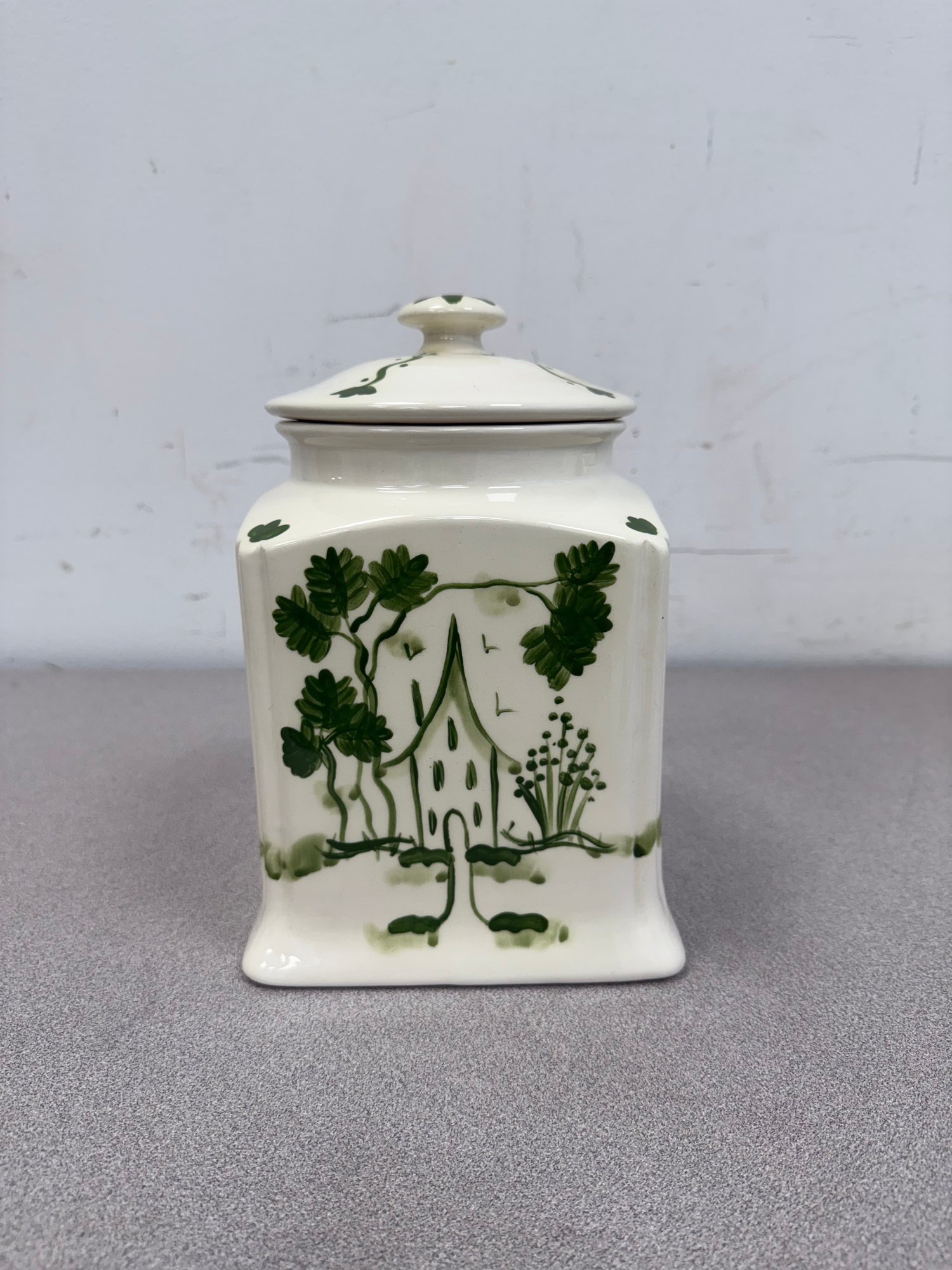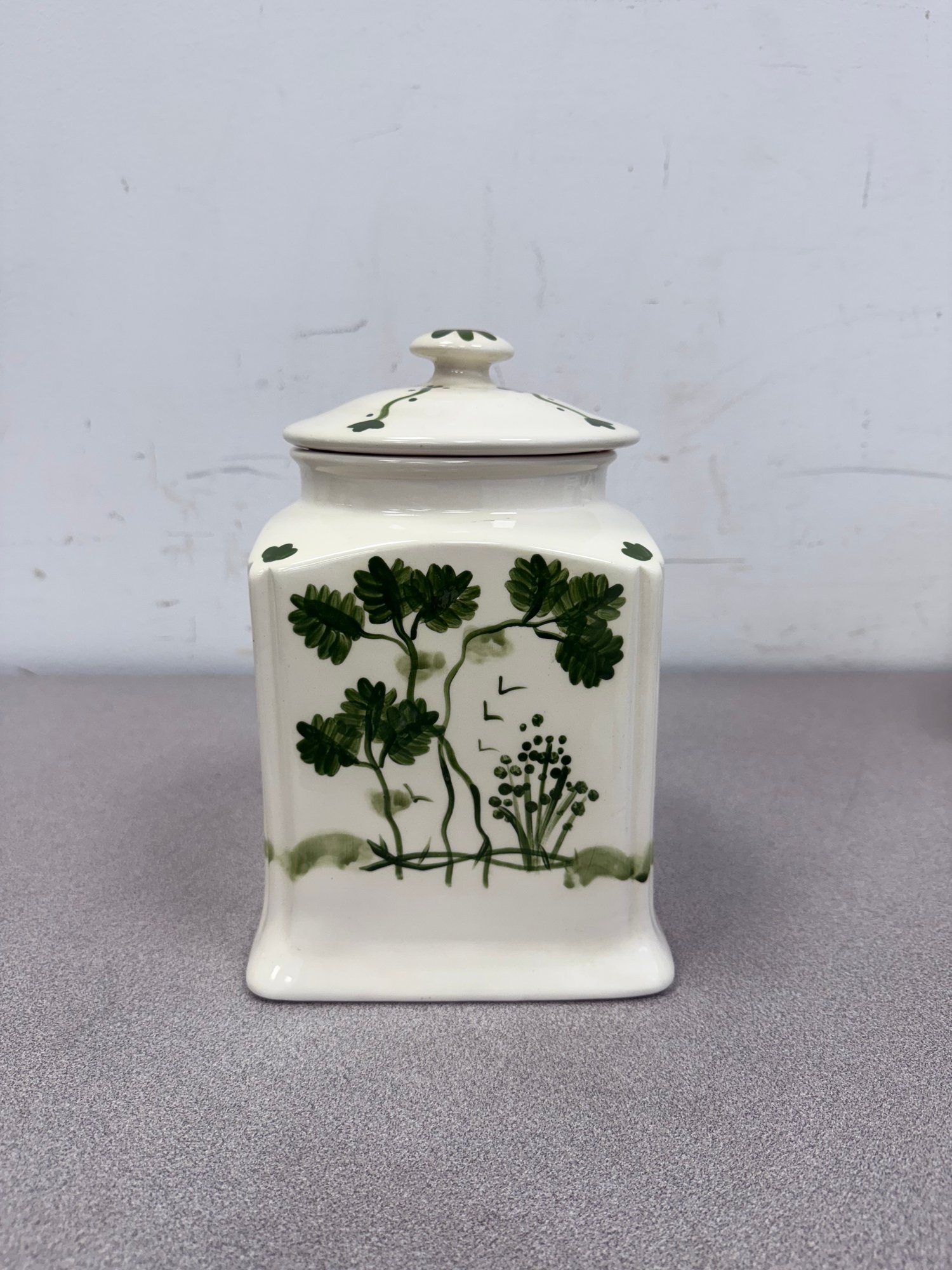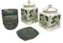 This charming ensemble presents a complete set of vintage-inspired kitchen storage and serving items, blending classic ceramic craftsmanship with unique, textured dinnerware.