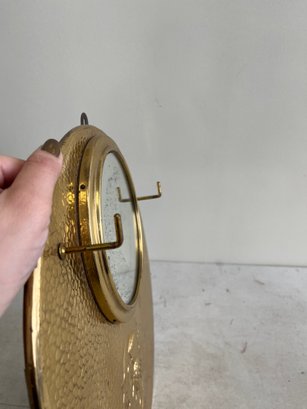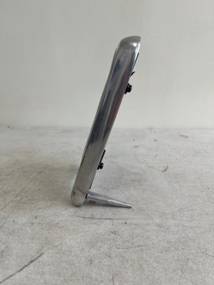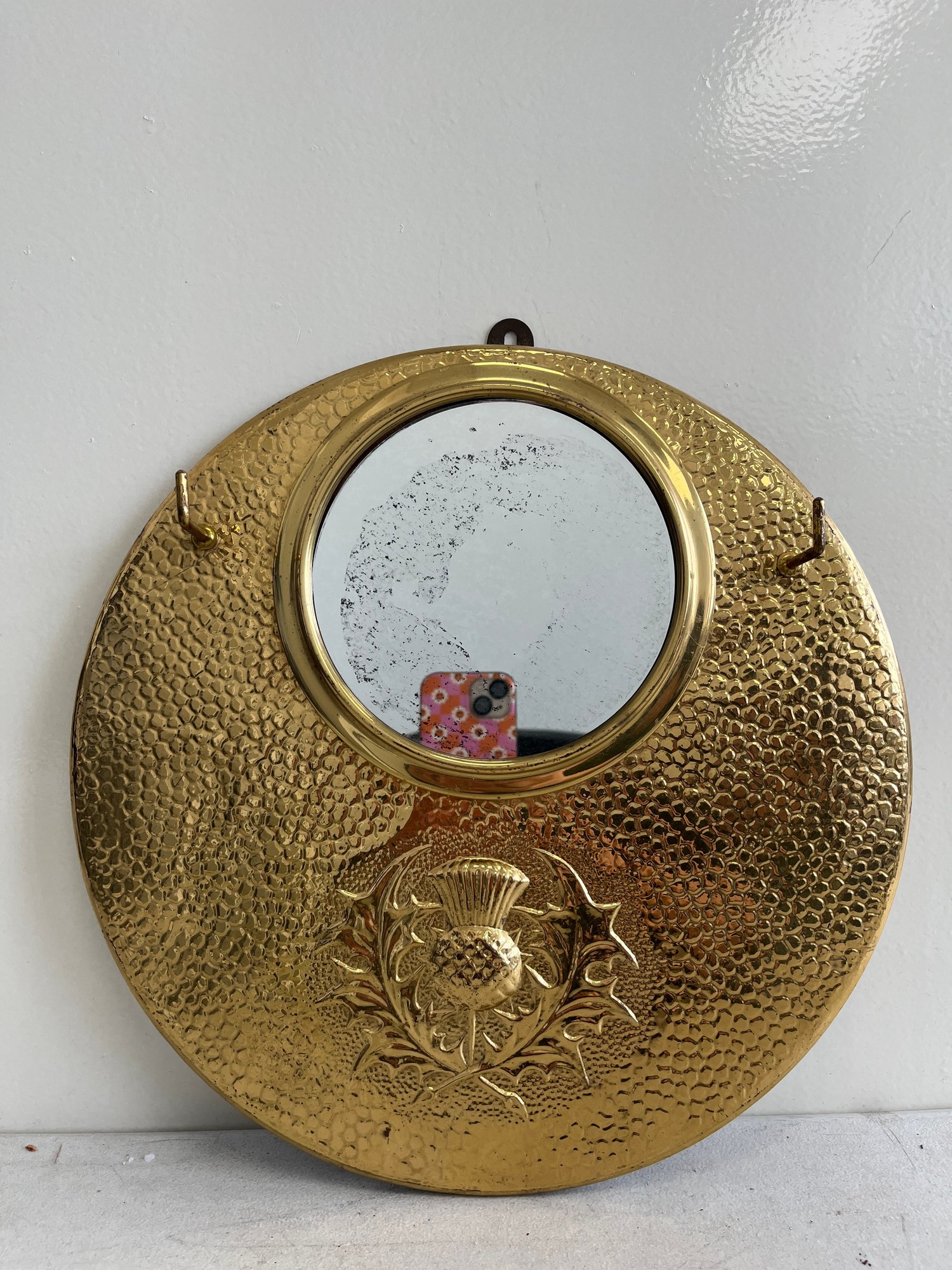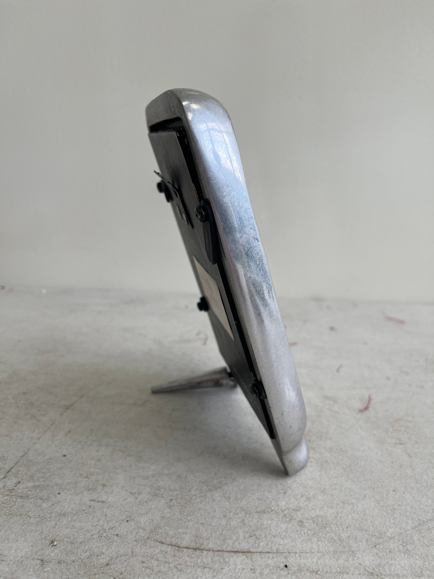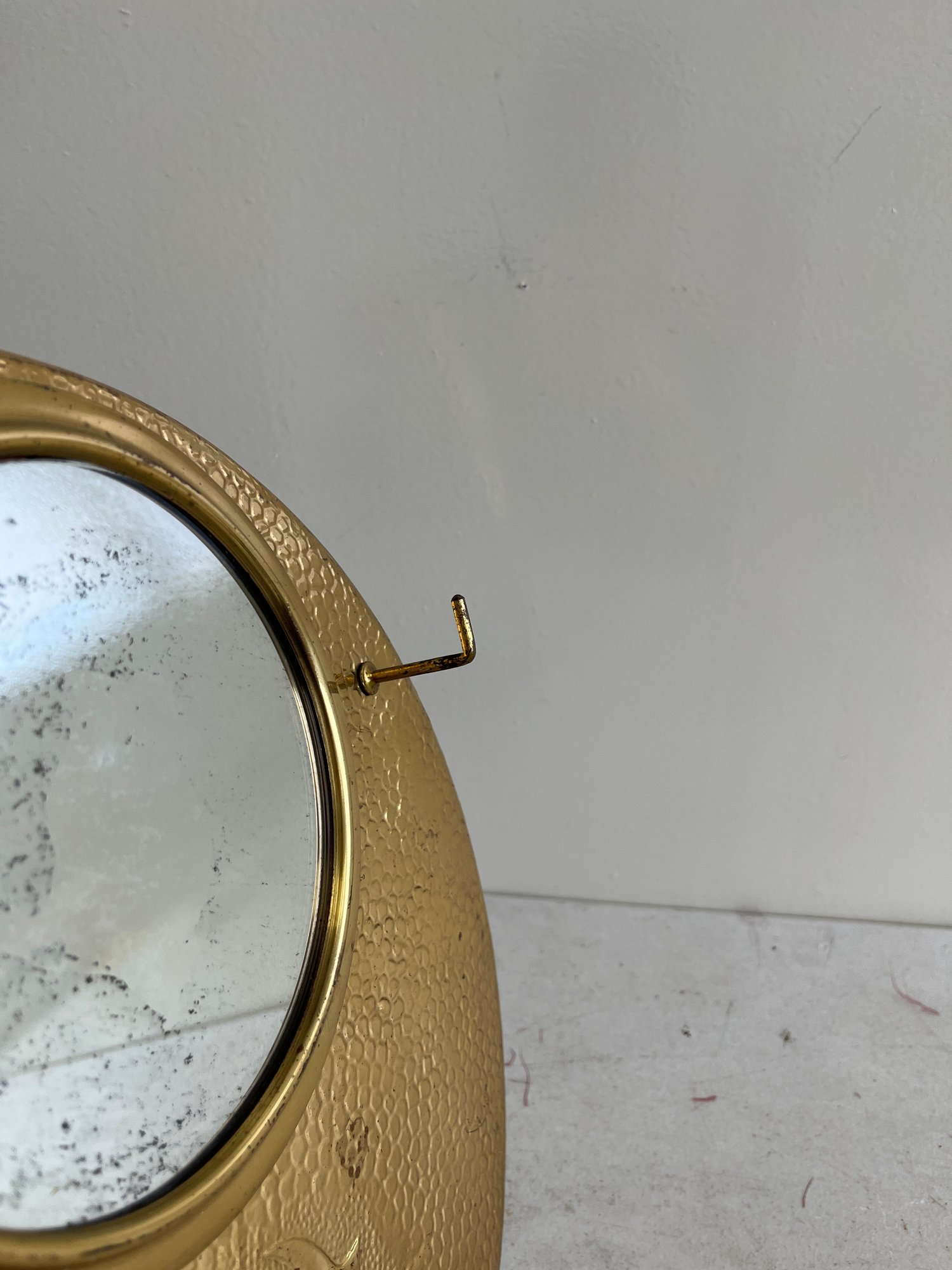 A curated lot featuring two distinct examples of 20th-century decorative mirrors, including a significant Arts & Crafts-style wall mirror and a sleek Mid-Century Modern vanity mirror. This lot provides excellent examples of contrasting period design aesthetics.