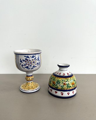 Vintage Hand Painted Deruta Goblet & Vase, Signed Michela (2-piece Set)