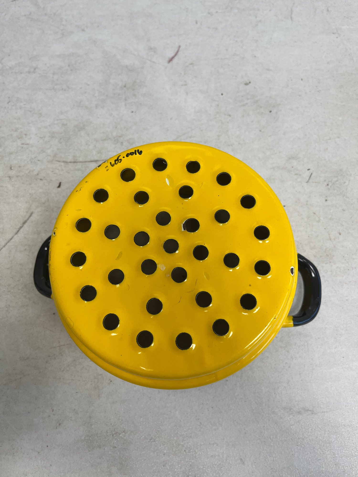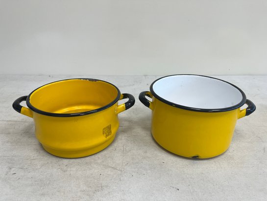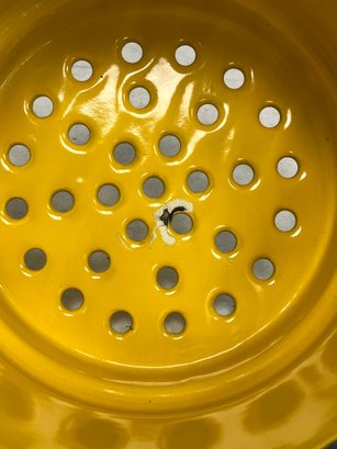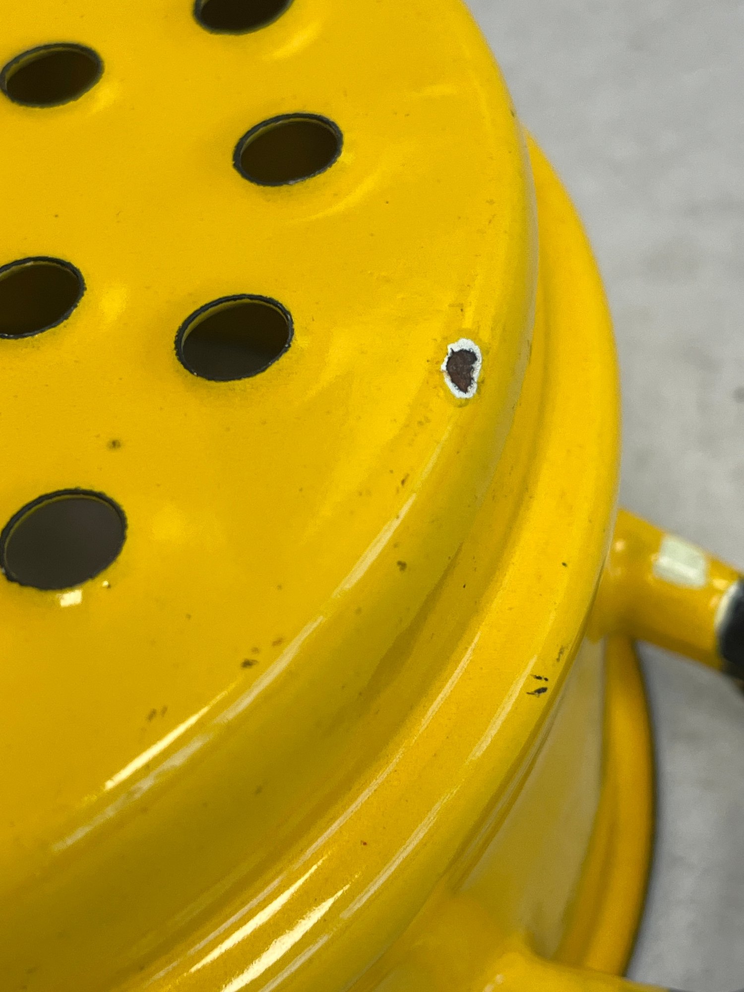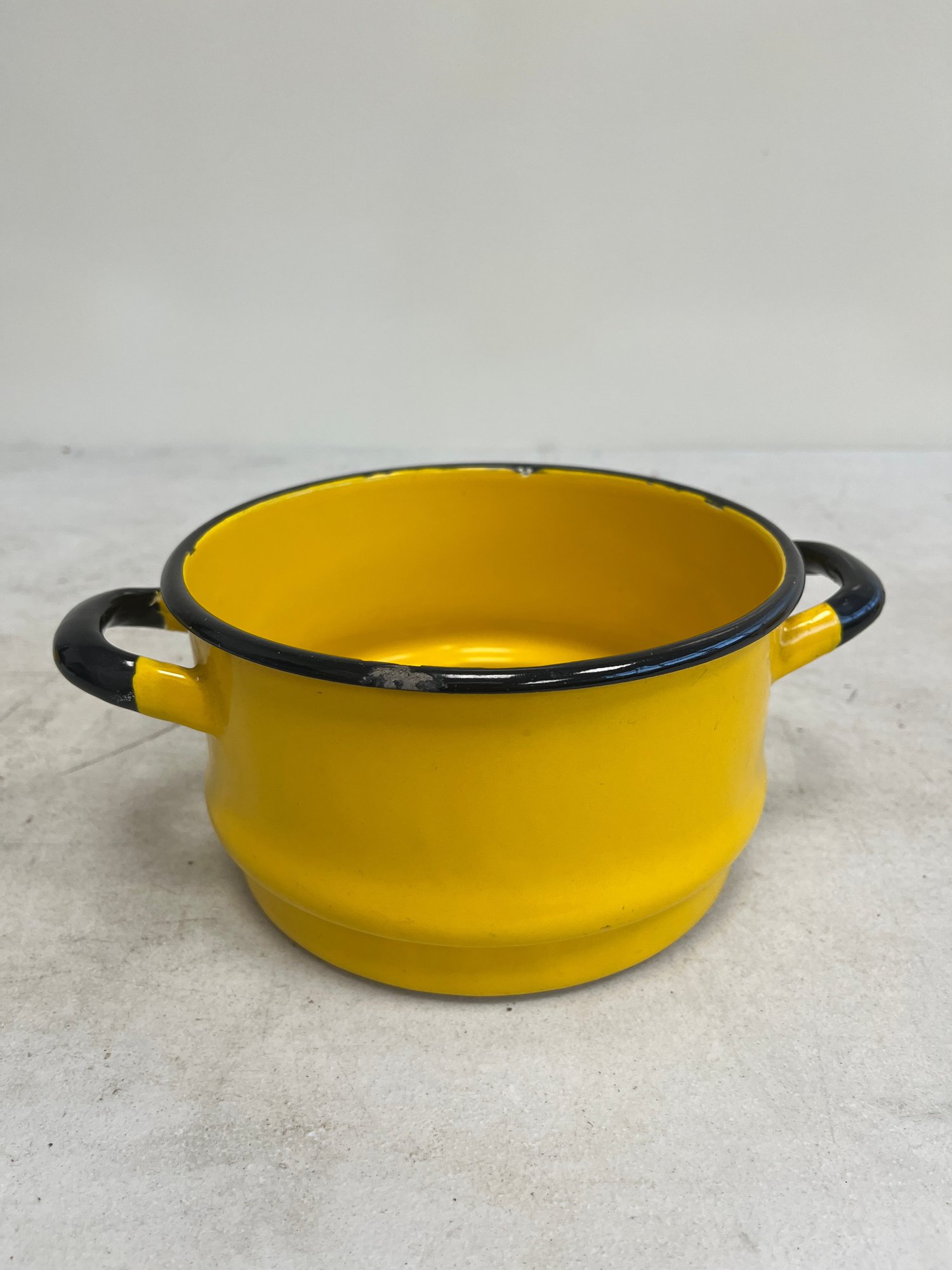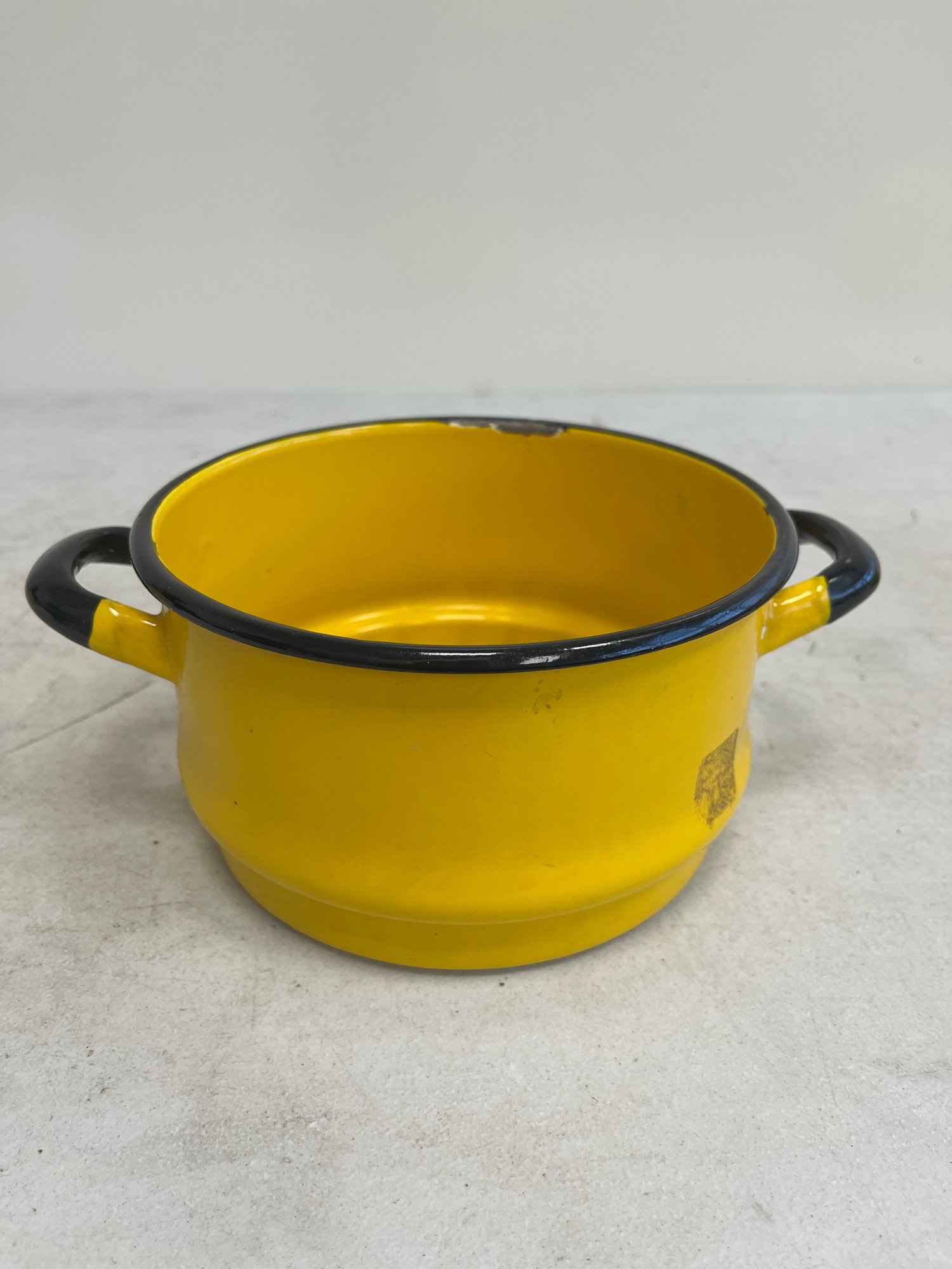Add a pop of vibrant, retro color and functional style to your kitchen with this vintage Huta Silesia enamelware stacking steamer and Japanese "bubble" kettle. This type of enamelware was popular due to its durability, light weight, and ease of cleaning compared to other options of its era.