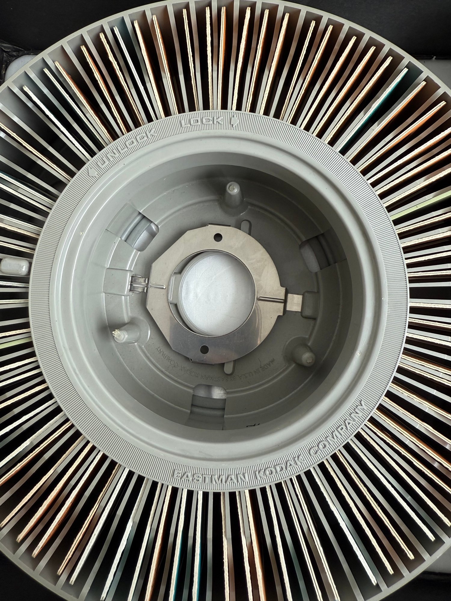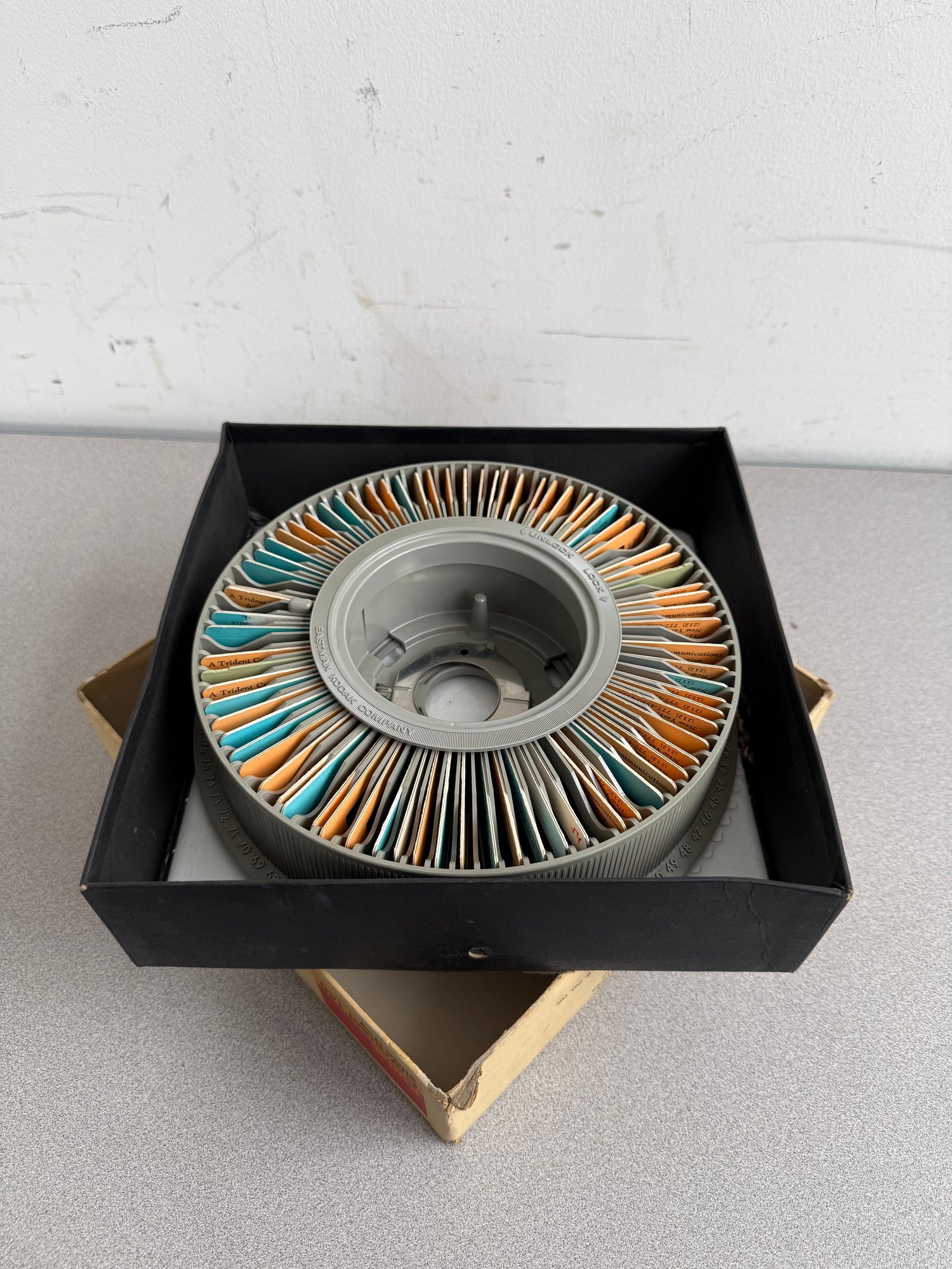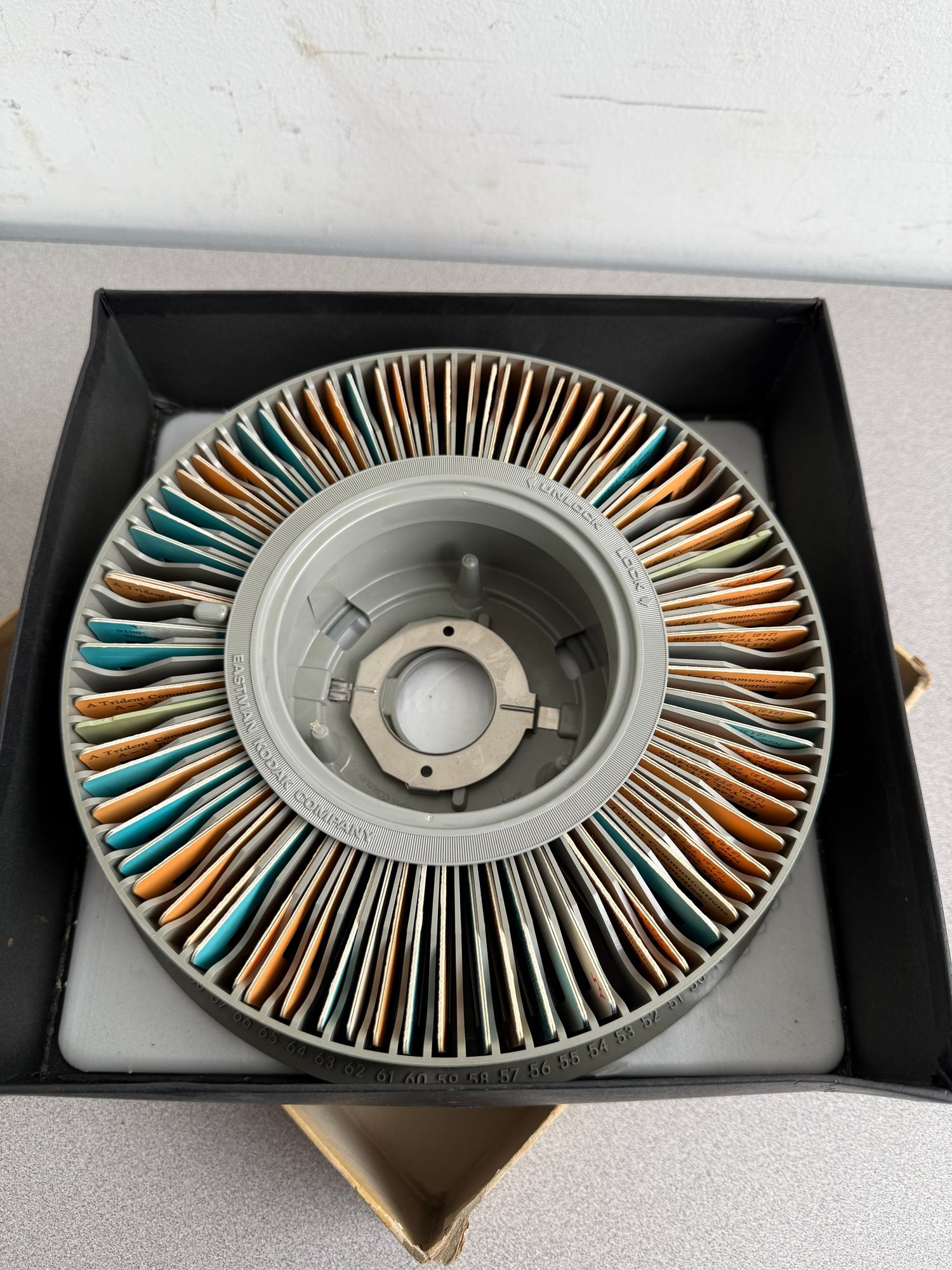 Designed for professional presentations and archival storage, these circular trays are essential components of the world-renowned Kodak Carousel and Ektagraphic slide projection system.