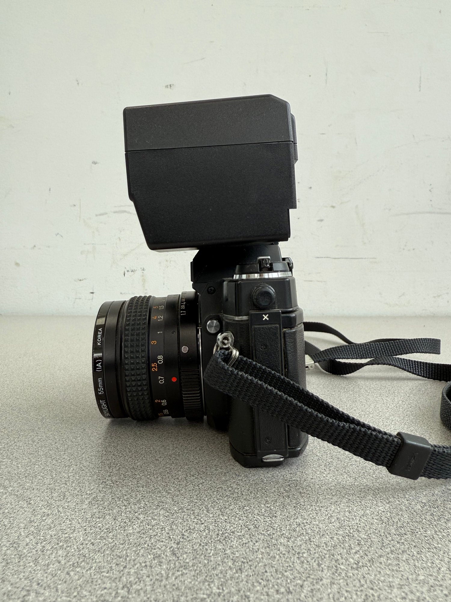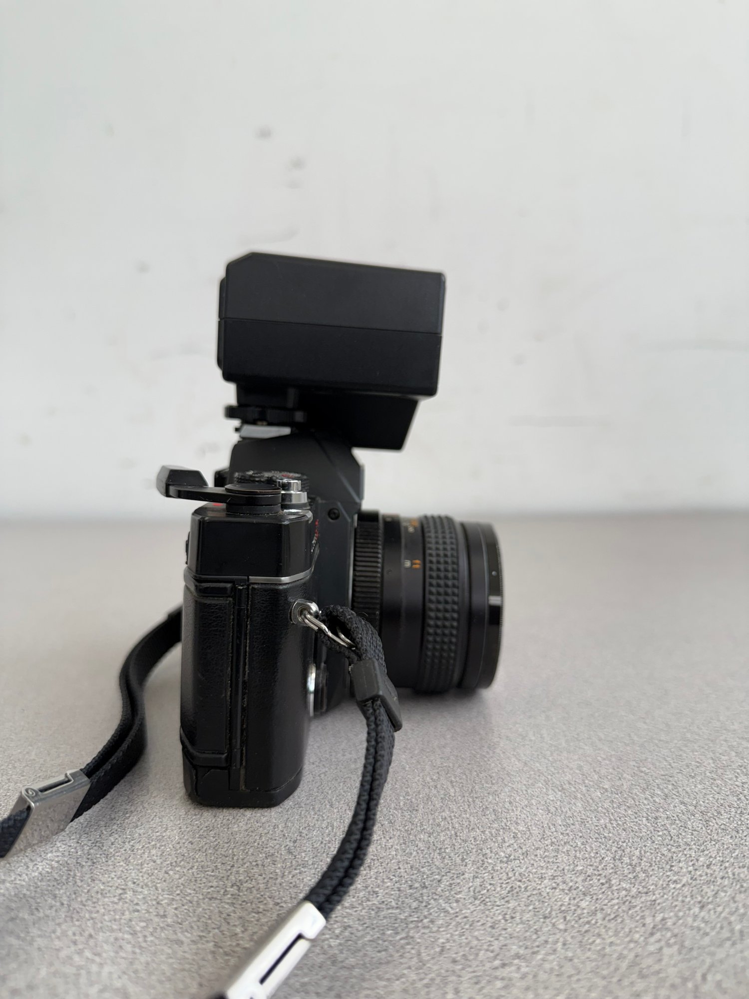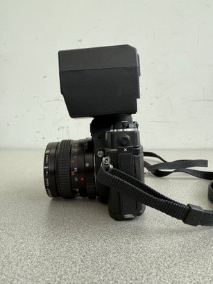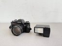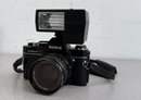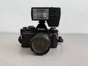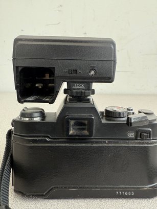 A robust and compact 35mm SLR ensemble from the late 1970s, combining mechanical reliability with advanced electronic flash capabilities.