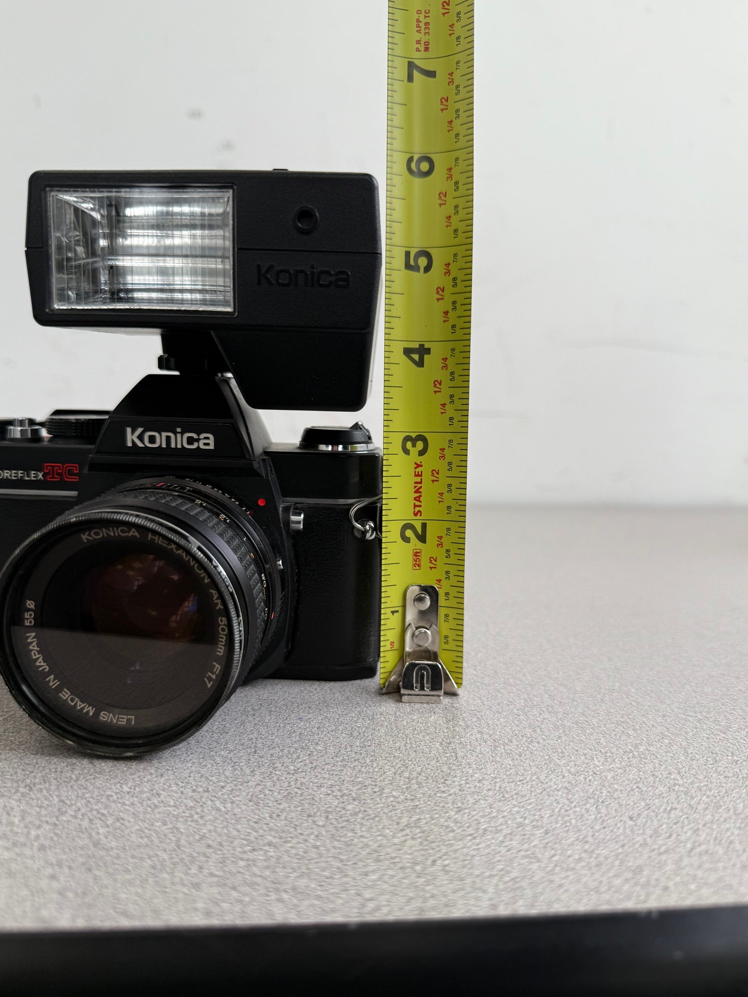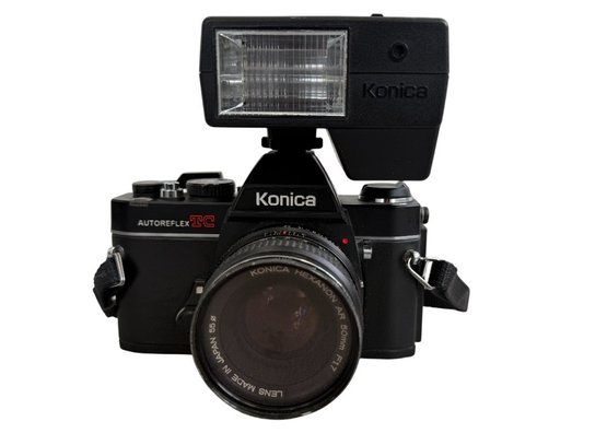The Konica Autoreflex TC uses standard 35mm film. It is compatible with all brands of 35mm color and black-and-white film, supporting speeds from ISO 25 to 1600 for its internal light meter.