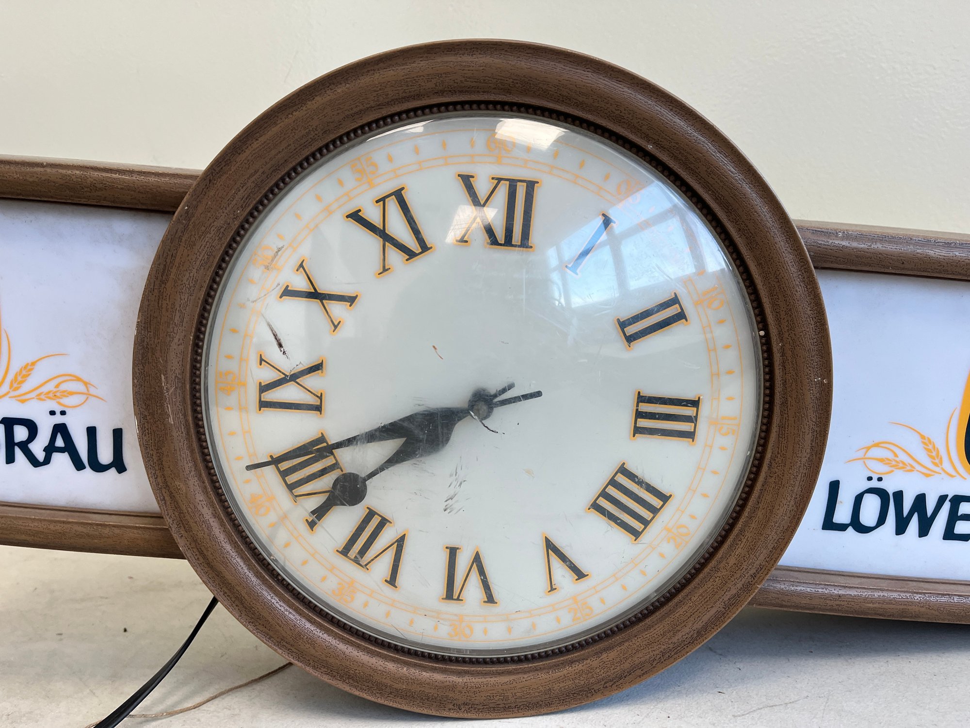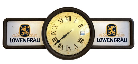 Bring the classic ambiance of a traditional German tavern to your space with this vintage Löwenbräu illuminated bar clock. A perfect centerpiece for any home bar or collection of breweriana, this vintage piece combines functional timekeeping with iconic branding.