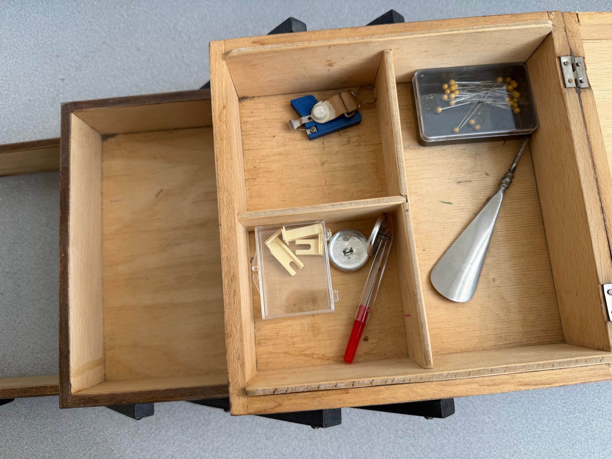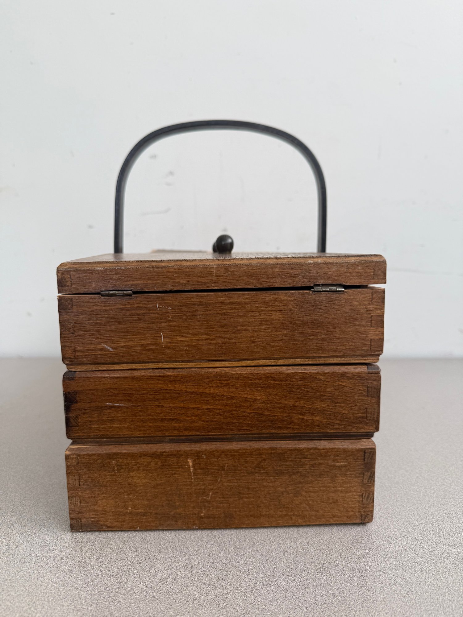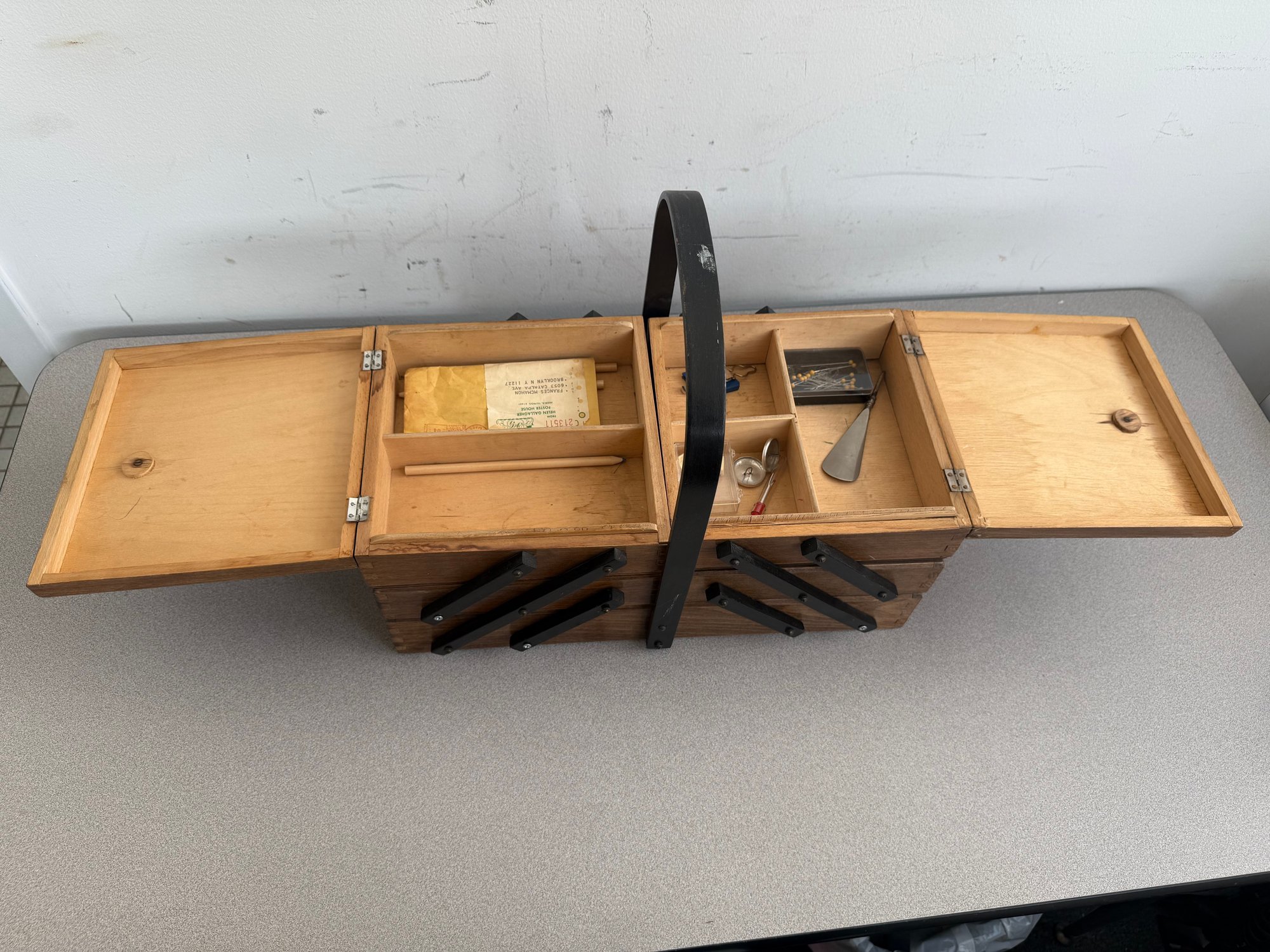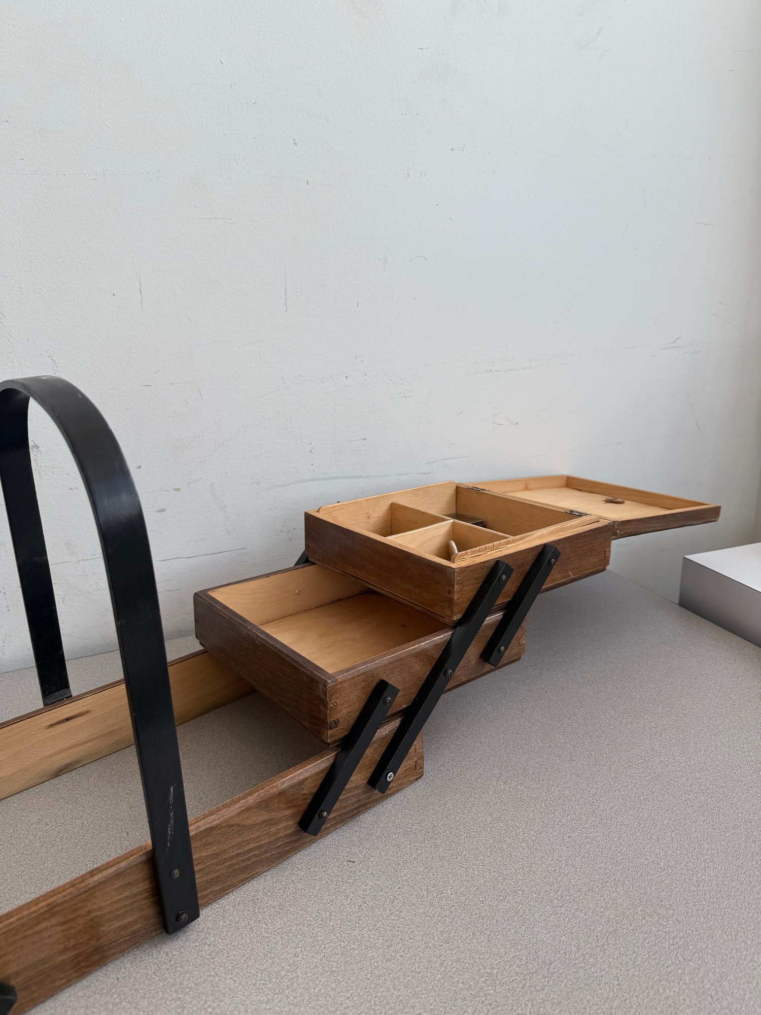 This classic is a prime example of mid-century functional design, often referred to as an accordion or concertina sewing box. Combining retro aesthetics with practical utility, it remains a sought-after piece for craft enthusiasts and vintage collectors alike.