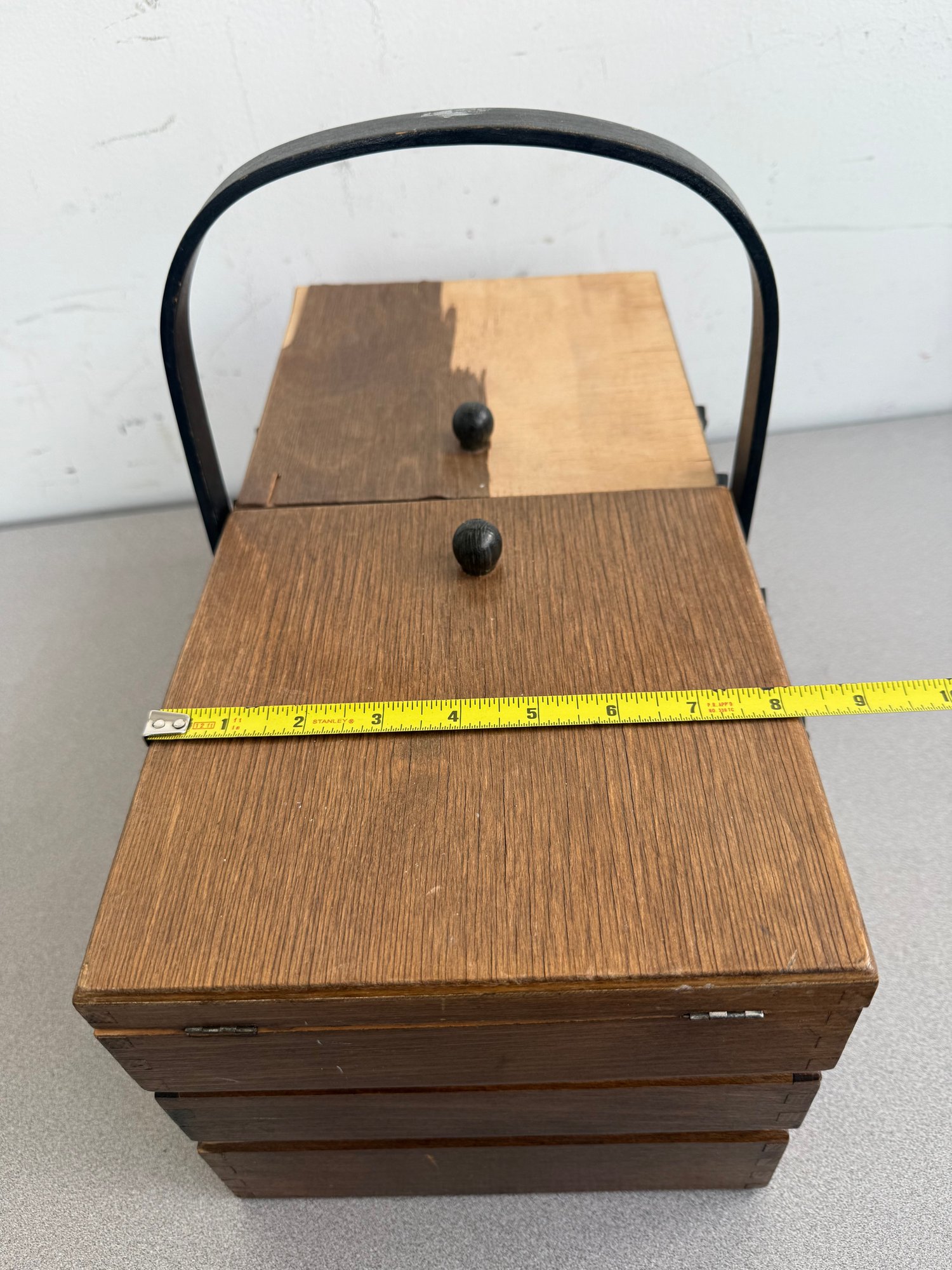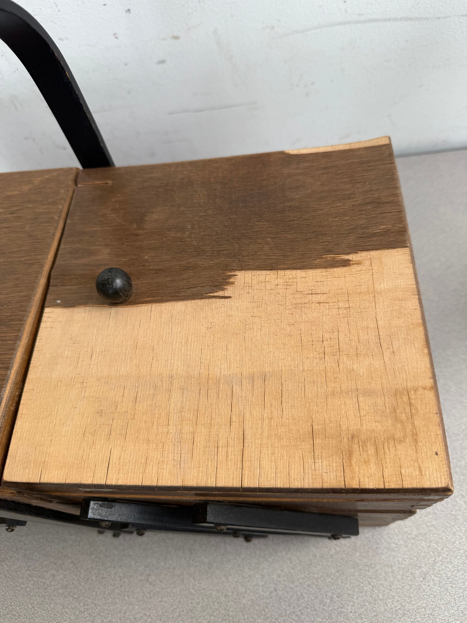 Some areas of the wood are peeling off or unstable, though this item is still functional. Please review all photos and measurements prior to bidding.