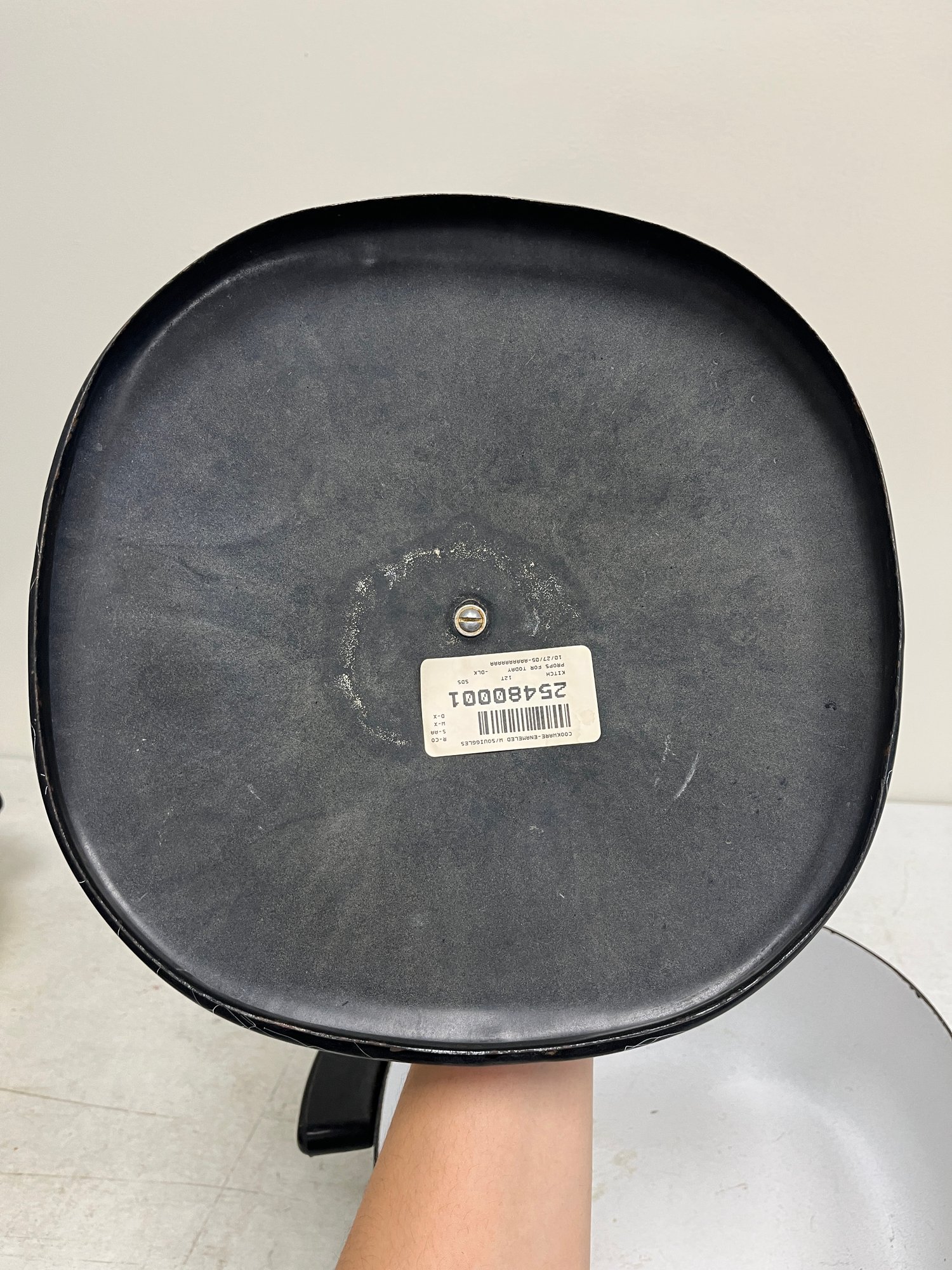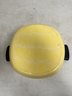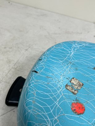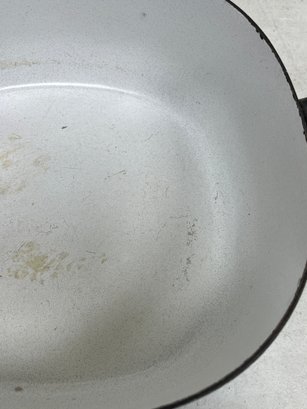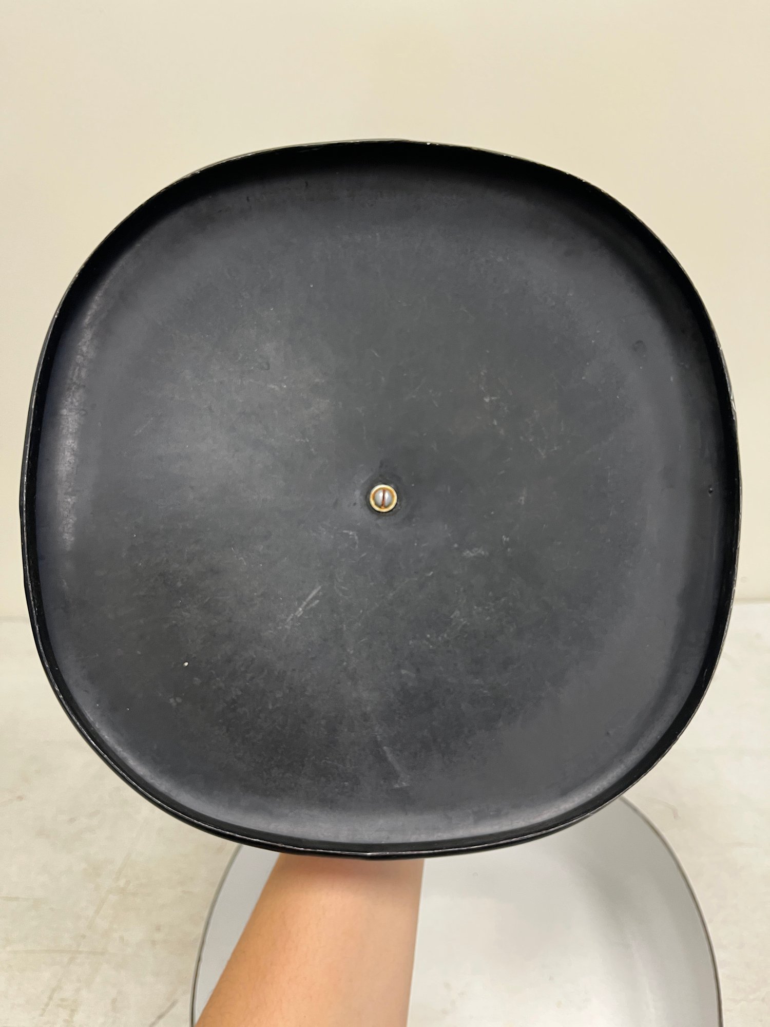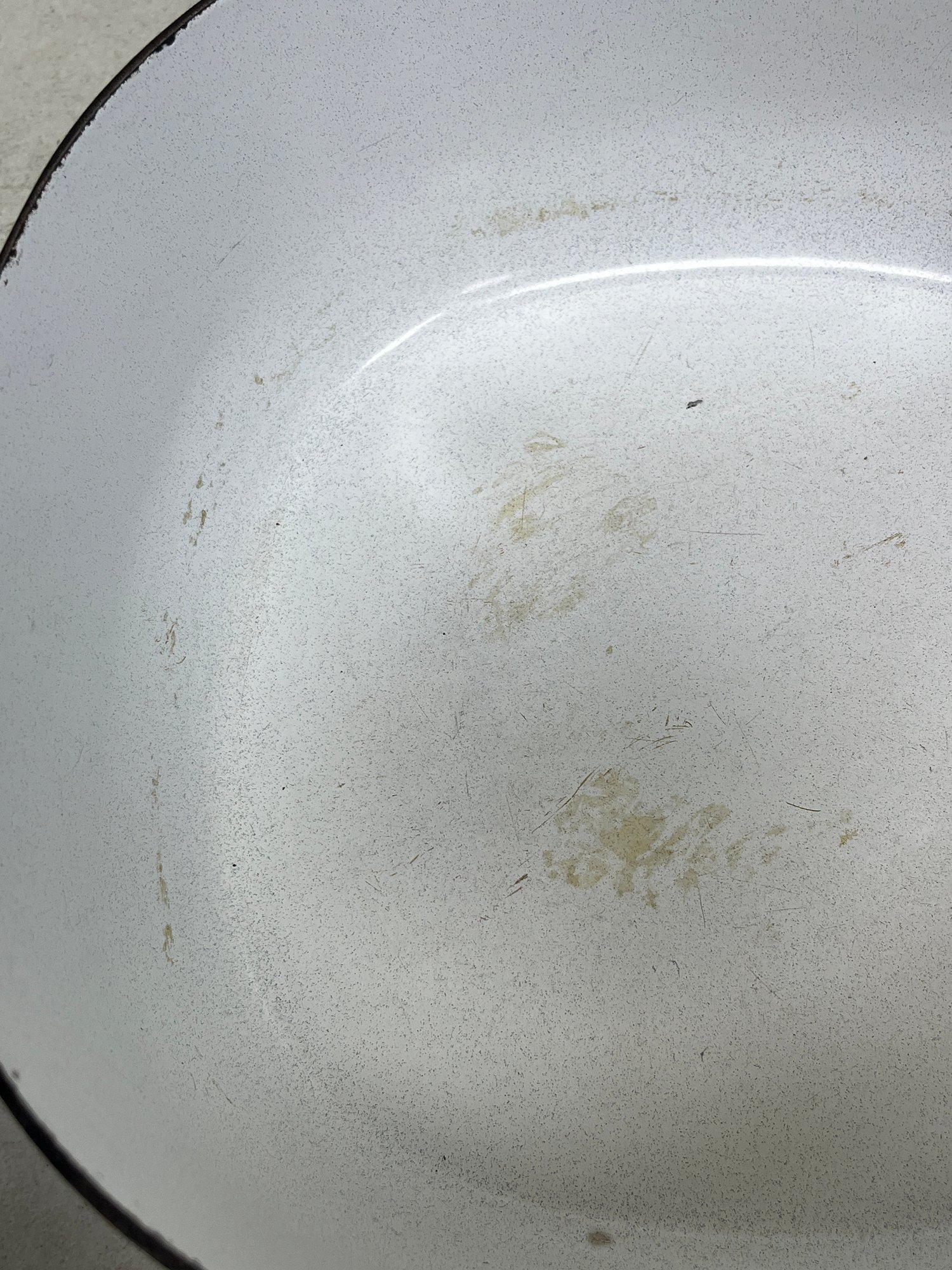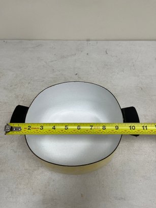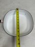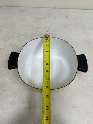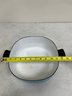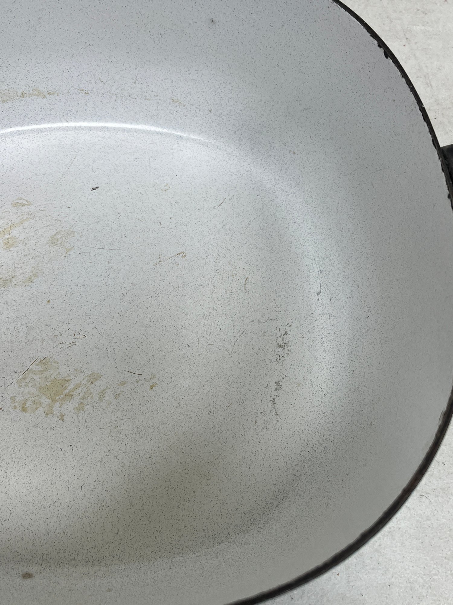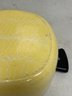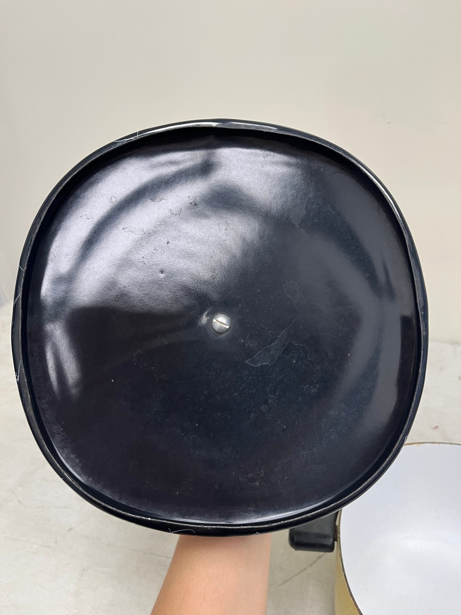 A delightful example of quintessential mid-century modern kitchenware. This rare collection from the 1950s brings the atomic era's charm and style directly to your kitchen. Each pot boasts a vibrant, high-gloss enamel finish, decorated with the signature abstract white "spaghetti" or "drizzle" pattern that makes this line instantly recognizable. The set features striking color combinations: a cheerful lemon yellow, a soft vintage pink, and a bold robin's egg blue, all complemented by matching black lids featuring the same iconic white pattern. This kitschy, fun design adds a touch of nostalgia to any retro kitchen. This lot includes (2) large pots and (1) frying pan.