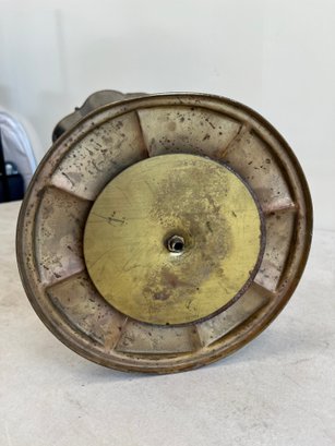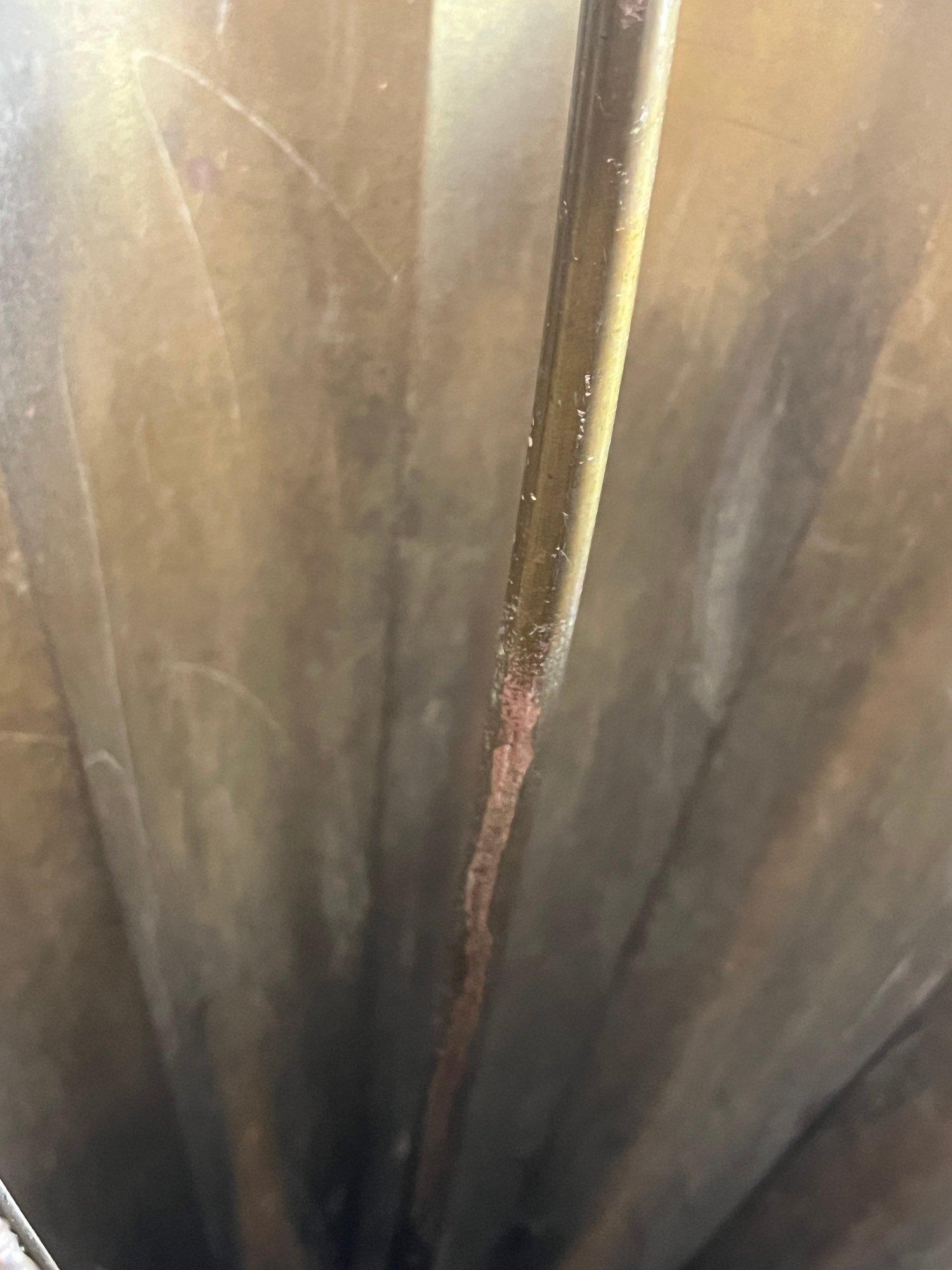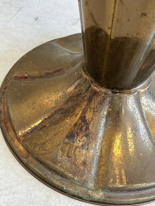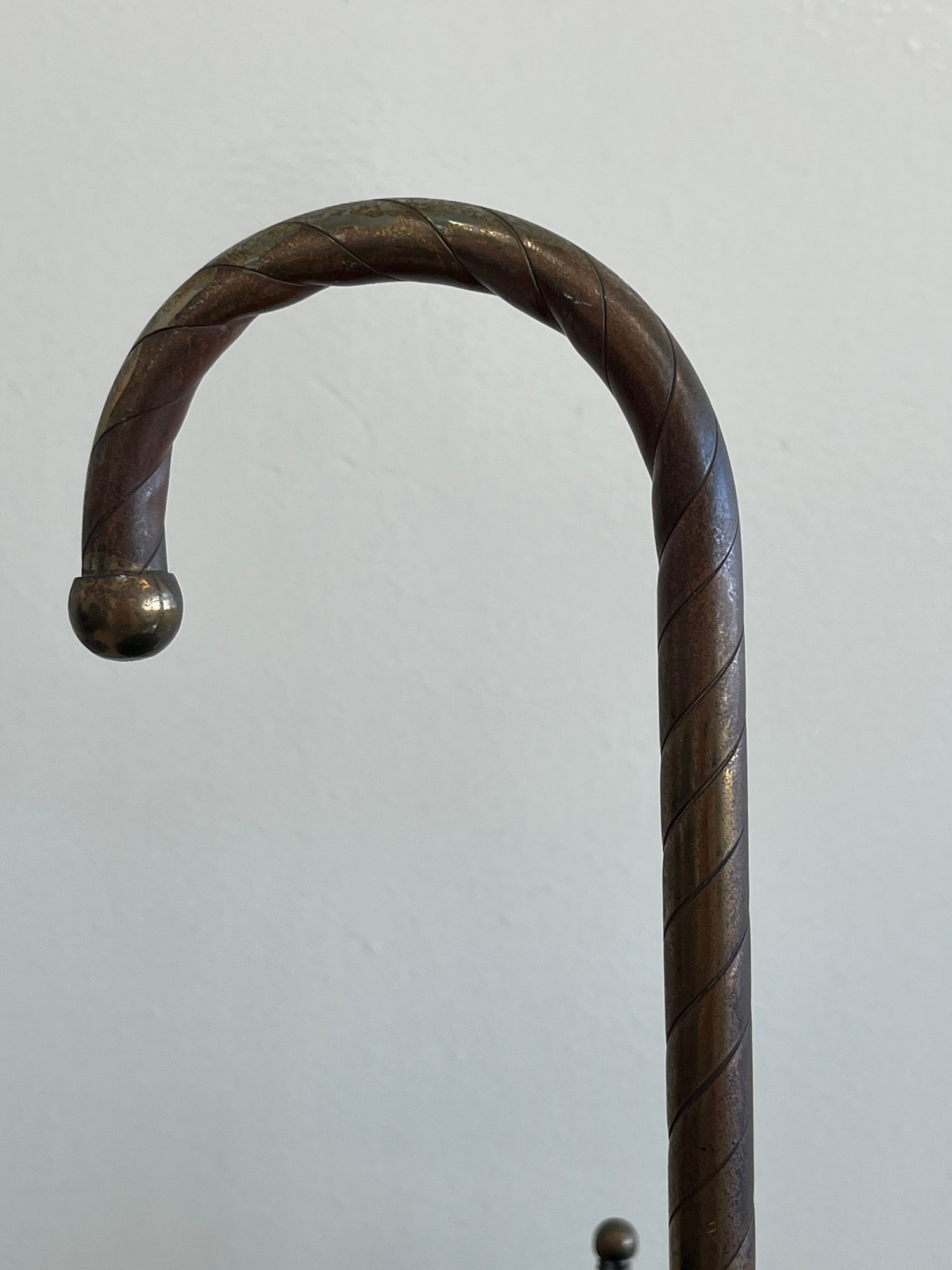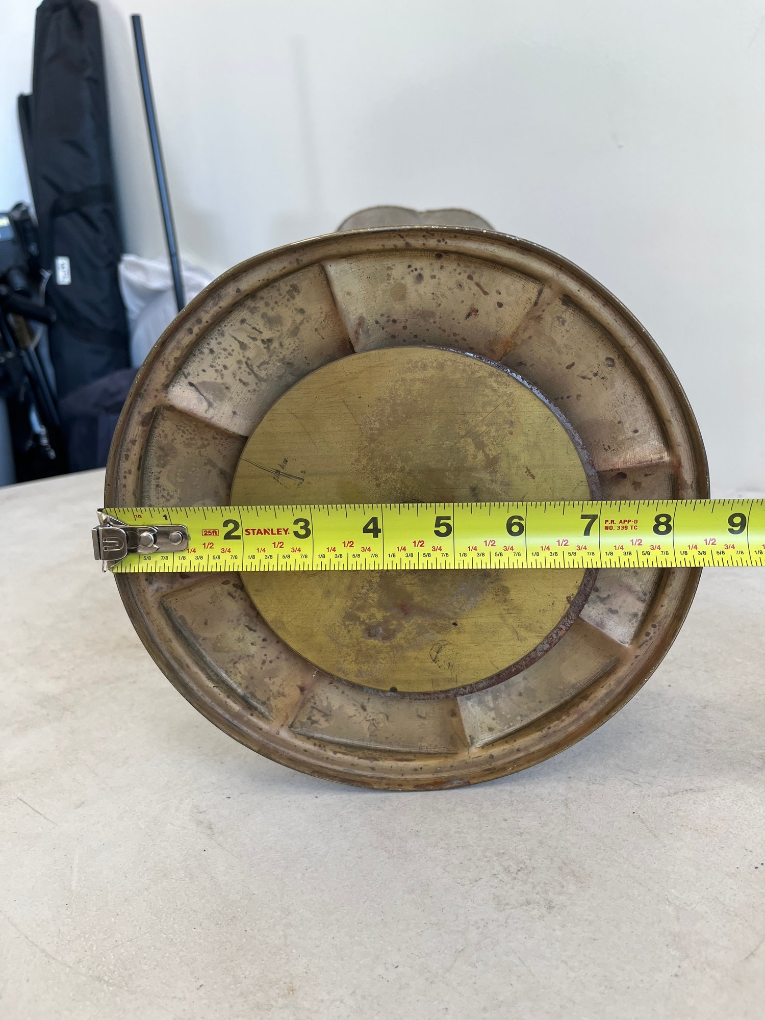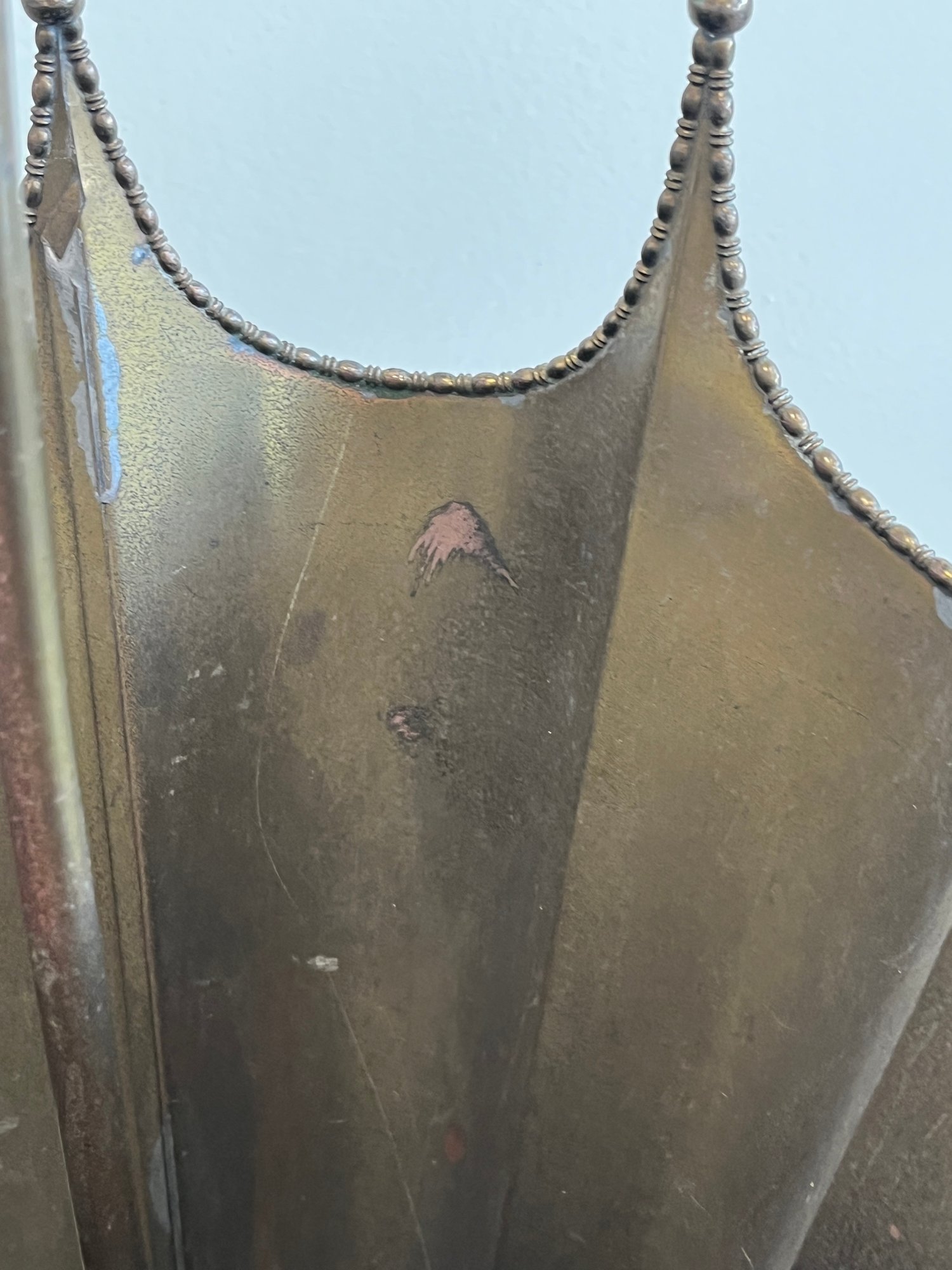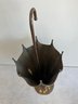 This elegant umbrella stand embodies the distinctive flair of the Mid-Century Modern and Hollywood Regency design eras. Designed to resemble an open umbrella canopy, it features a striking conical body with vertical fluting and a decorative, scalloped top rim.