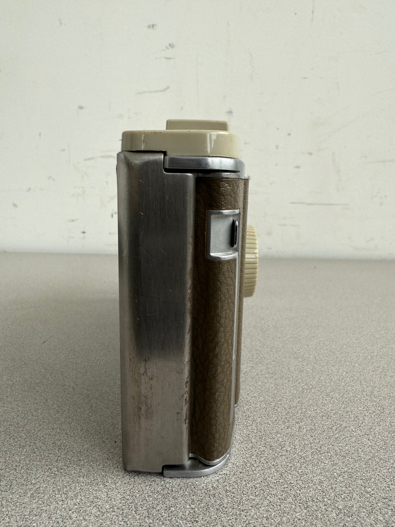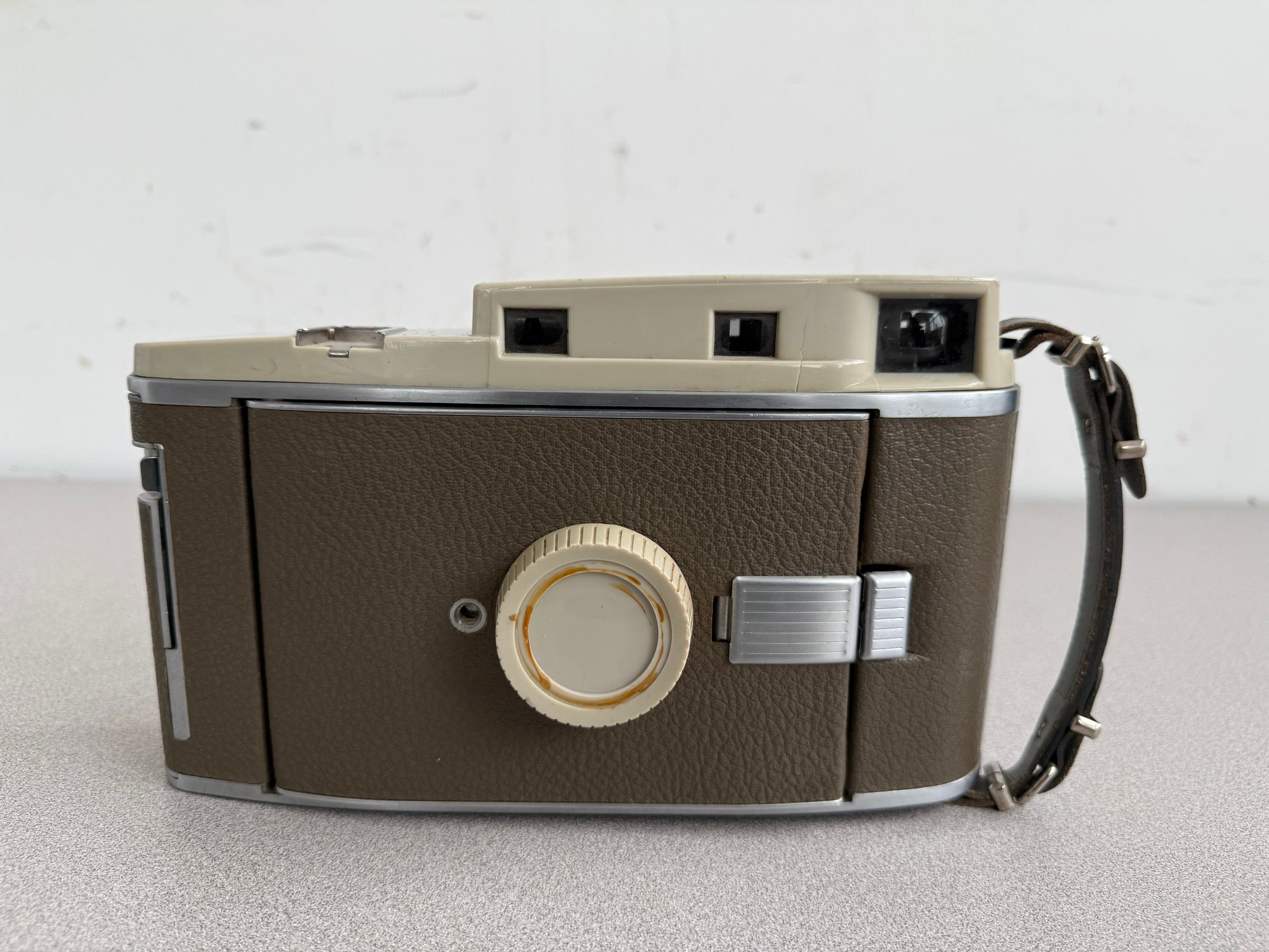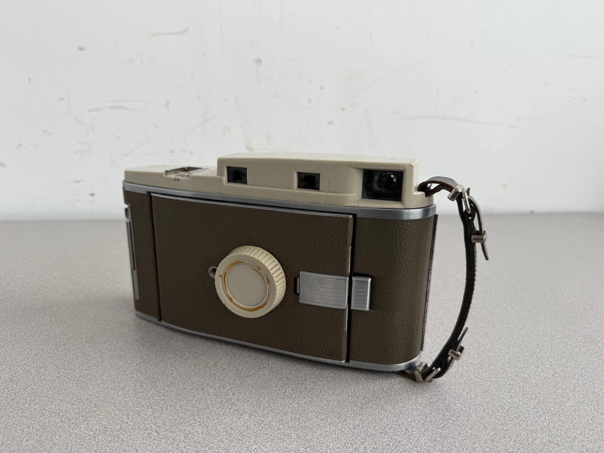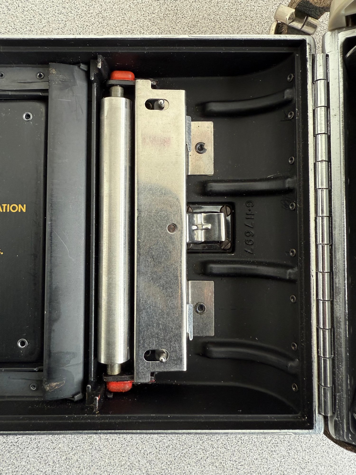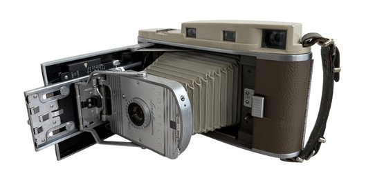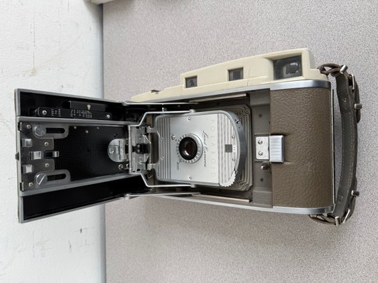 The Model 800 represents the pinnacle of mid-century innovation. Known for its robust construction and sophisticated gray-and-chrome aesthetic, this folding bellows camera was the "high-tech" essential of its era, allowing photographers to develop photos in seconds without a darkroom. This folding bellows camera features a sophisticated gray and chrome industrial design, a coupled rangefinder for precision focusing, and a durable die-cast aluminum body with a leather hand strap.