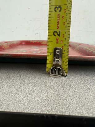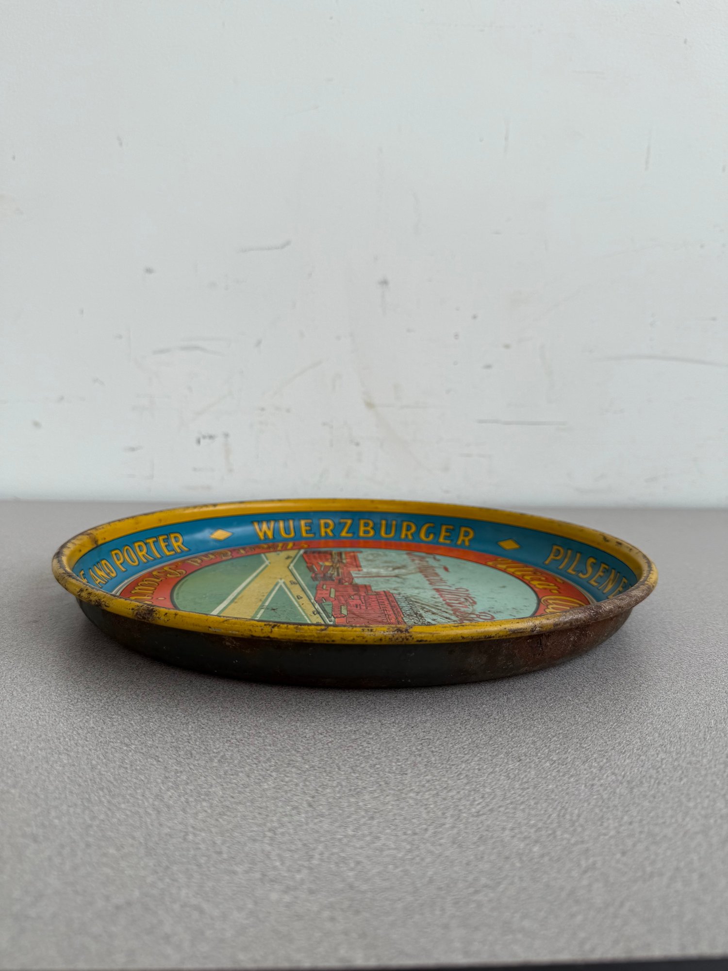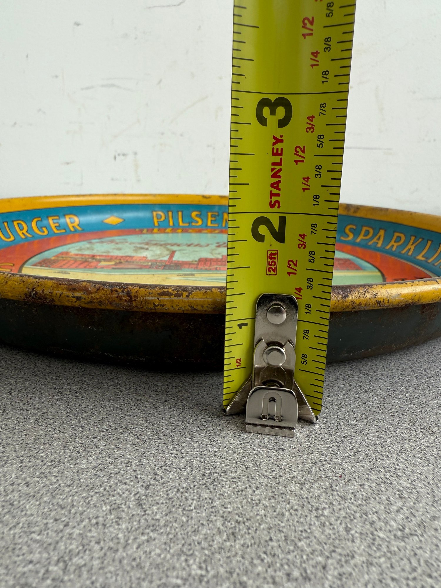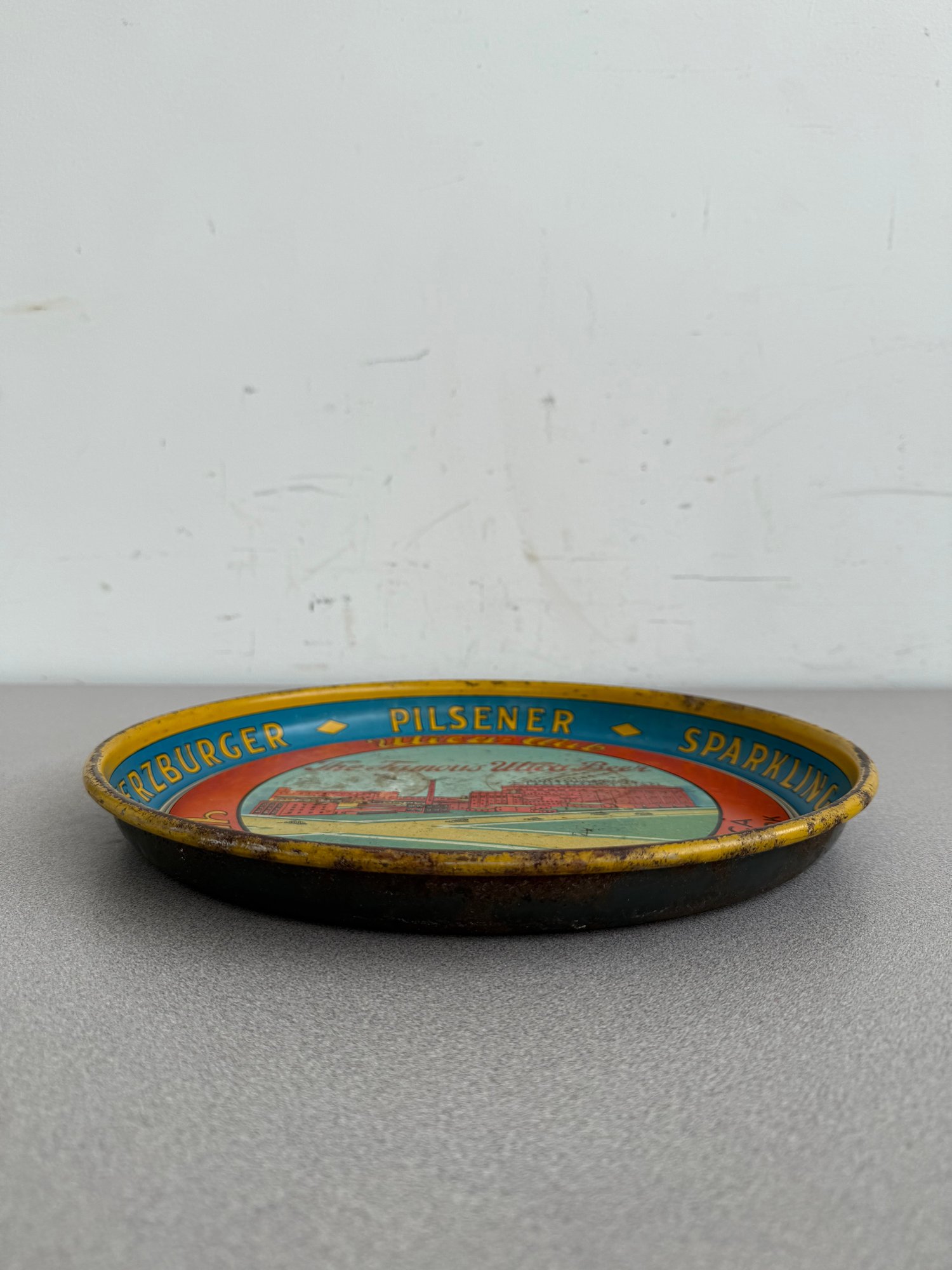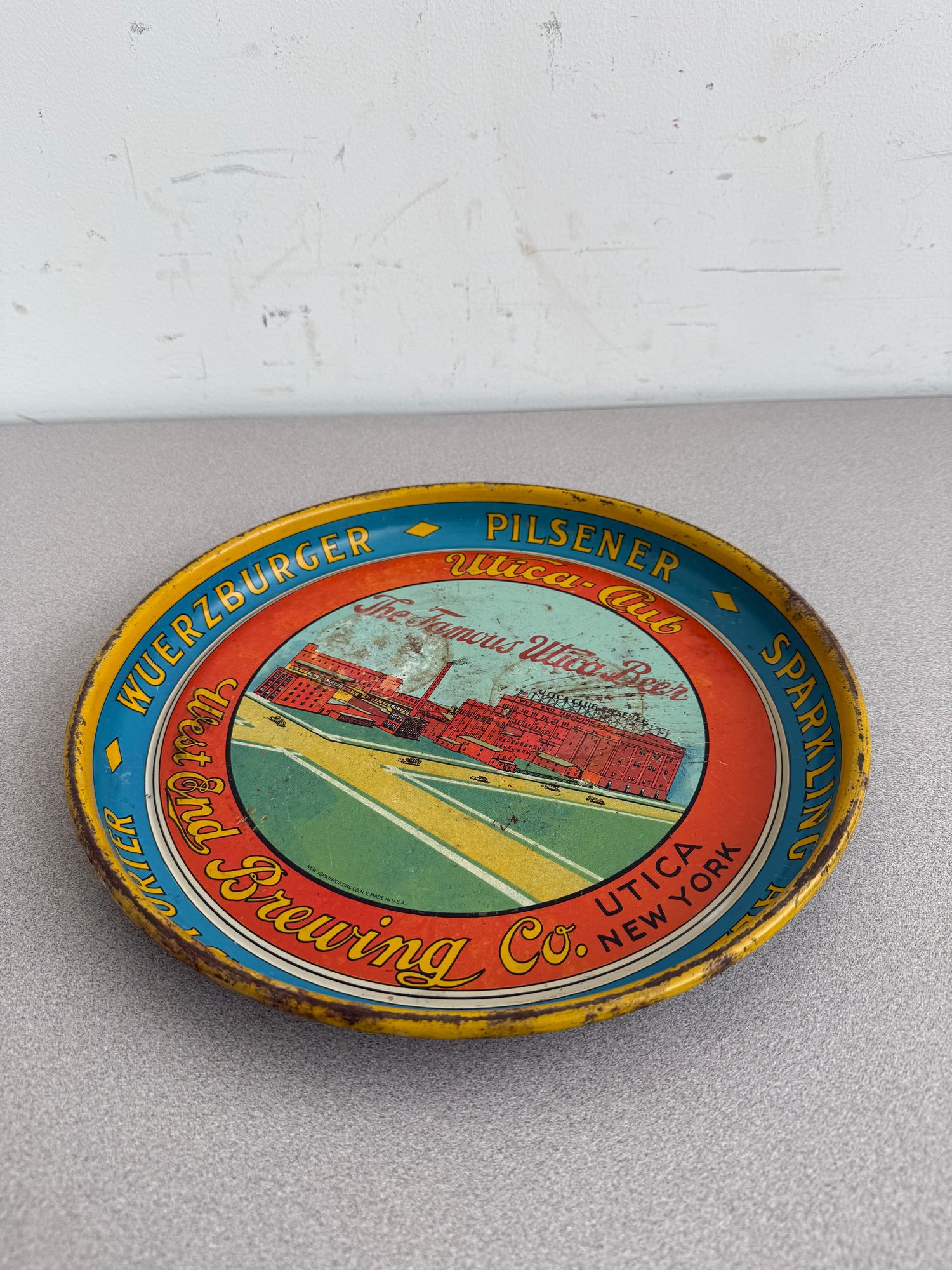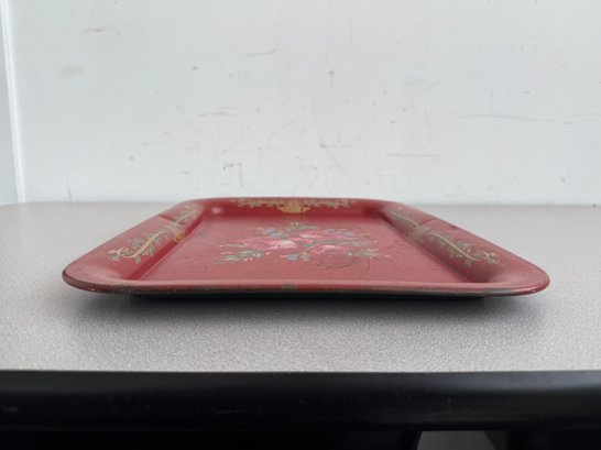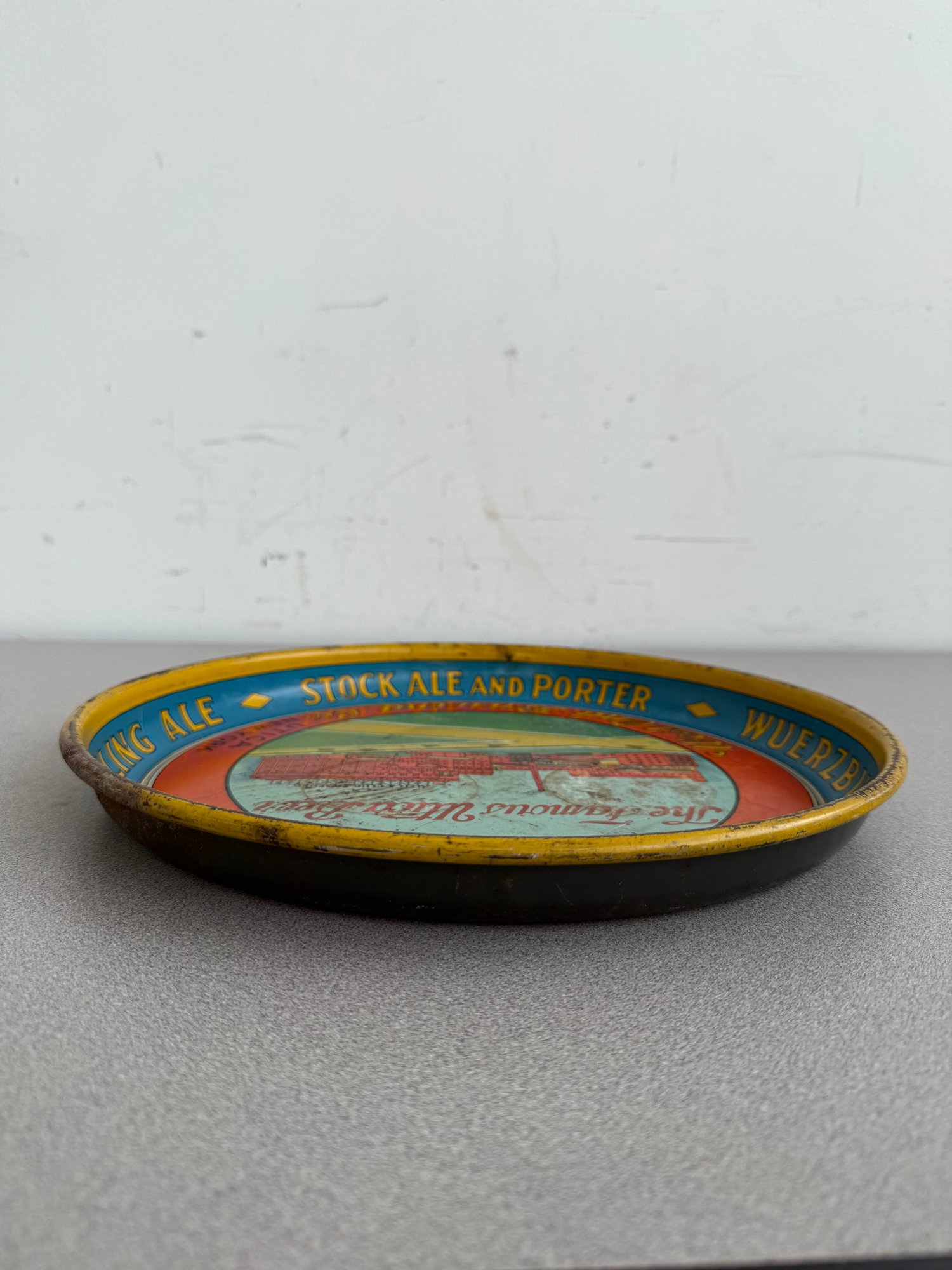 This unique lot features two distinct examples of vintage metalware: one decorative tole serving tray and one historical brewery advertising tray. Both pieces offer functional charm and collectible appeal.
