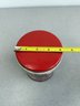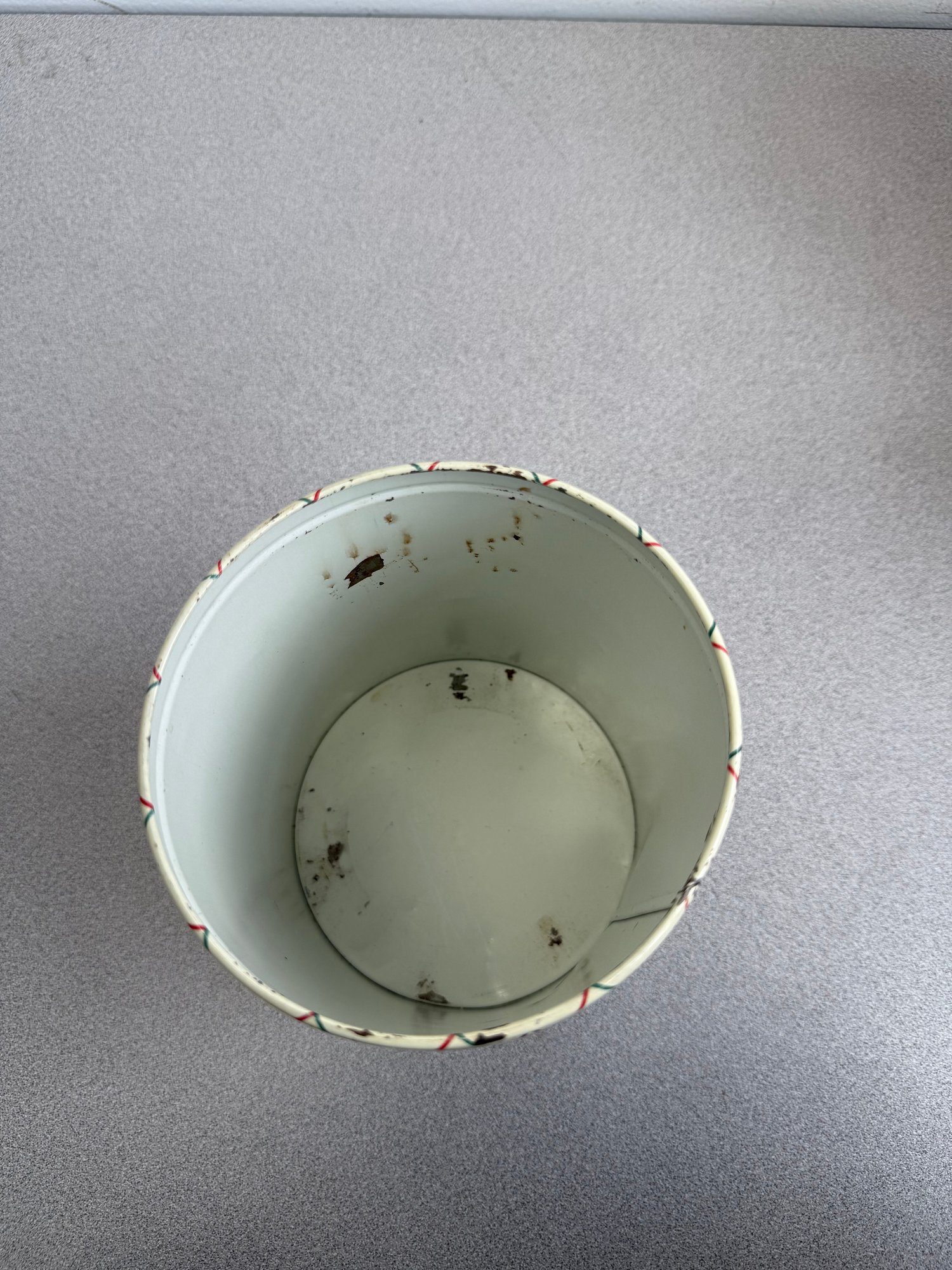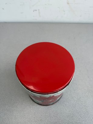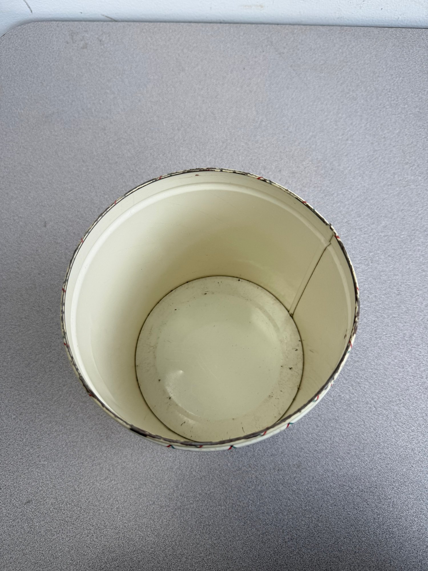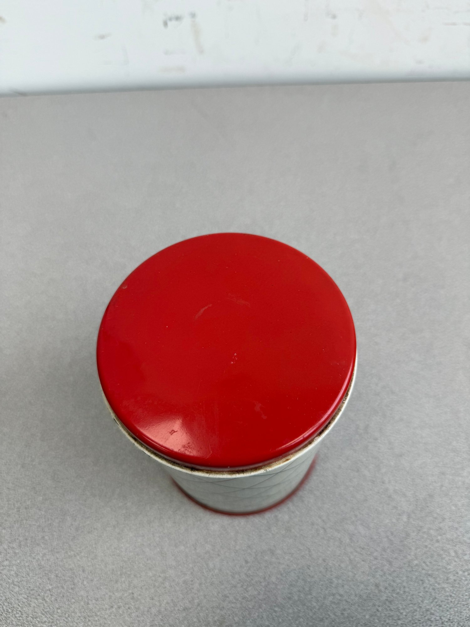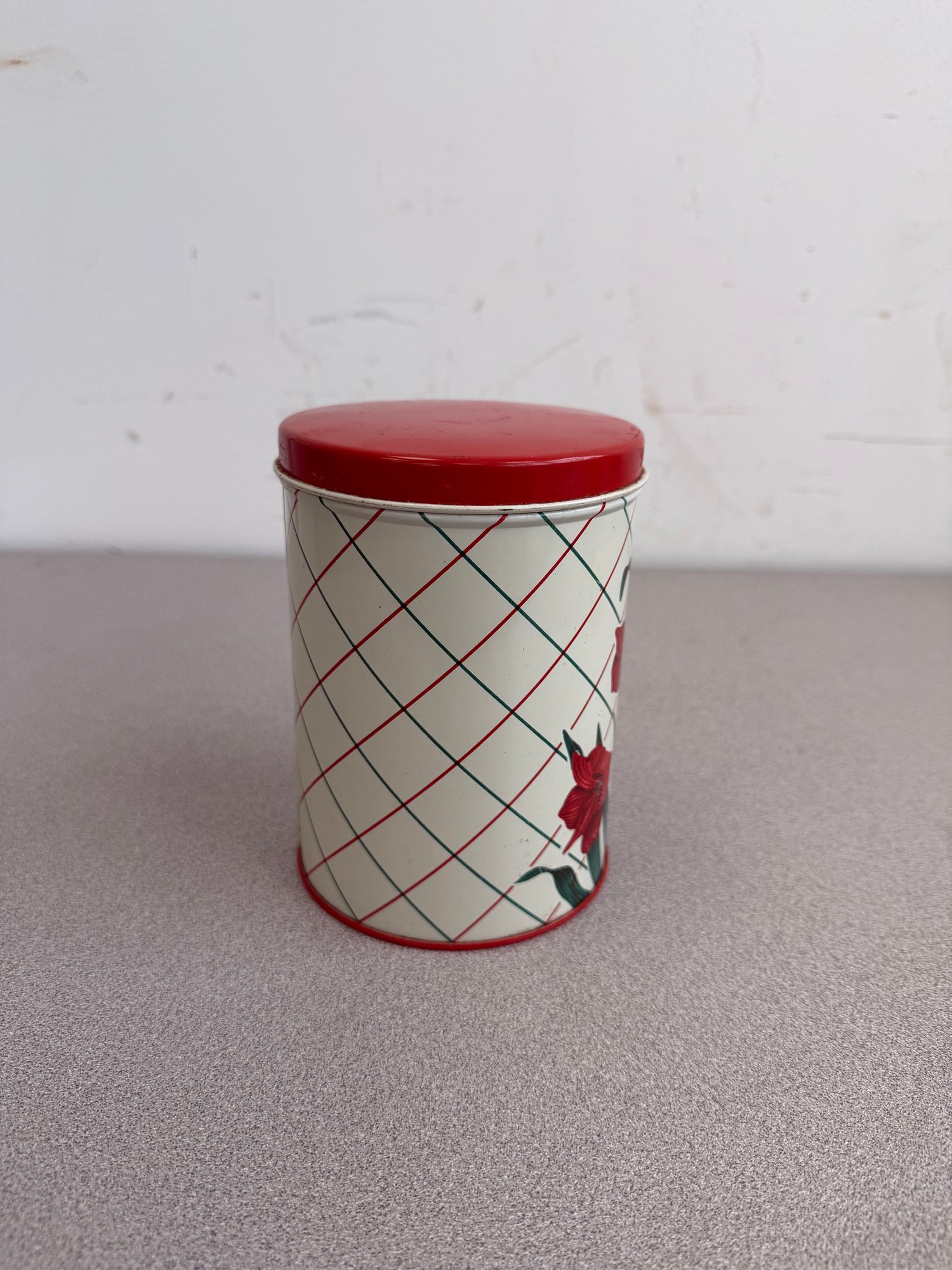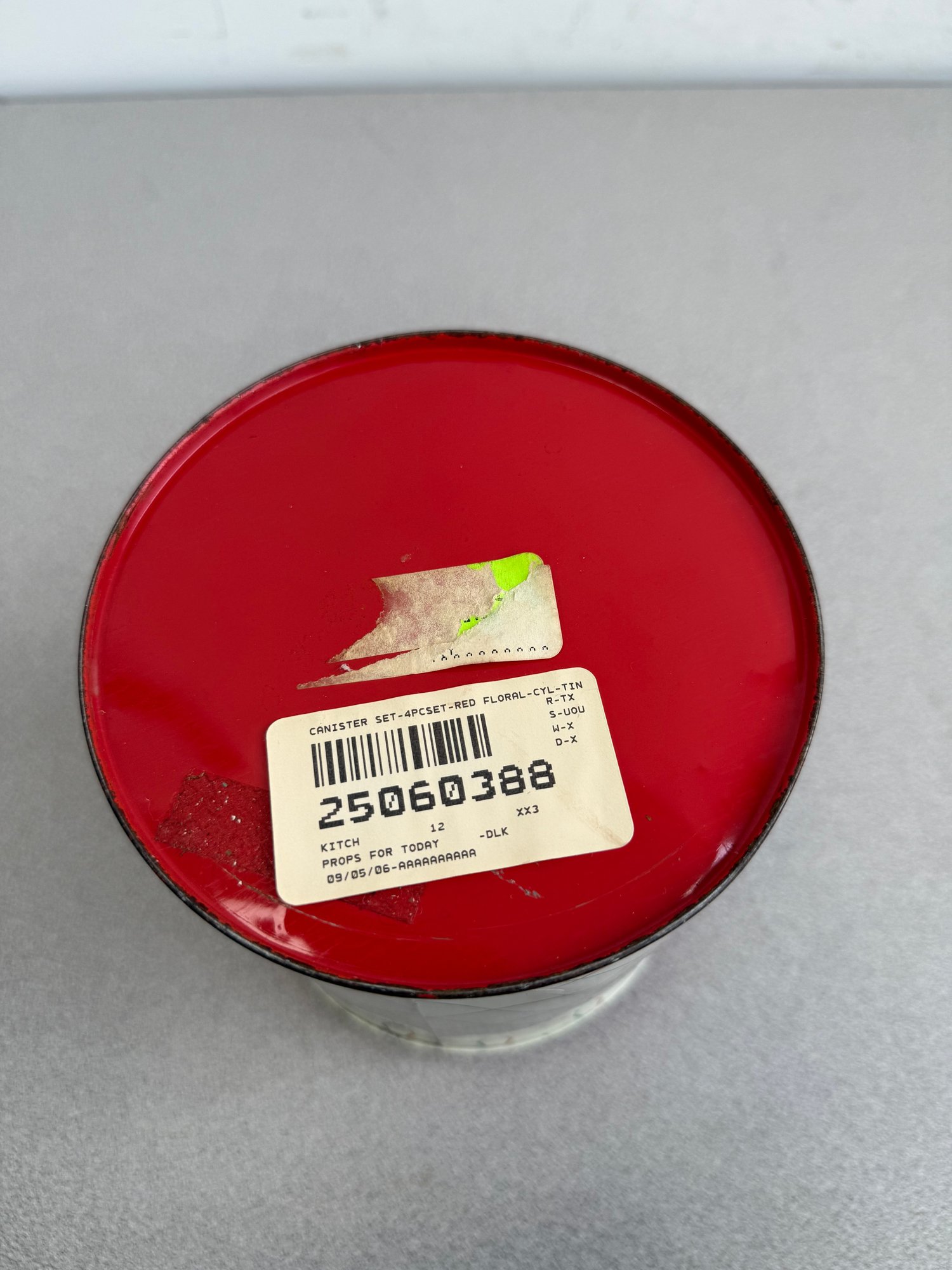 A charming set of three vintage metal kitchen canisters, perfect for adding a touch of retro charm to any kitchen decor. This set features a classic design from the mid-20th century.