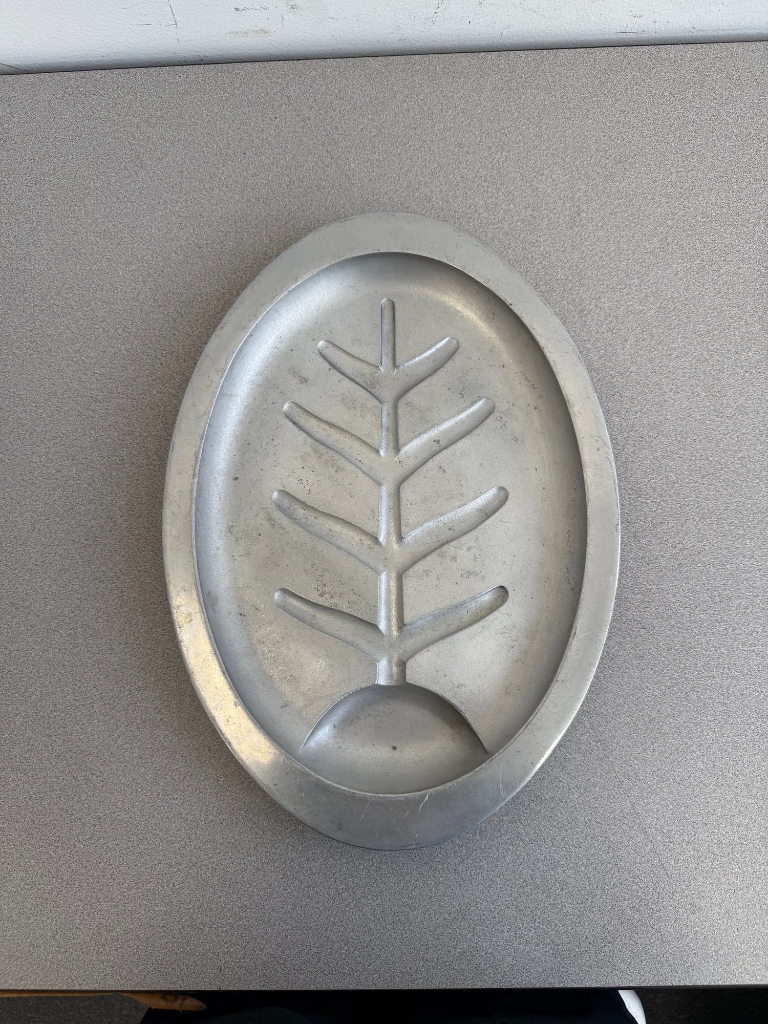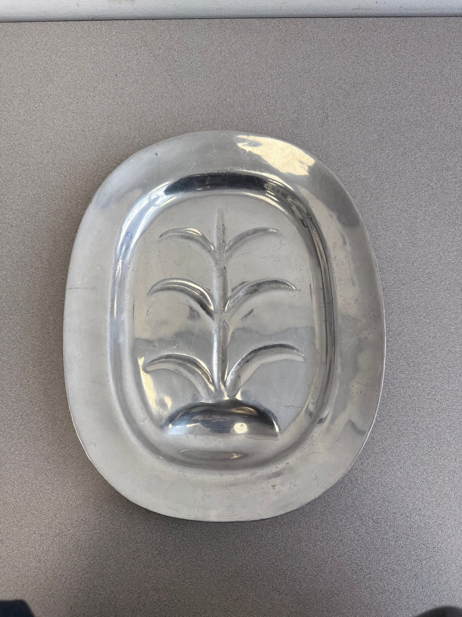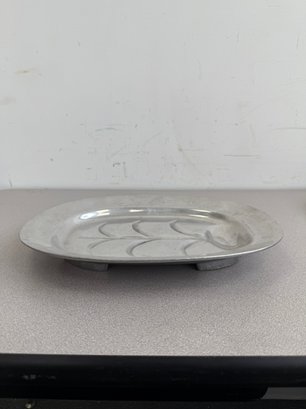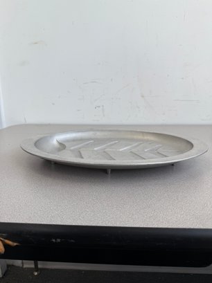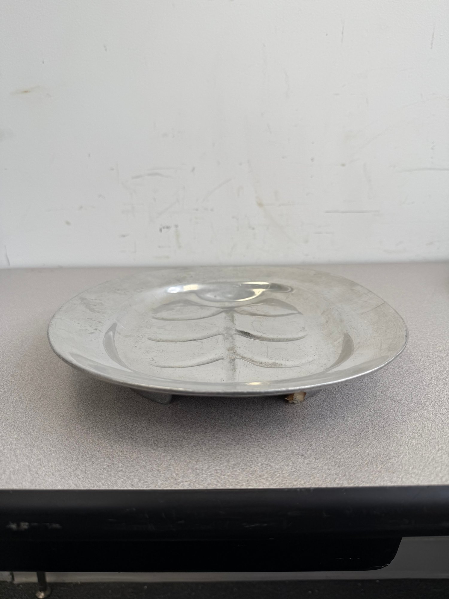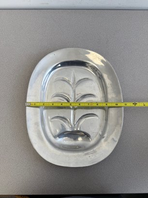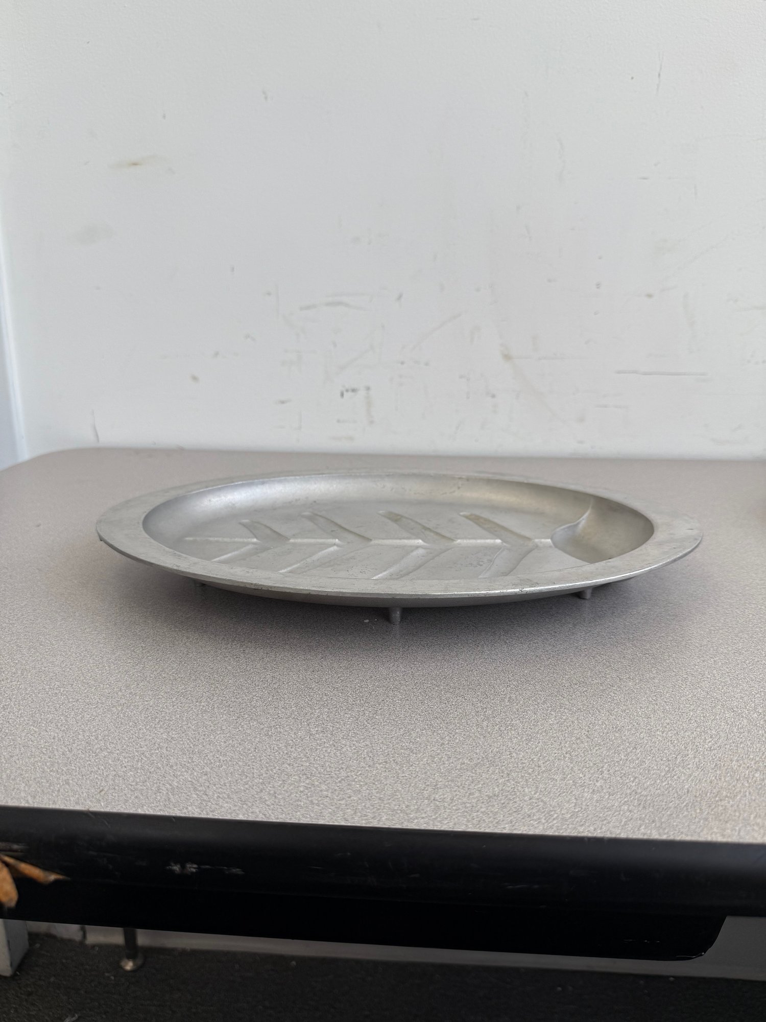 Elevate your dining experience with these timeless and practical pieces of serveware, produced for the purpose of serving meat. Crafted with both beauty and function in mind, this platter is a testament to quality American metalware design.