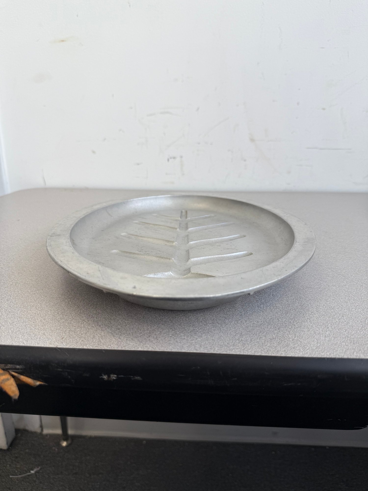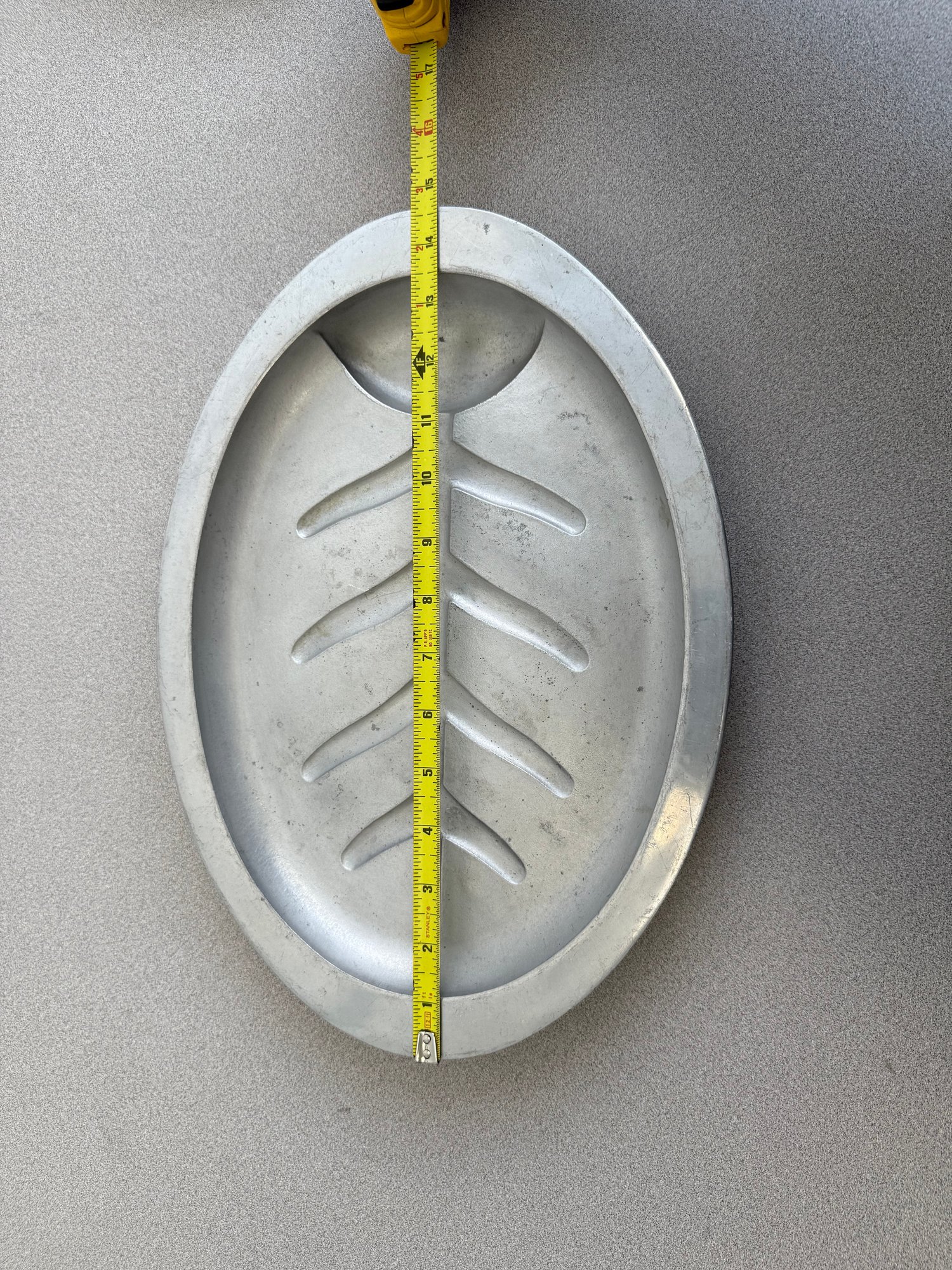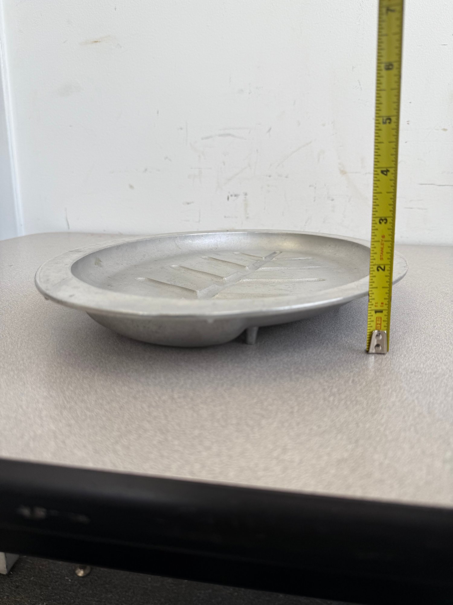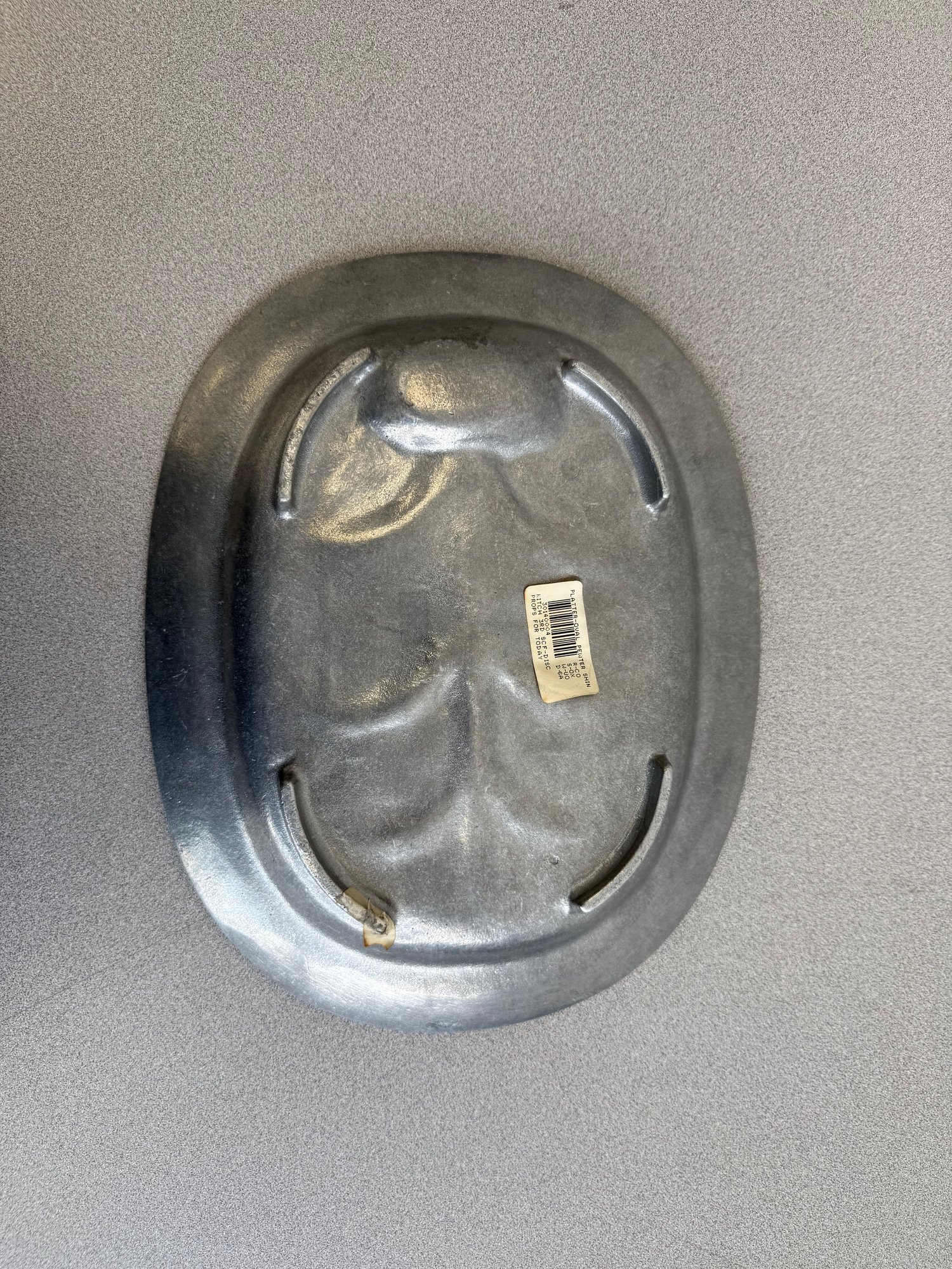 Elevate your dining experience with these timeless and practical pieces of serveware, produced for the purpose of serving meat. Crafted with both beauty and function in mind, this platter is a testament to quality American metalware design.