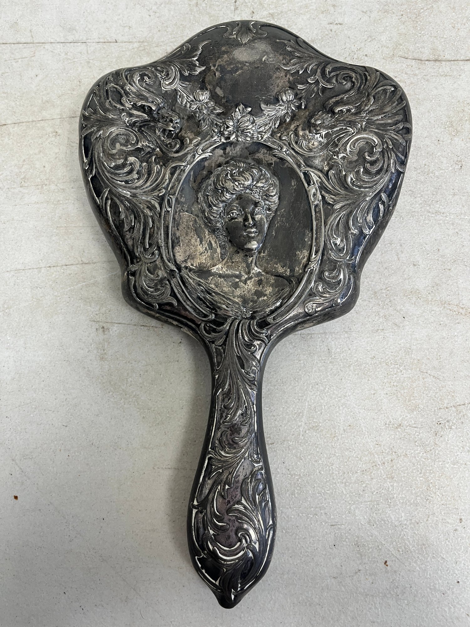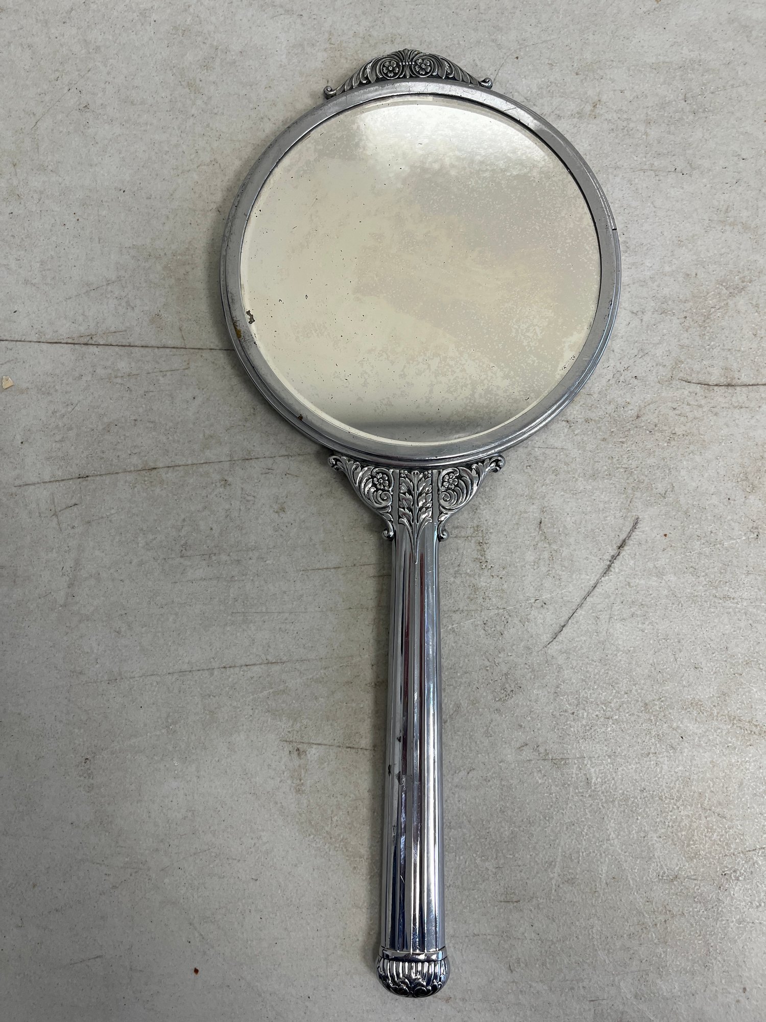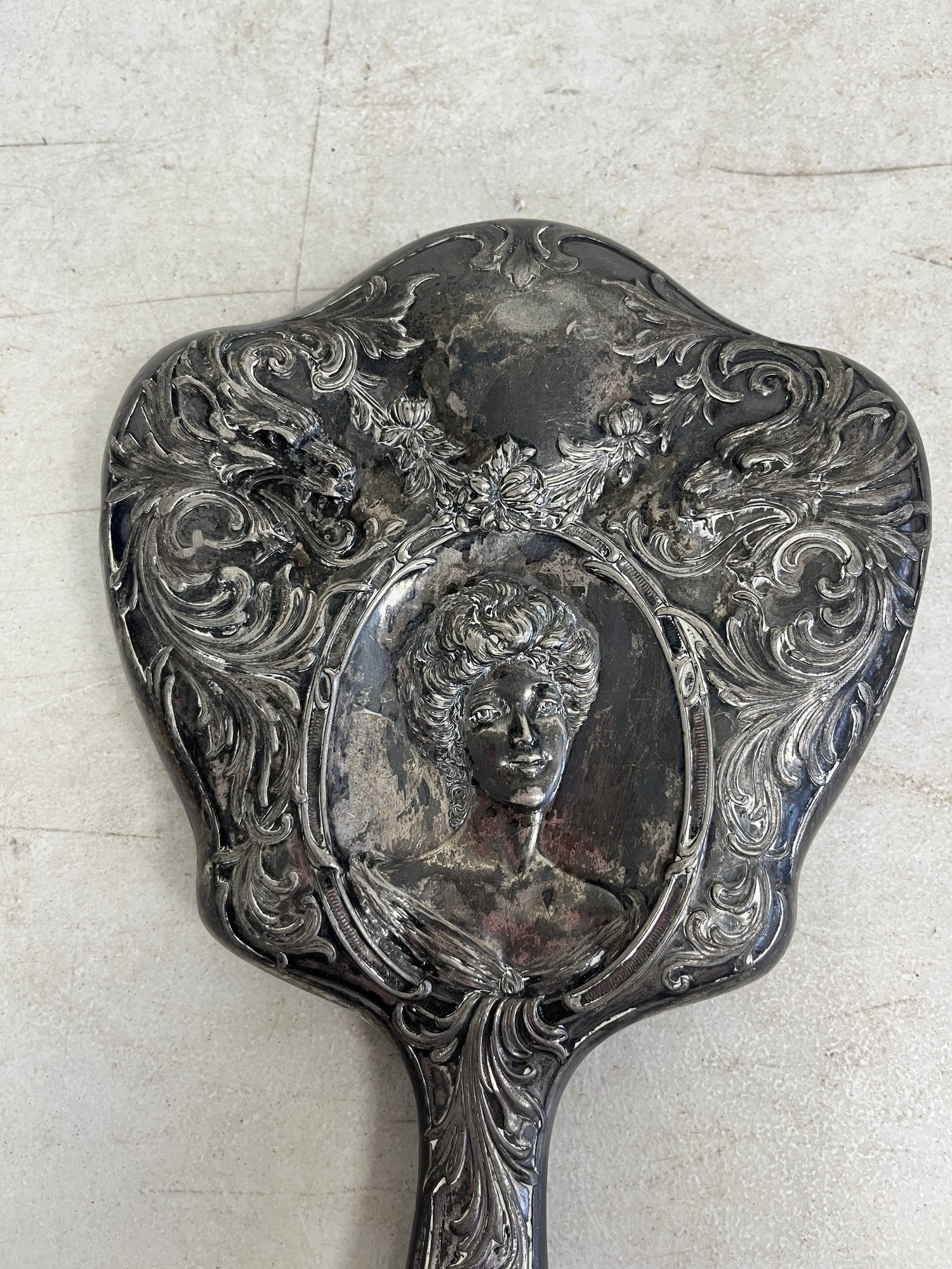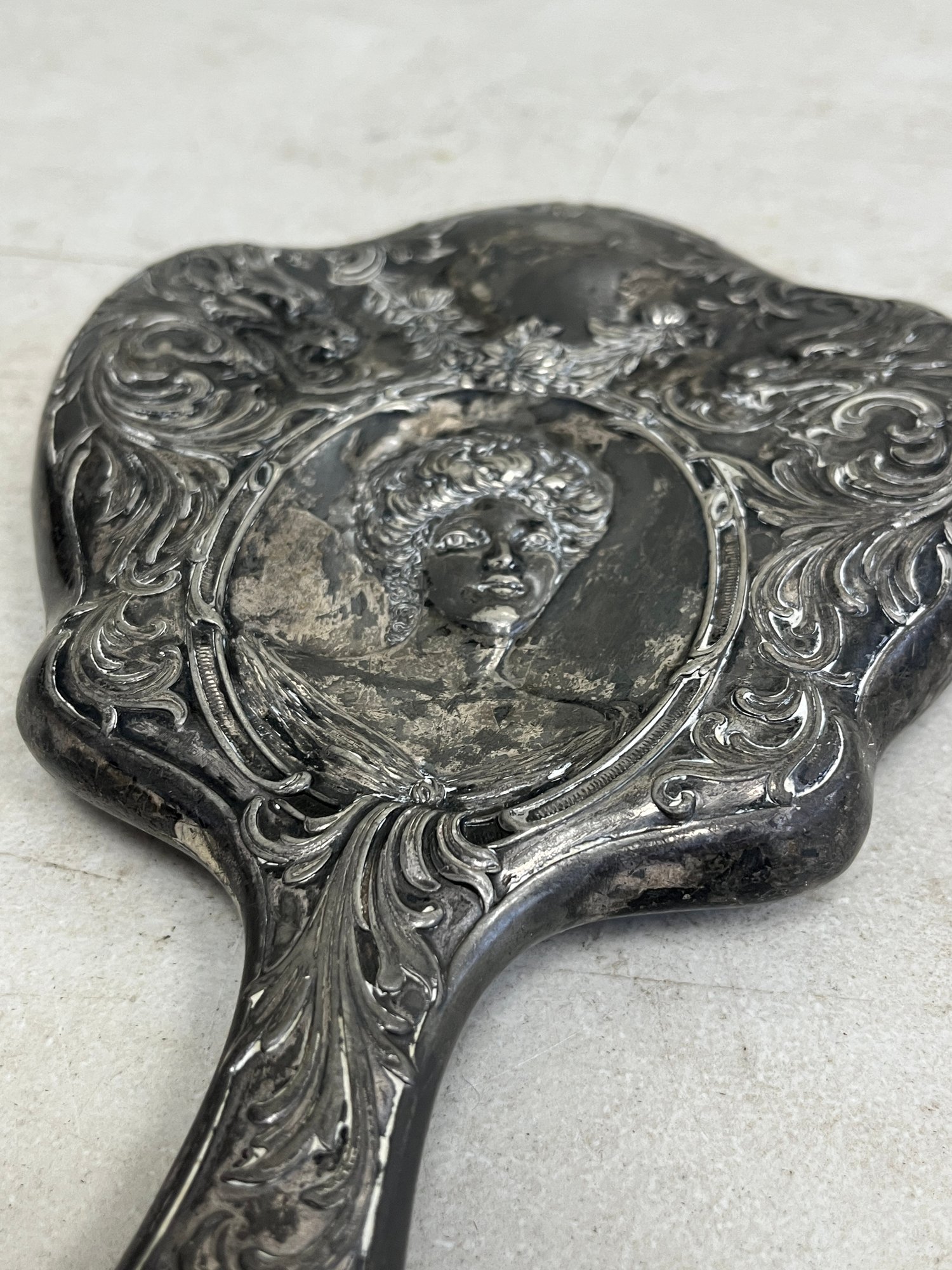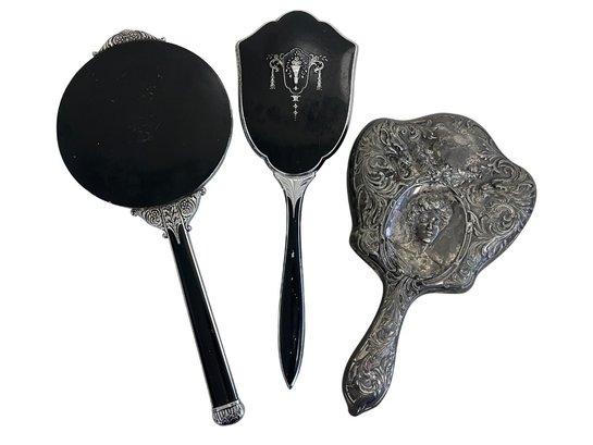 A grouping of three distinct vintage hand mirrors, ideal for the discerning collector or as elegant additions to any vanity set. These pieces showcase the intricate craftsmanship characteristic of the late 19th and early 20th centuries, primarily in the Art Nouveau and Victorian styles.