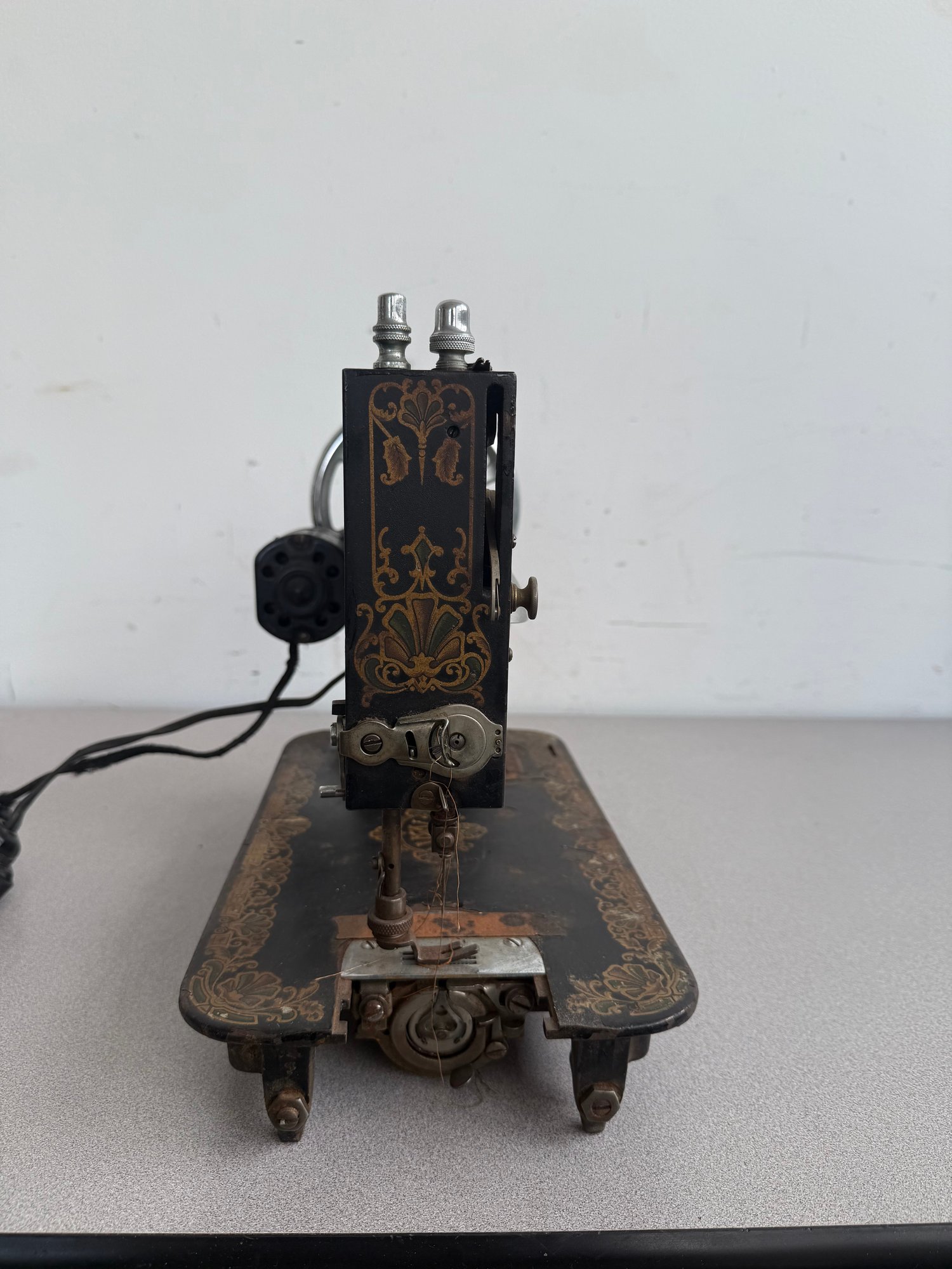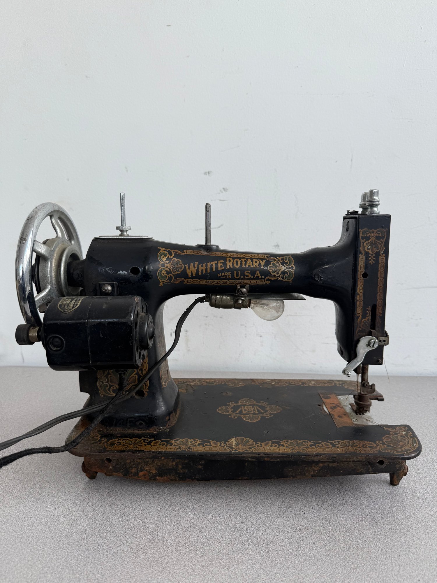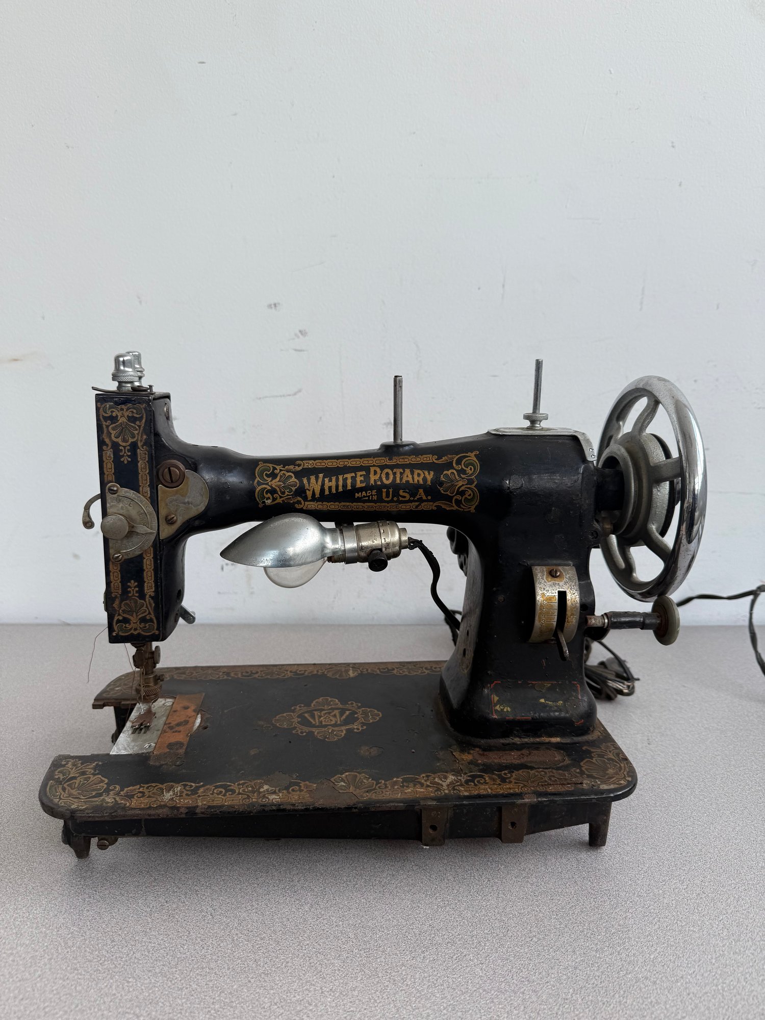 A magnificent example of American engineering from the early 20th century, this White Family Rotary sewing machine showcases the transition from manual treadle power to the modern convenience of electricity. Renowned for its cast-iron construction and exceptionally smooth rotary hook movement, it remains a favorite among vintage collectors and sewing enthusiasts.