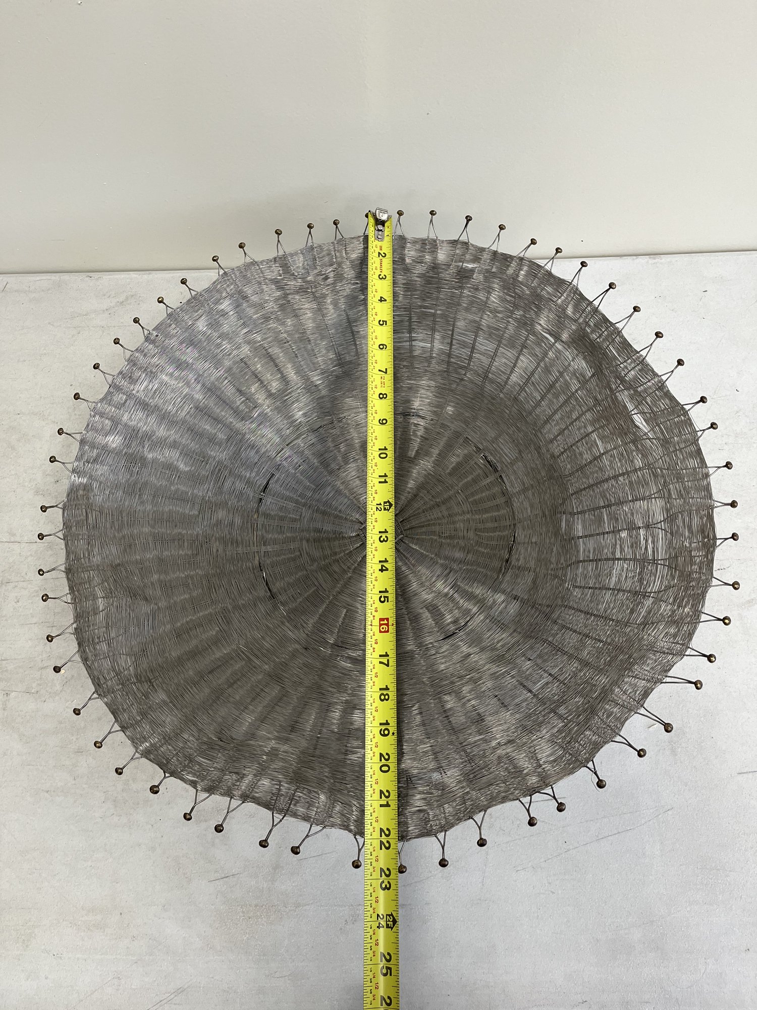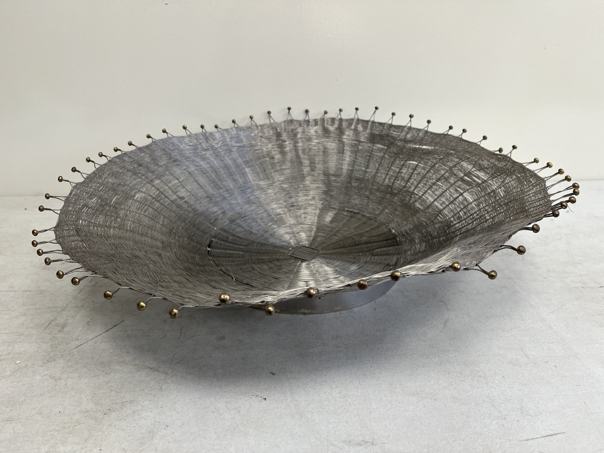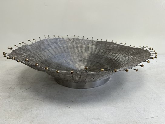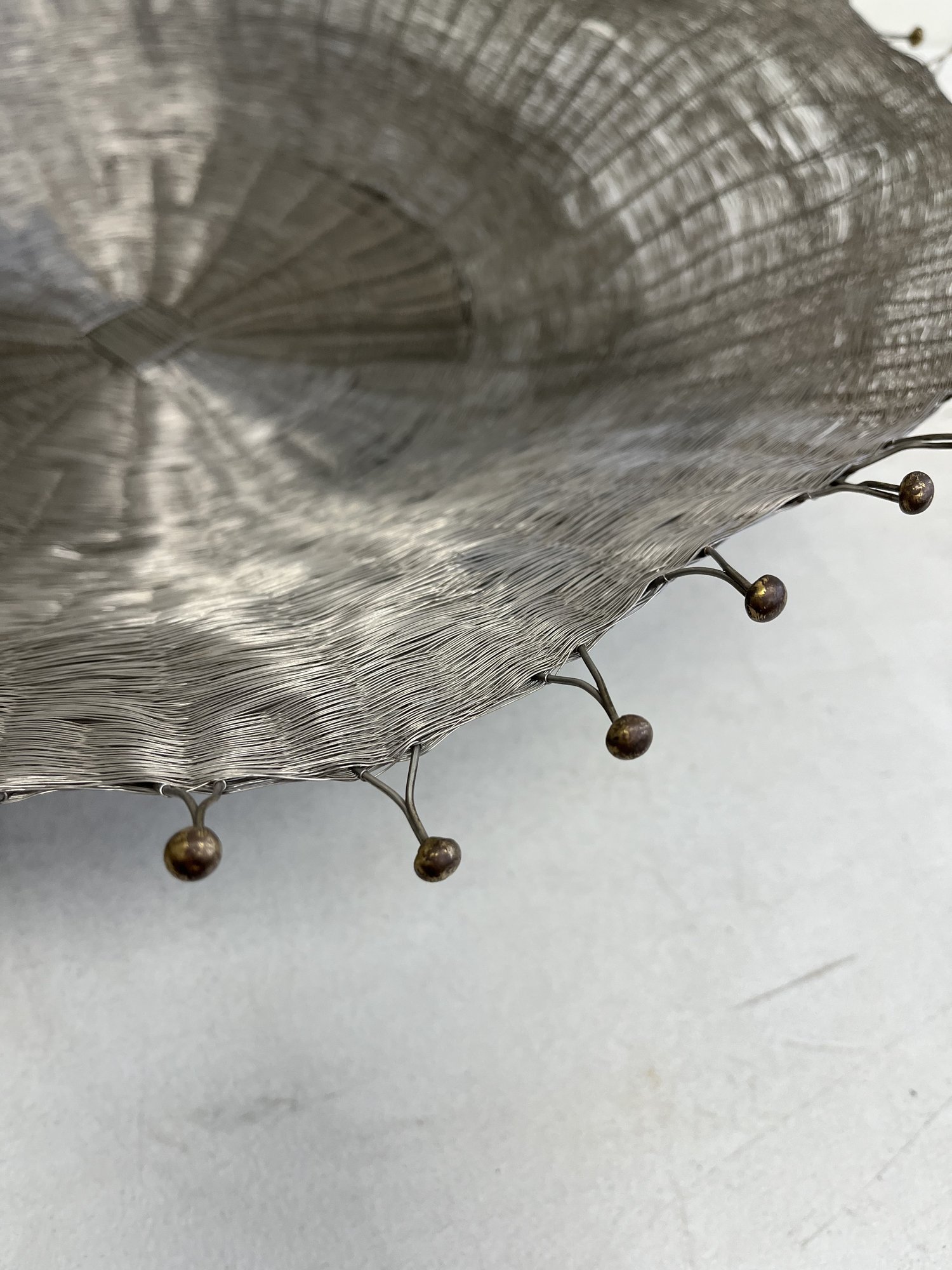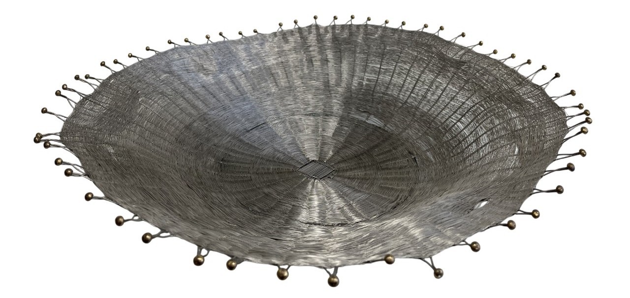 A striking example of modern sculptural design, this handwoven wire bowl features a tightly woven aluminum wire structure that forms a dynamic, fluted shape.