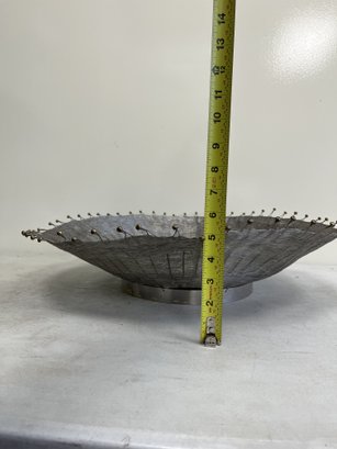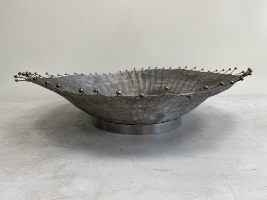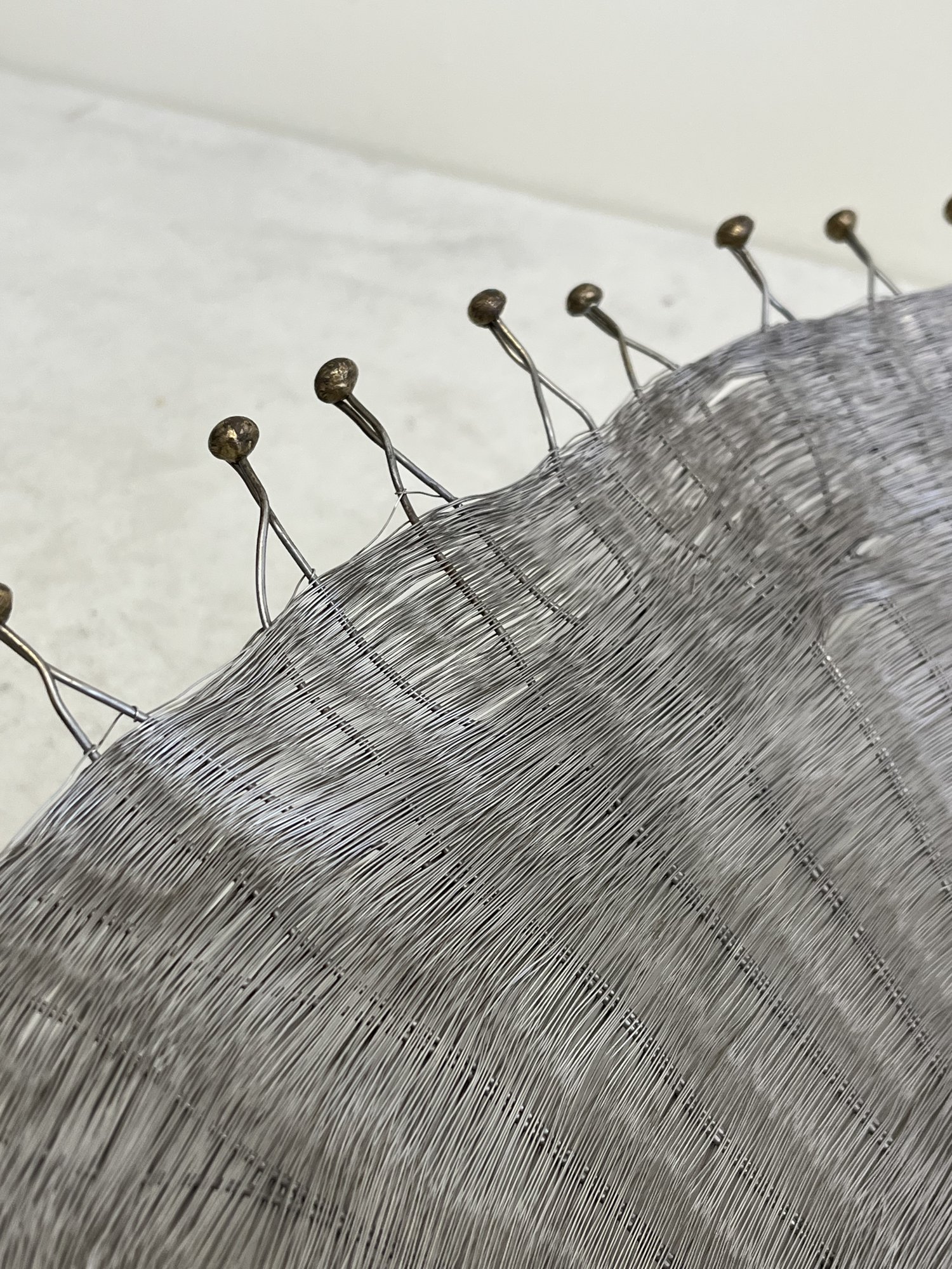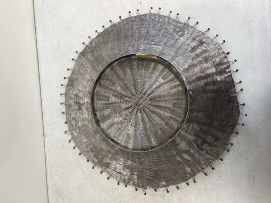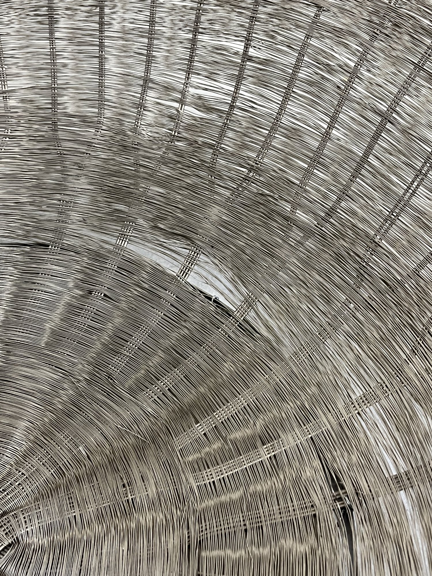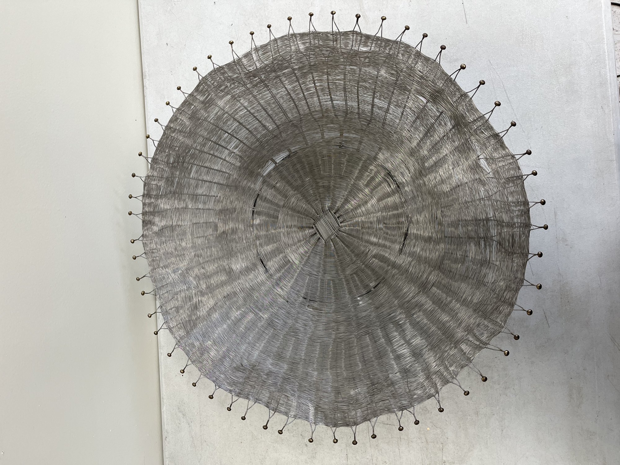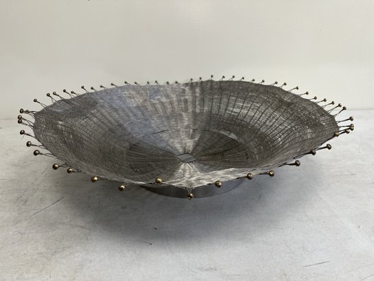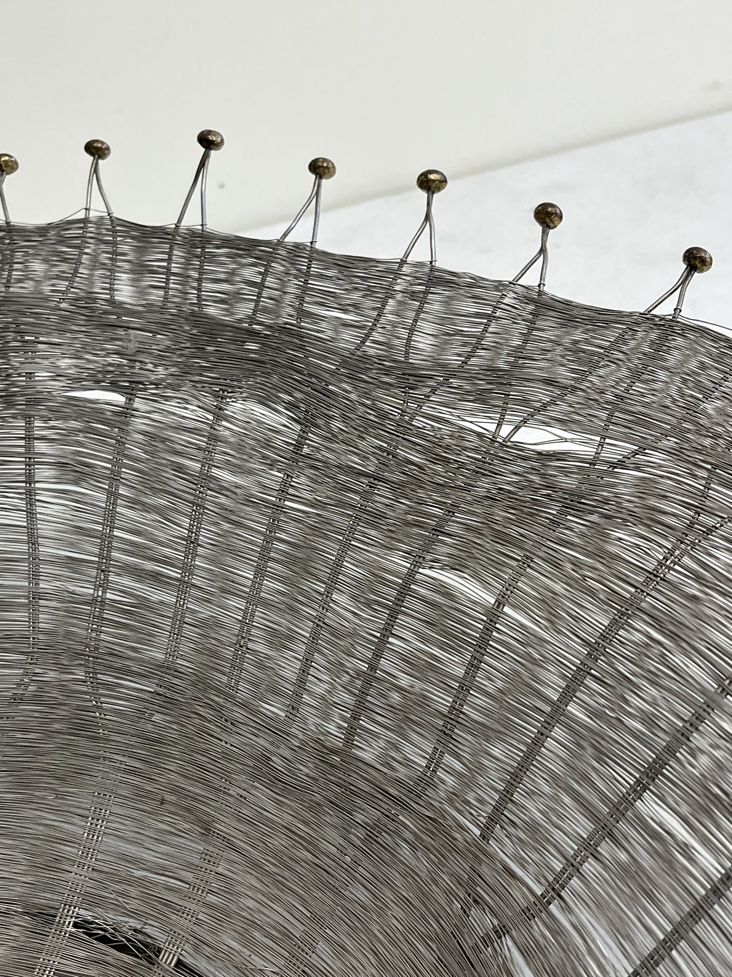 A striking example of modern sculptural design, this handwoven wire bowl features a tightly woven aluminum wire structure that forms a dynamic, fluted shape.