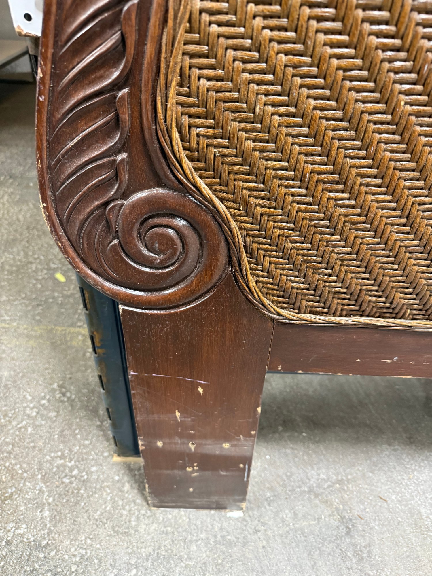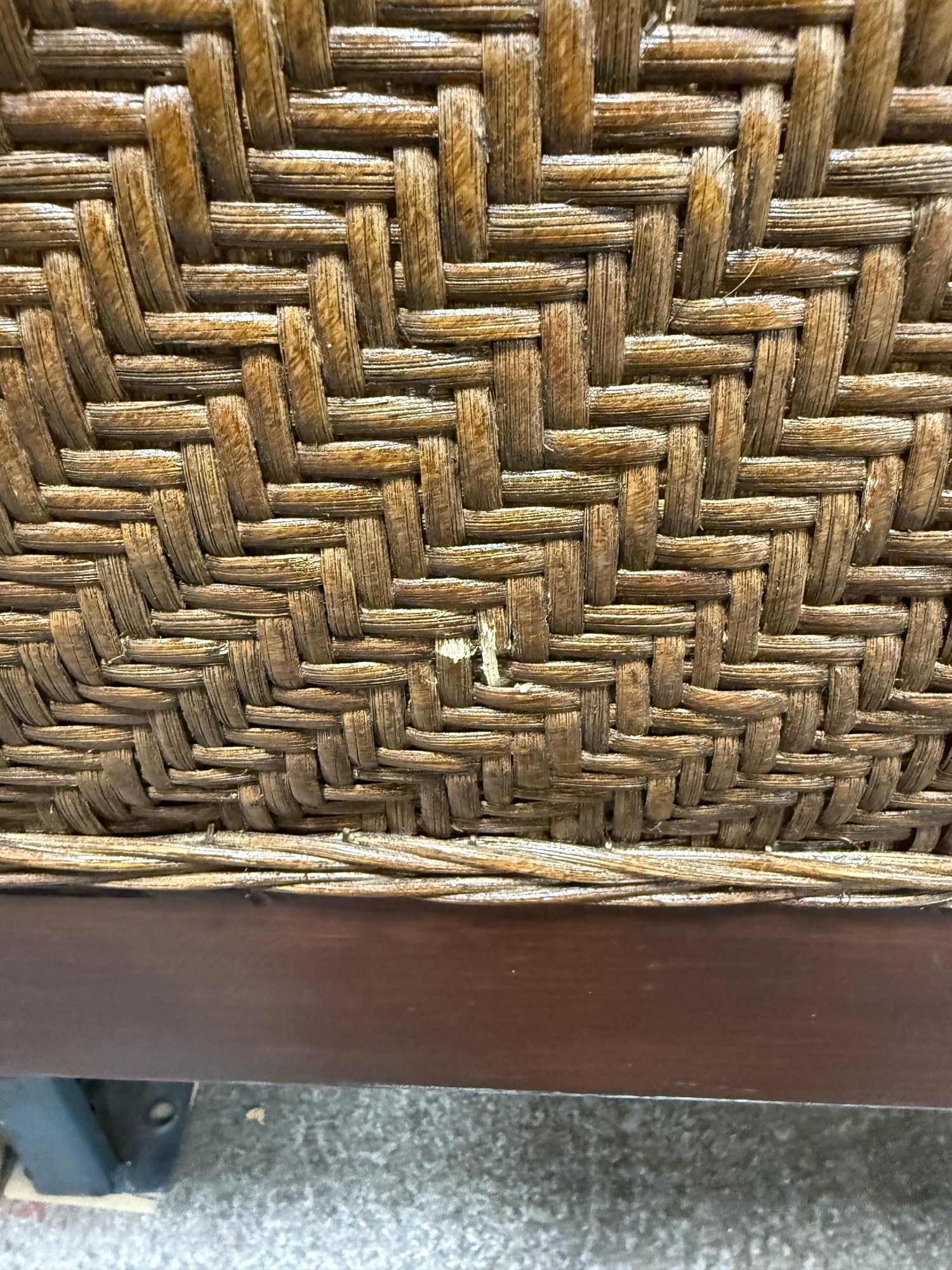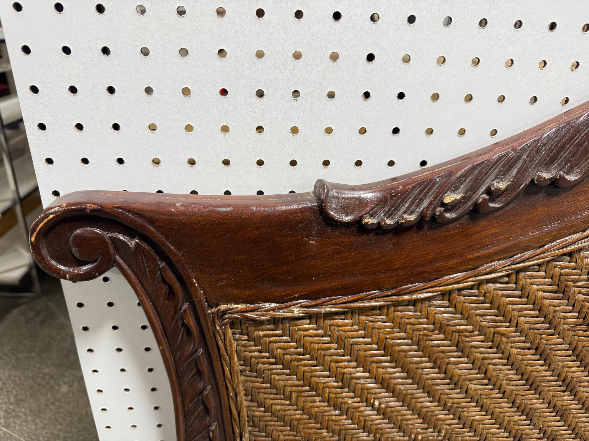 A stunning vintage-style rattan and wood headboard that effortlessly blends classic elegance with a touch of tropical charm. This piece captures the timeless appeal of the French Country aesthetic, often associated with collections from esteemed manufacturers.