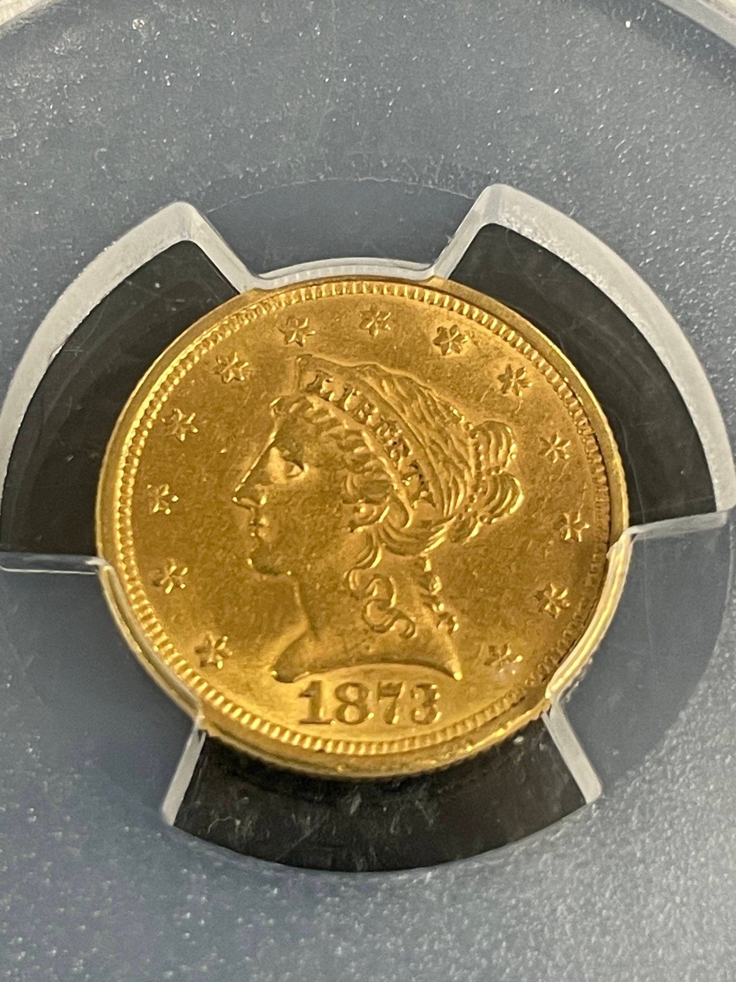 1873 GOLD QUARTER EAGLE OPEN 3 $2.50 PCGS AU58