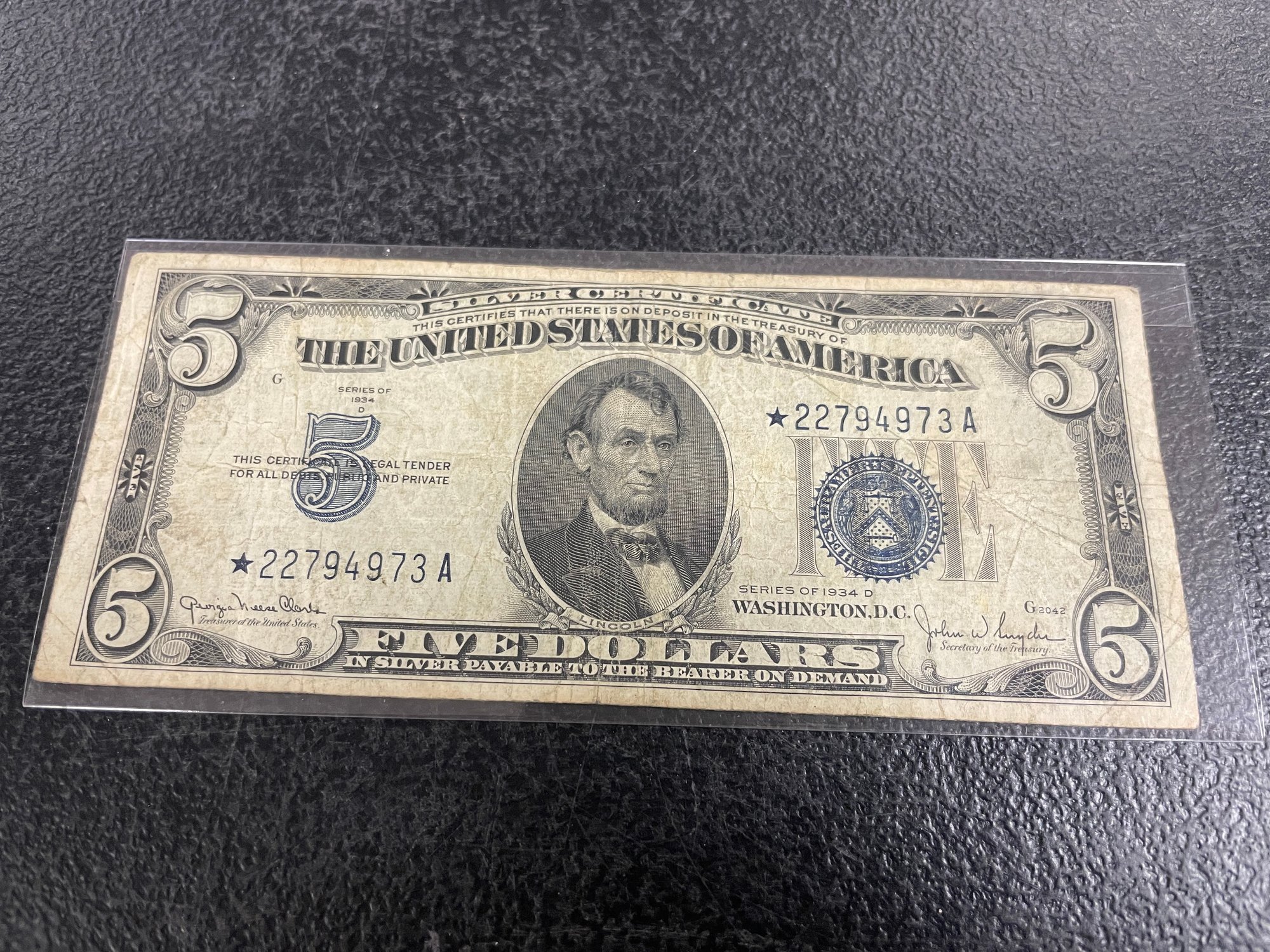 1934-D $5 BLUE SEAL STAR NOTE