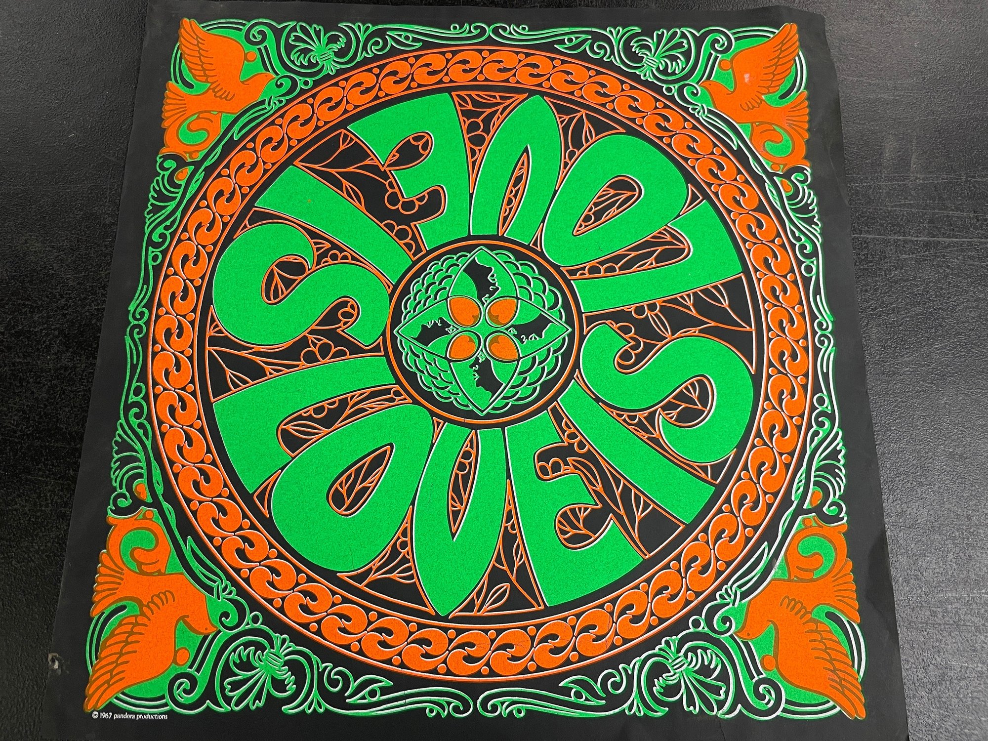 1967 PANDORA PRODUCTIONS LOVE IS LOVE BLACKLIGHT POSTER 23" SQ