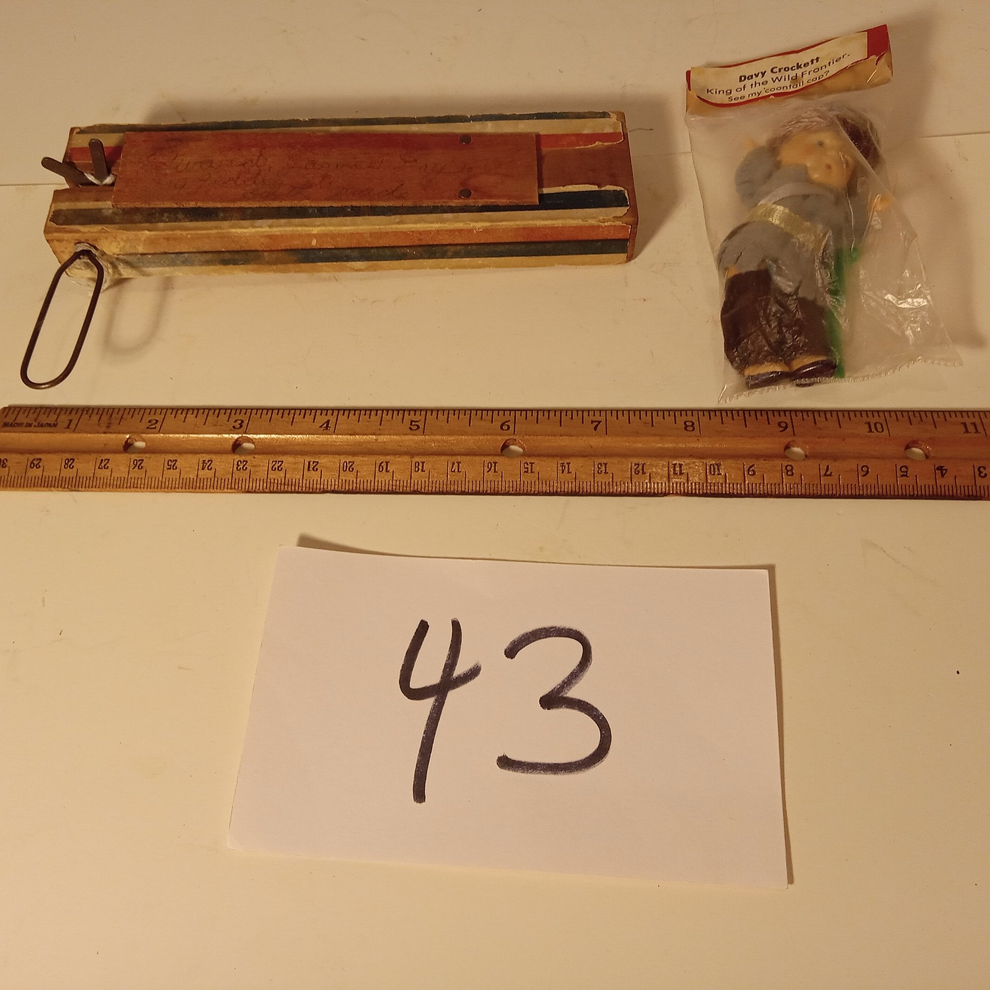 Safety Cracker Wood Noisemaker - marked with someone's name in pencil