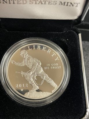 2012-W PROOF SILVER DOLLAR - INFANTRY SOLDIER COMMEMORATIVE COIN