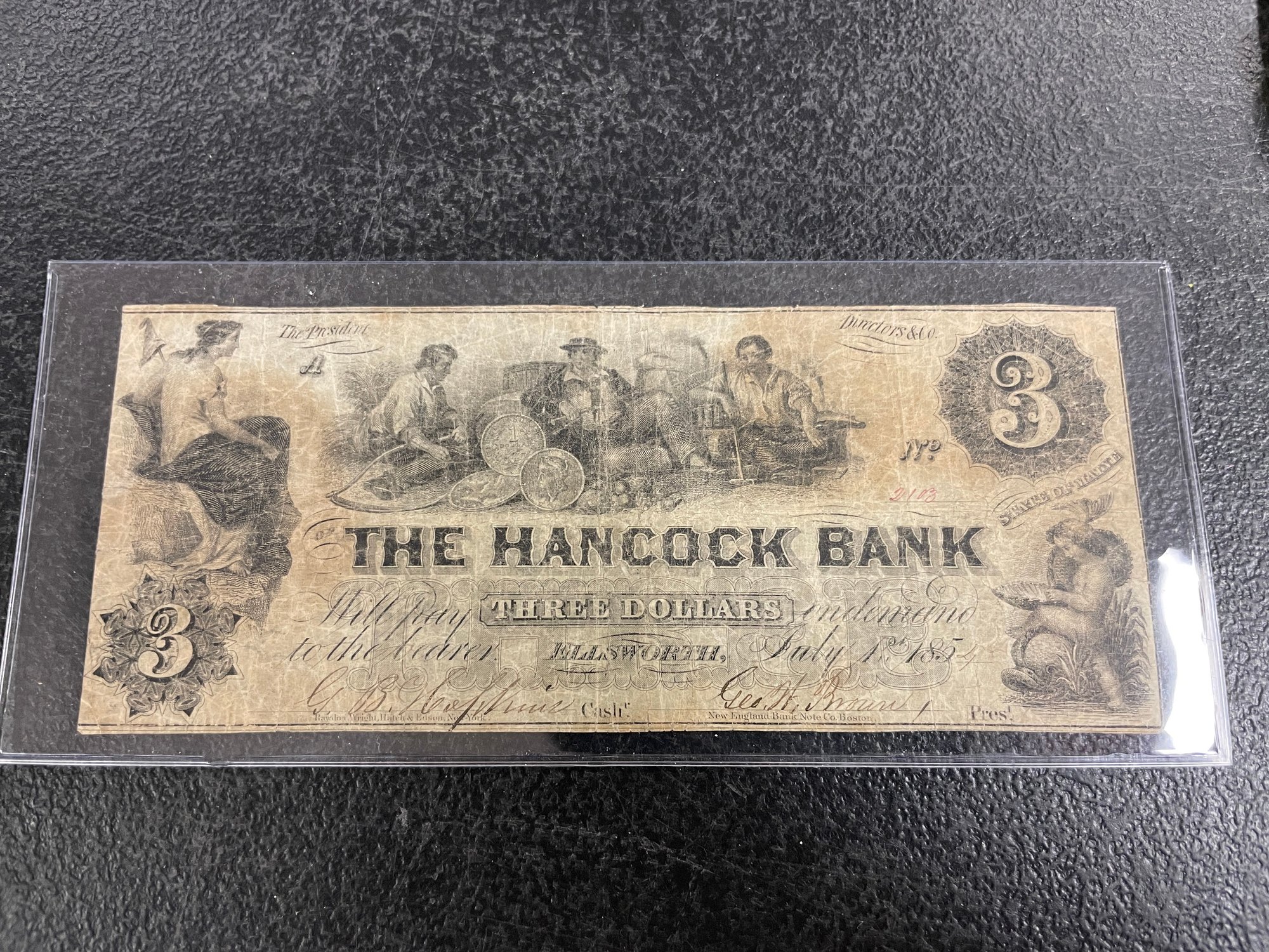$3 1854 ELLSWORTH, MAINE BROKEN BANK NOTE