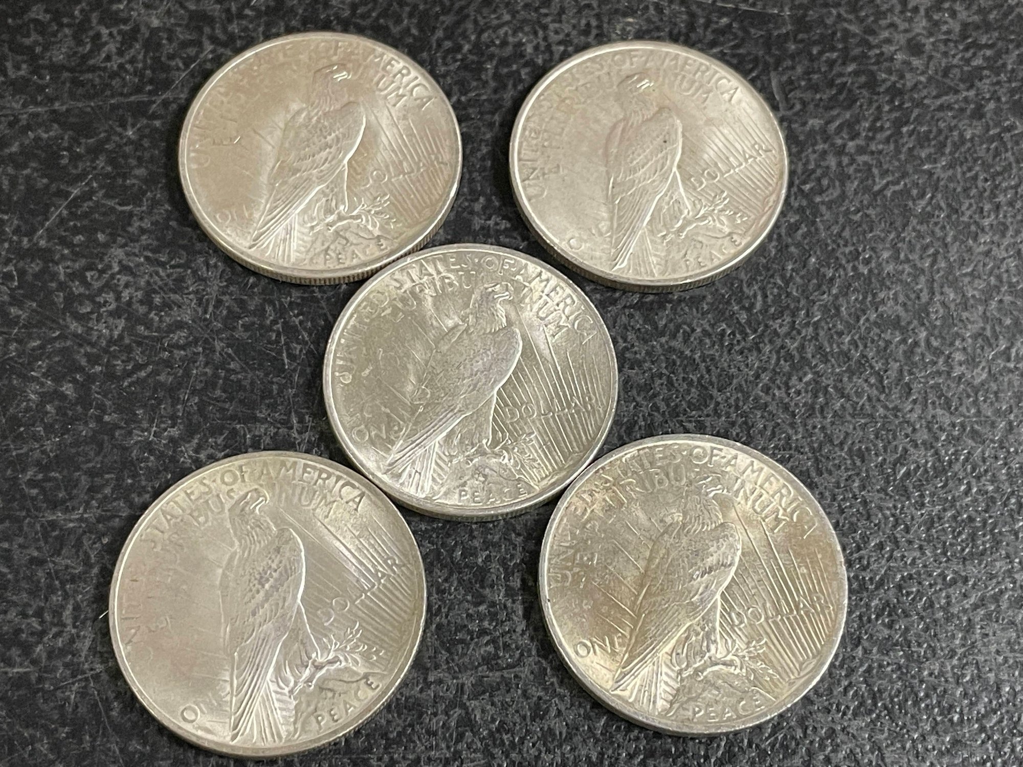 5 SILVER PEACE DOLLARS 1922/1923/1924