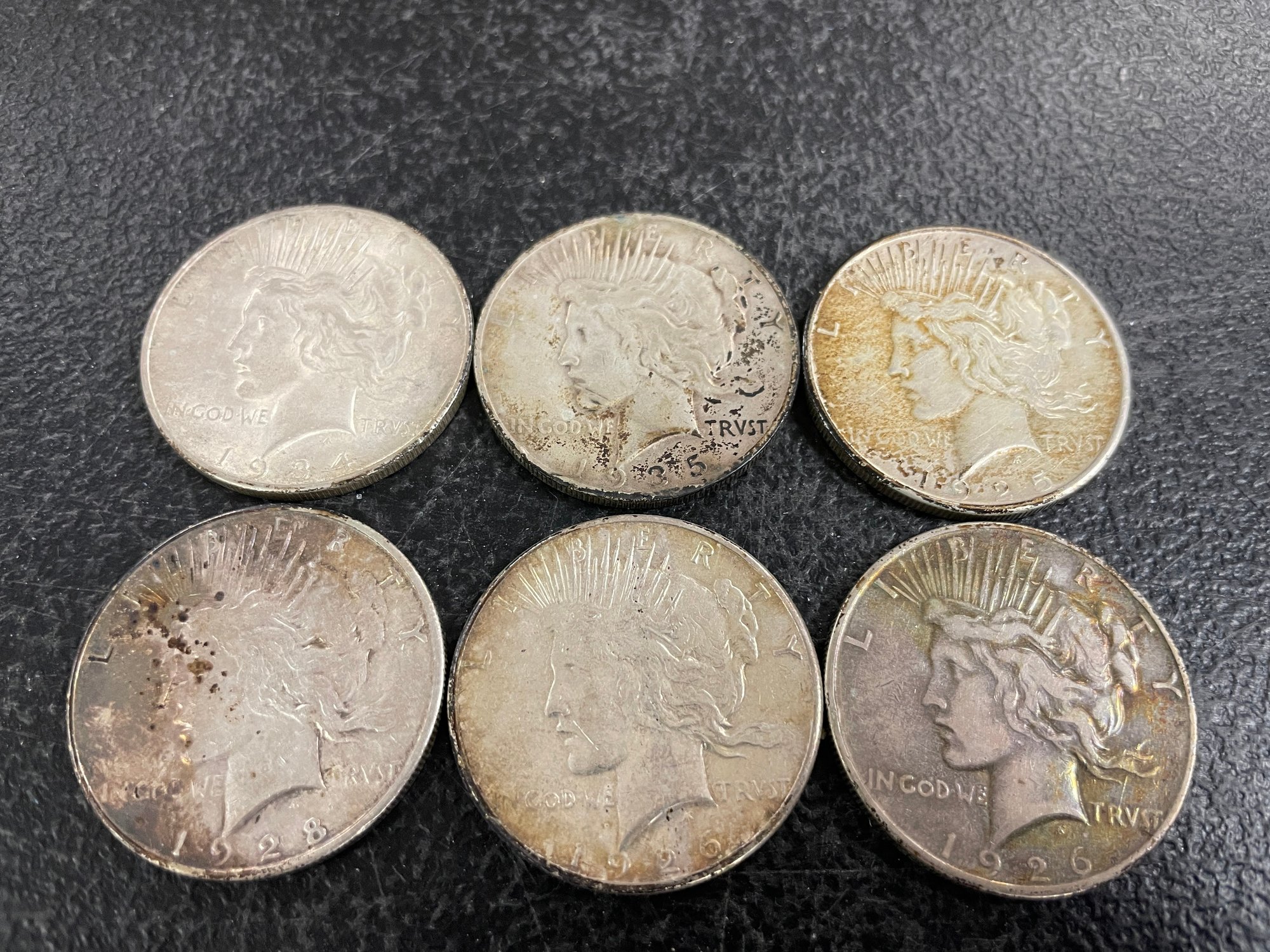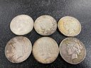 6 SILVER PEACE DOLLARS 1925/1926/192819341935
