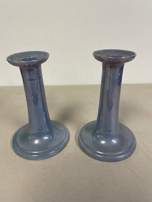 PAIR JAPAN SHOFU LUSTERWARE CANDLESTICKS