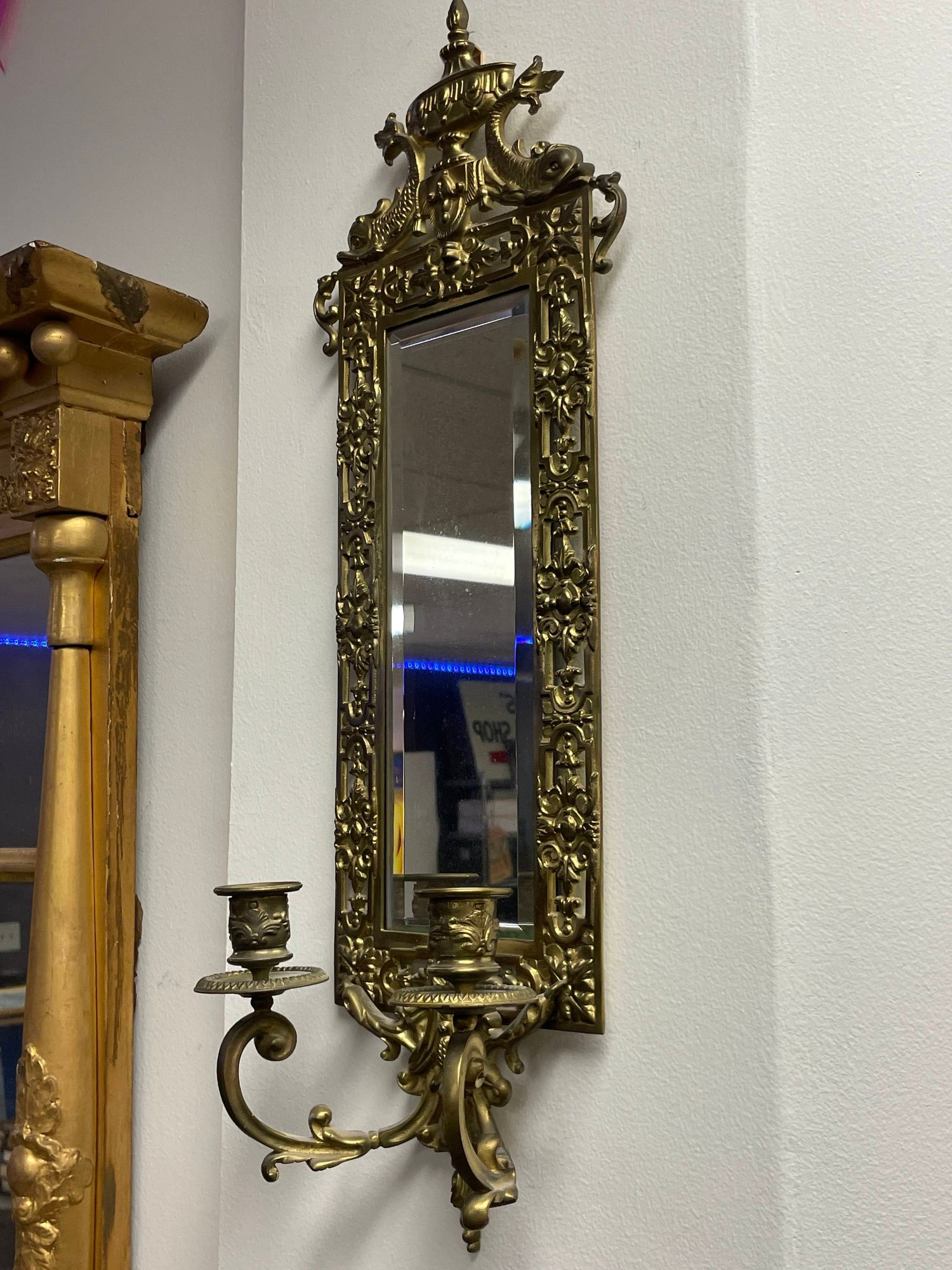 BRASS BEVELED GLASS WALL SCONCE - STUNNING